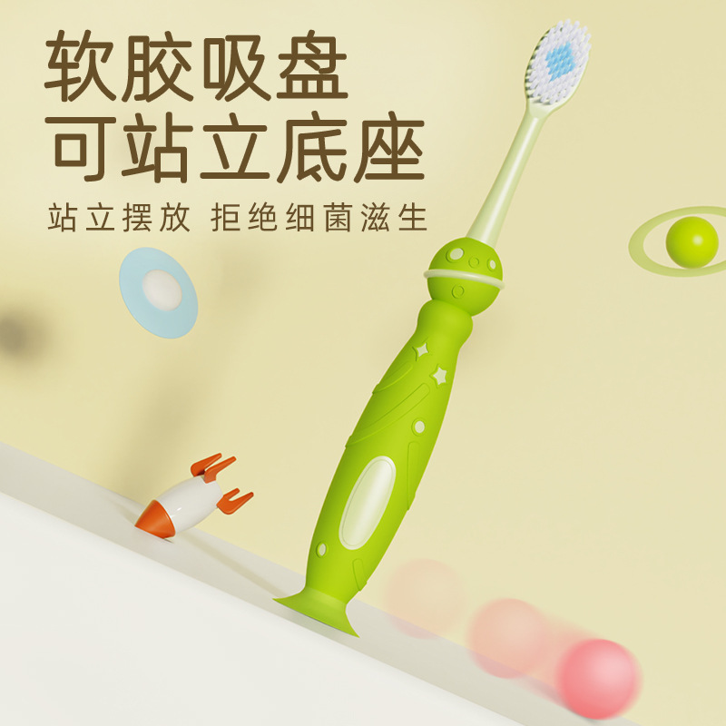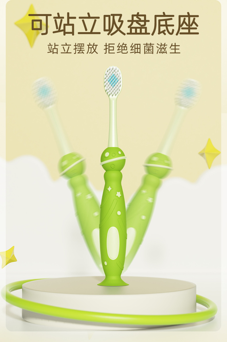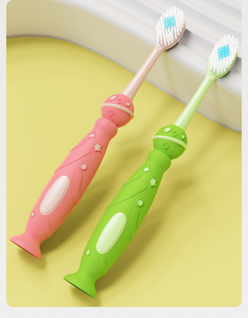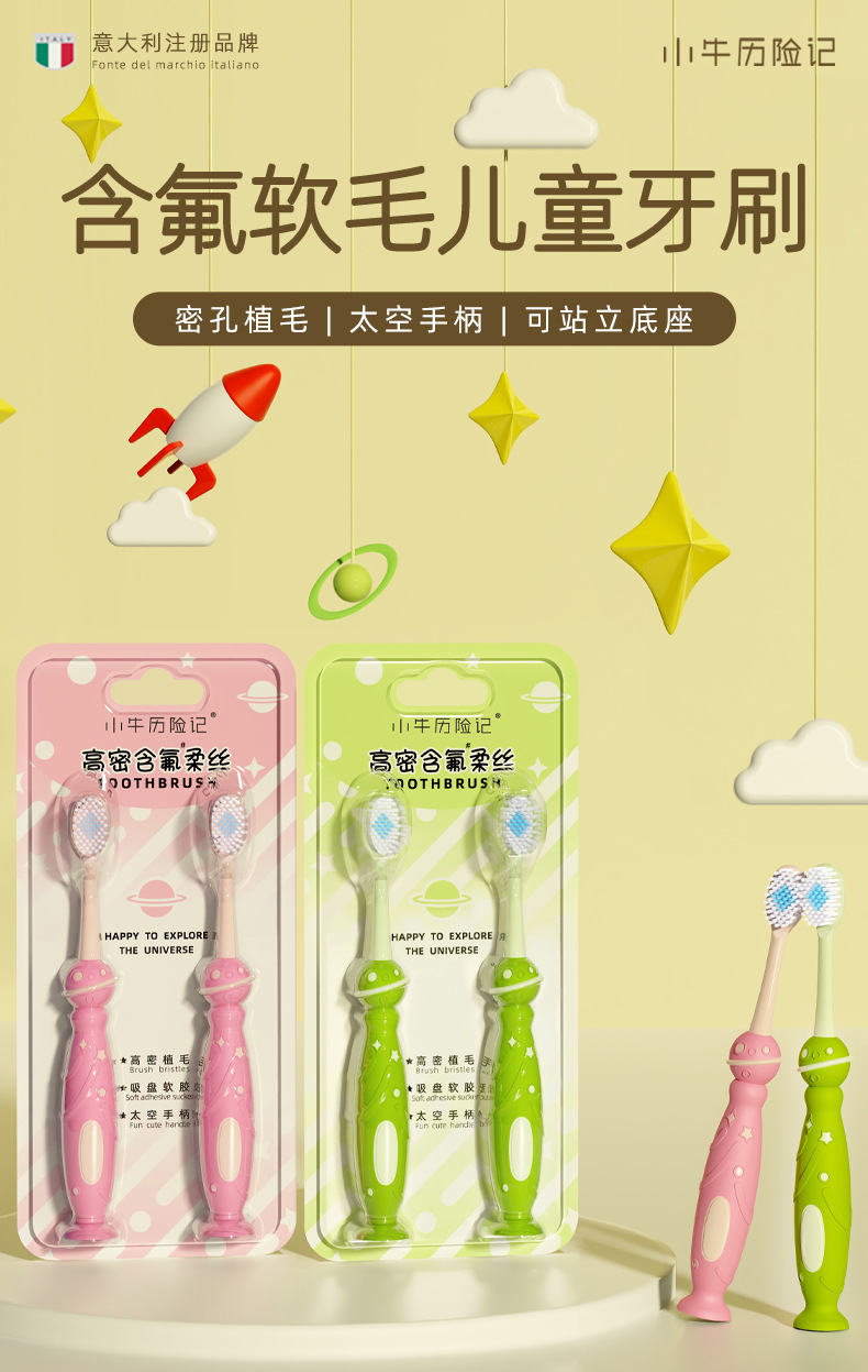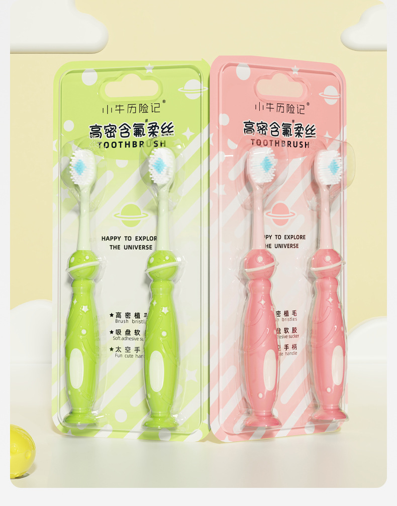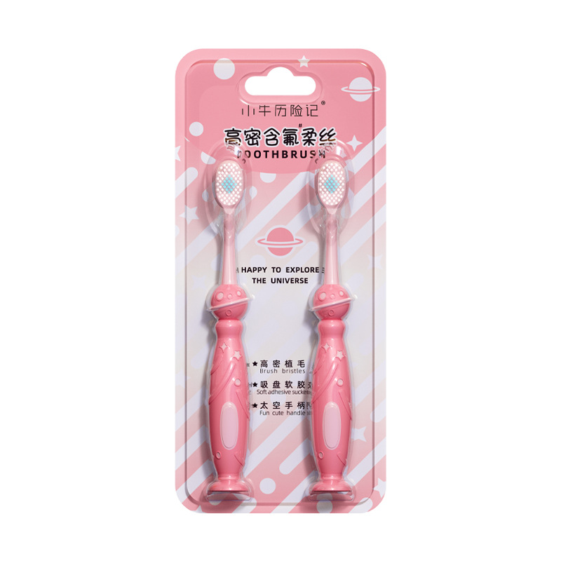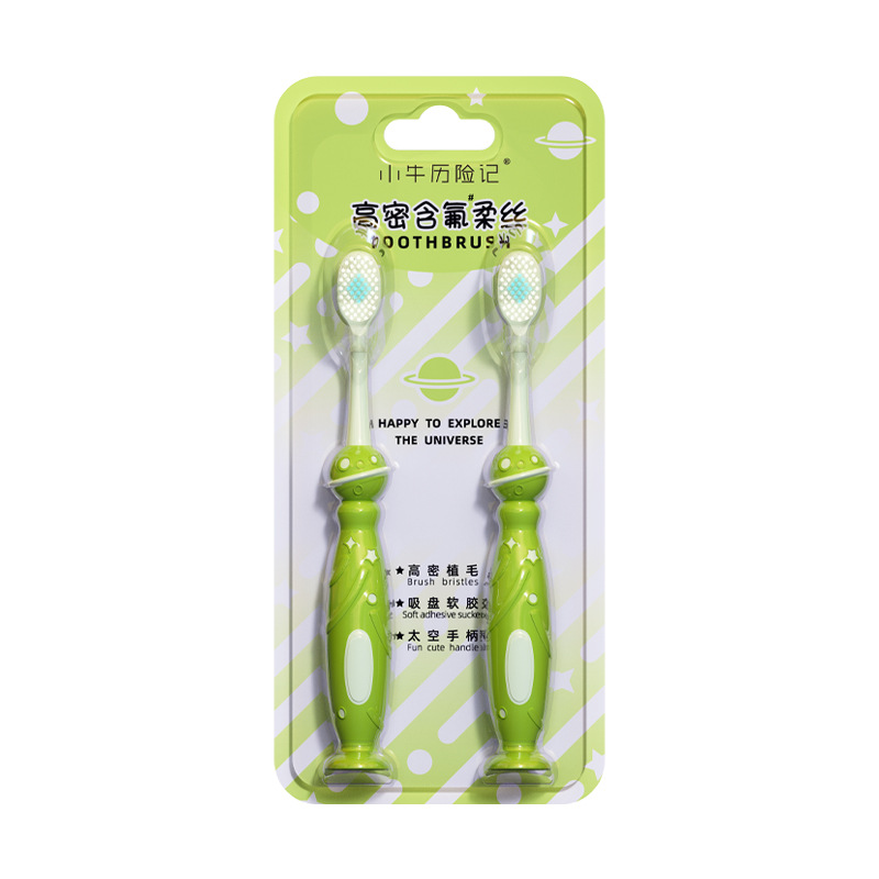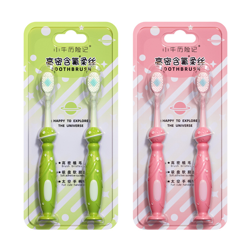 扬州含氟儿童牙刷家用高密细丝宝宝牙刷软毛2支套装站立太空吸盘