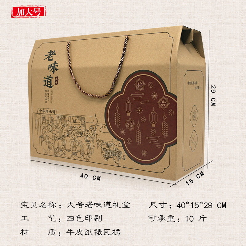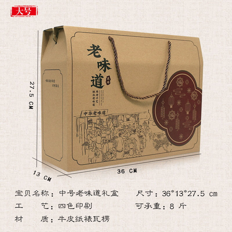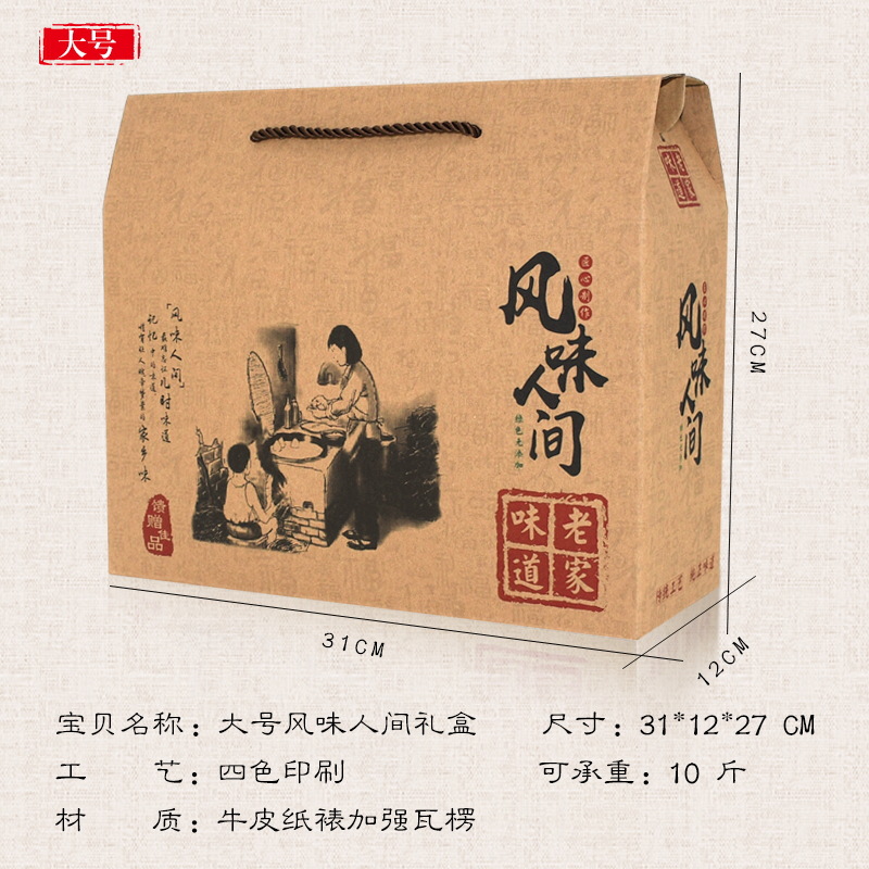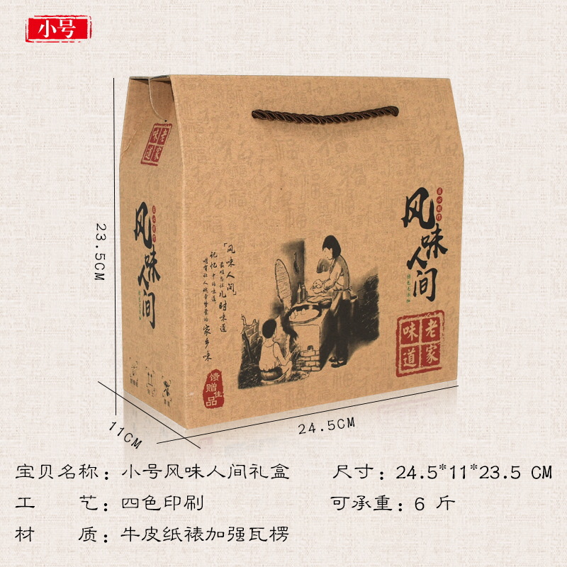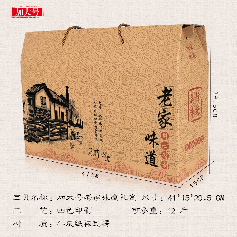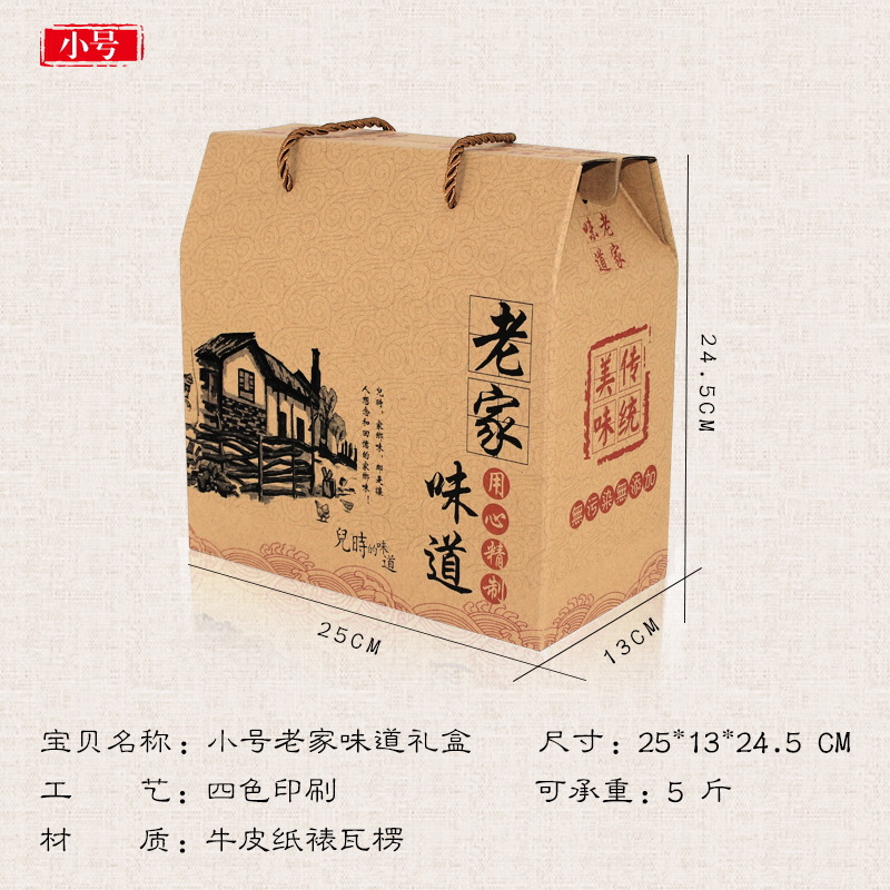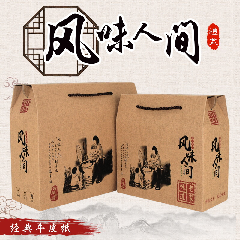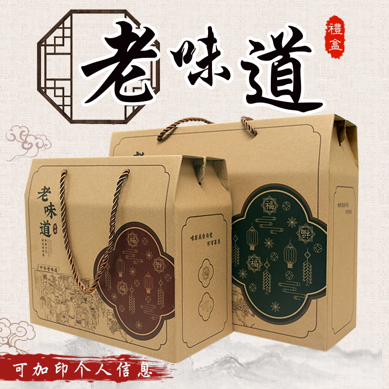 现货土特产通用包装空礼盒干货海产品年糕糍粑手工粽子粉纸盒加印