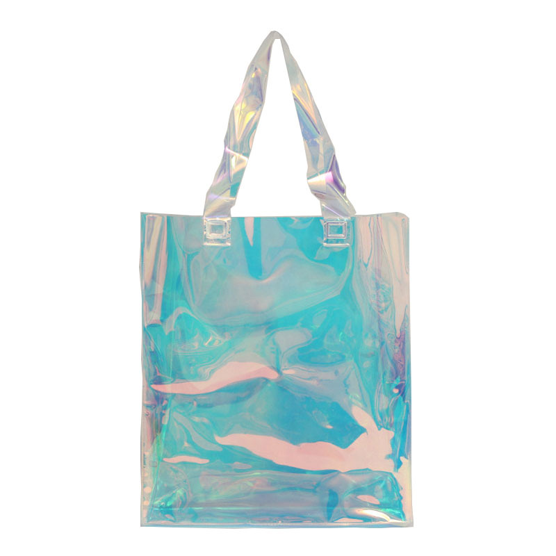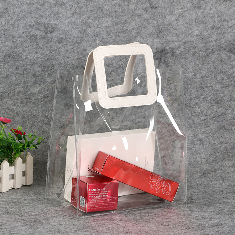 现货透明PVC手提礼品袋 防水皮质手提塑料袋 时尚街拍透明平口袋
