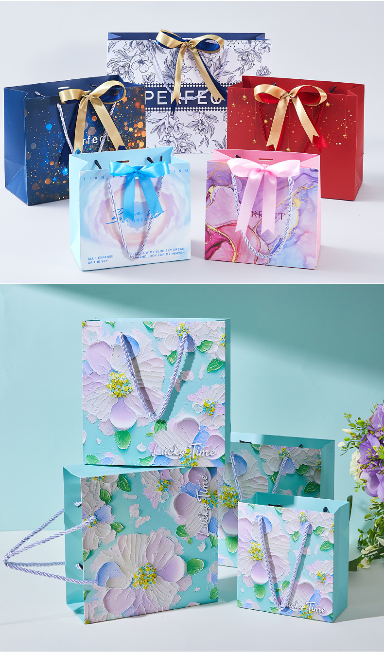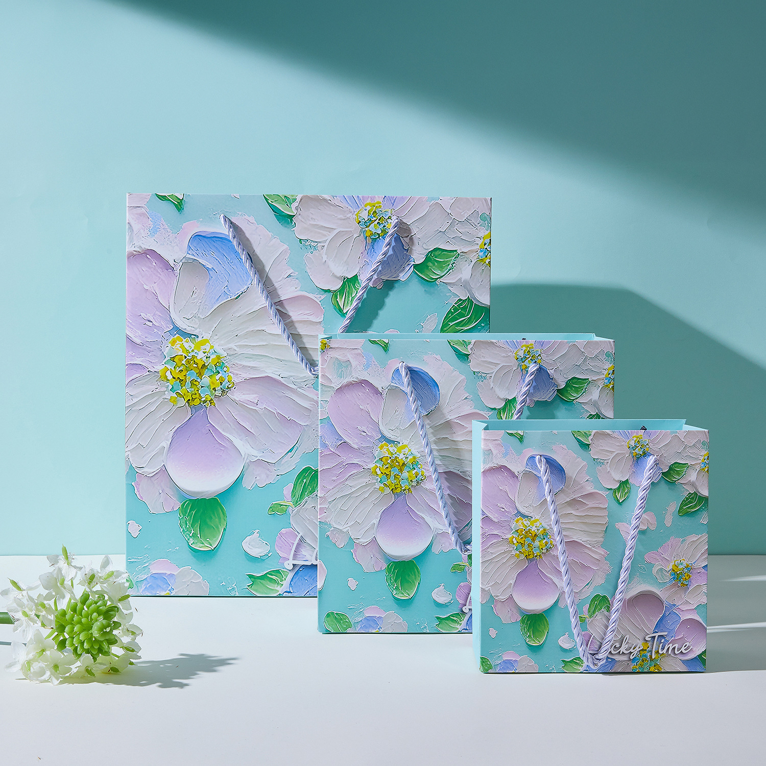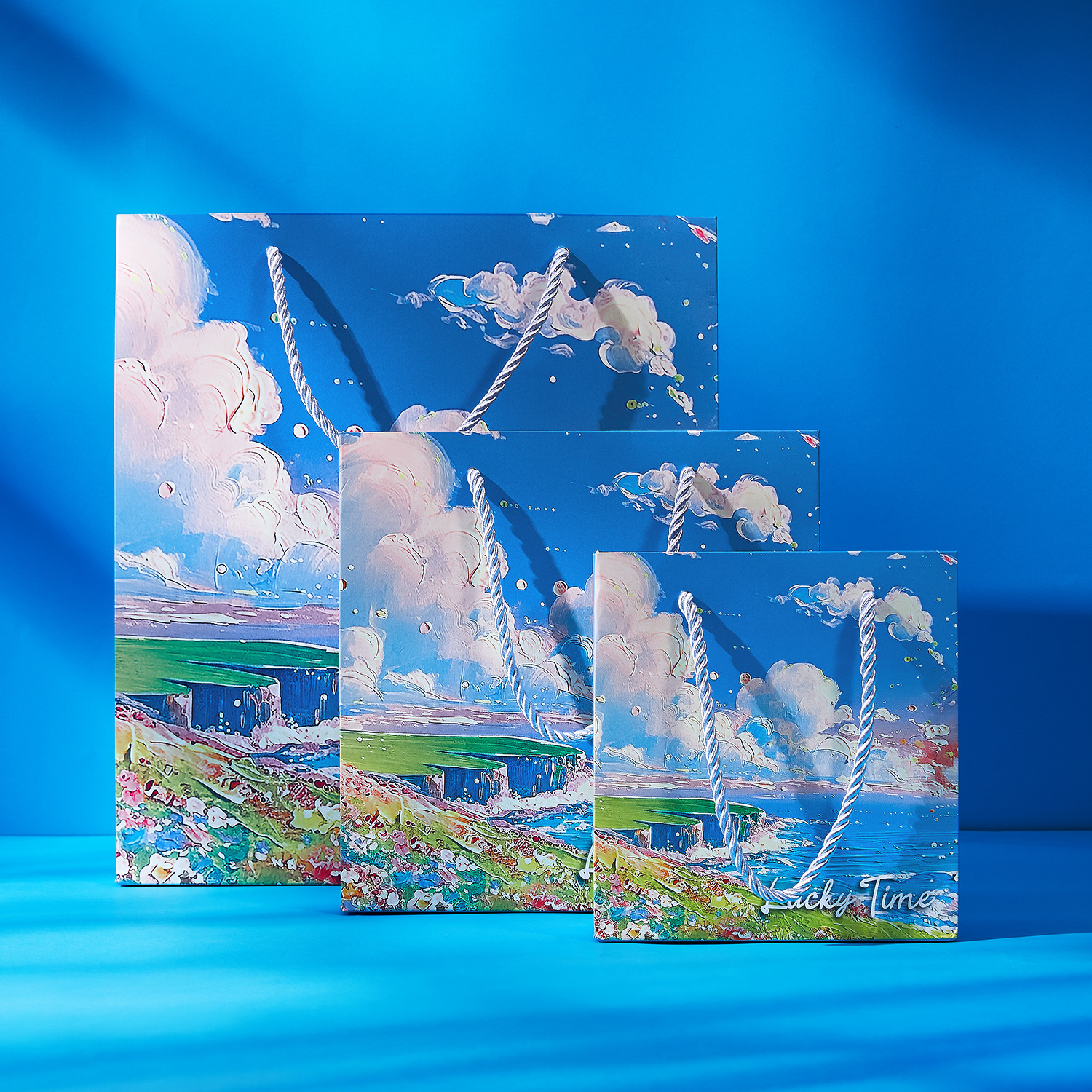 油画礼品袋子纸袋高级感服装店购物手提袋伴手礼品包装袋定 制