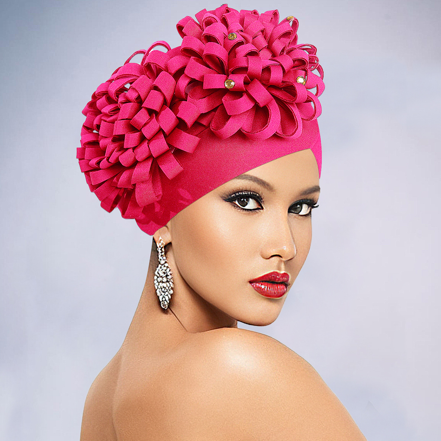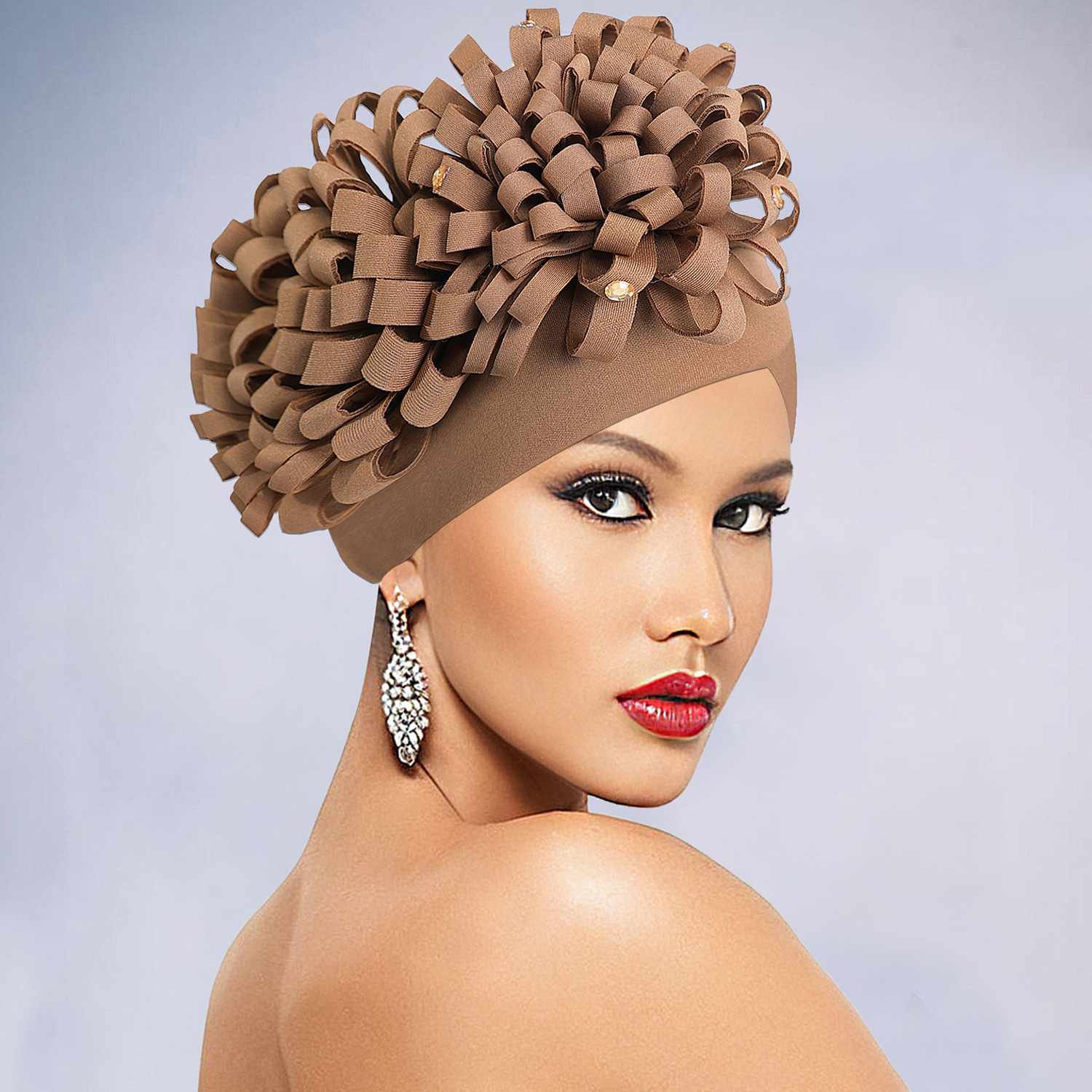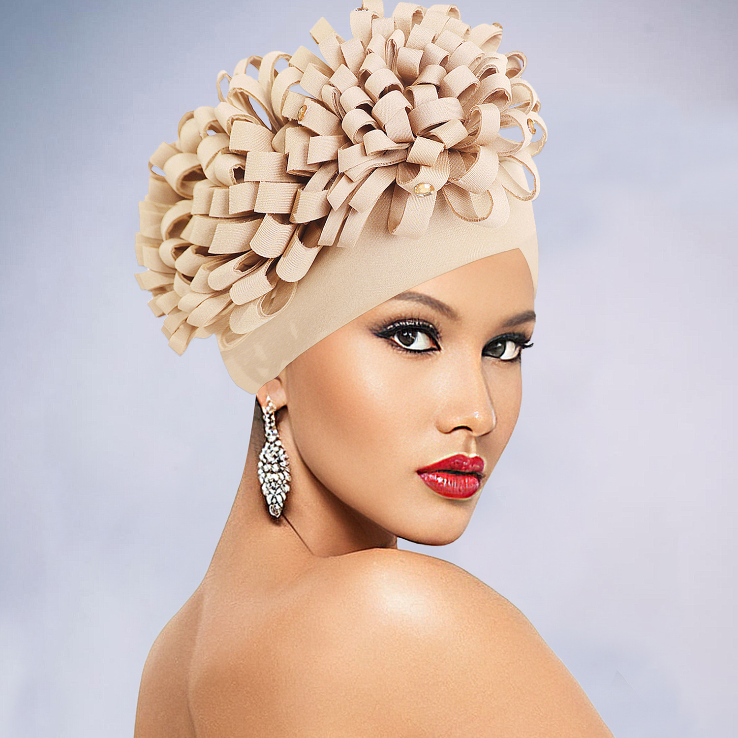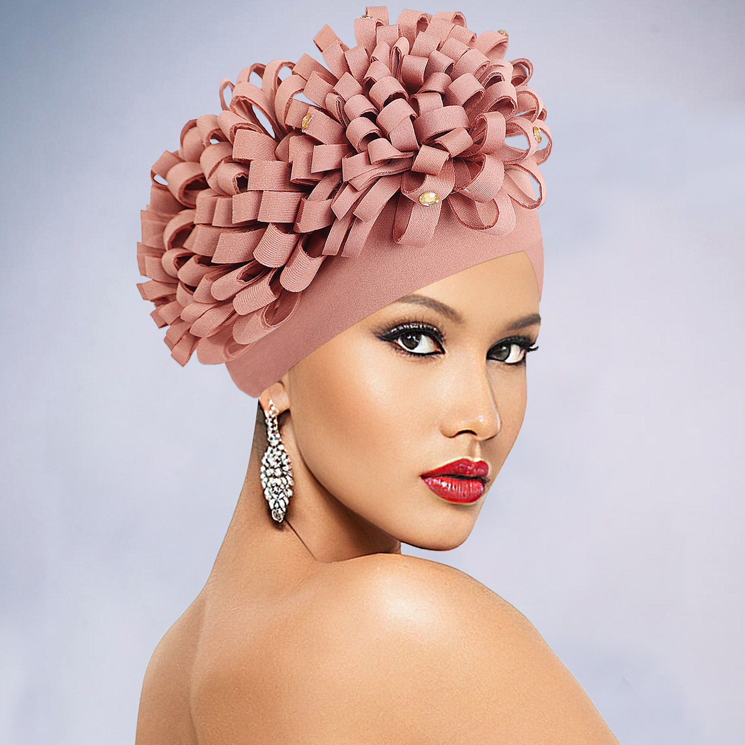新款女士花朵头巾帽 时尚钉钻太空棉包头帽 Women's headscarf