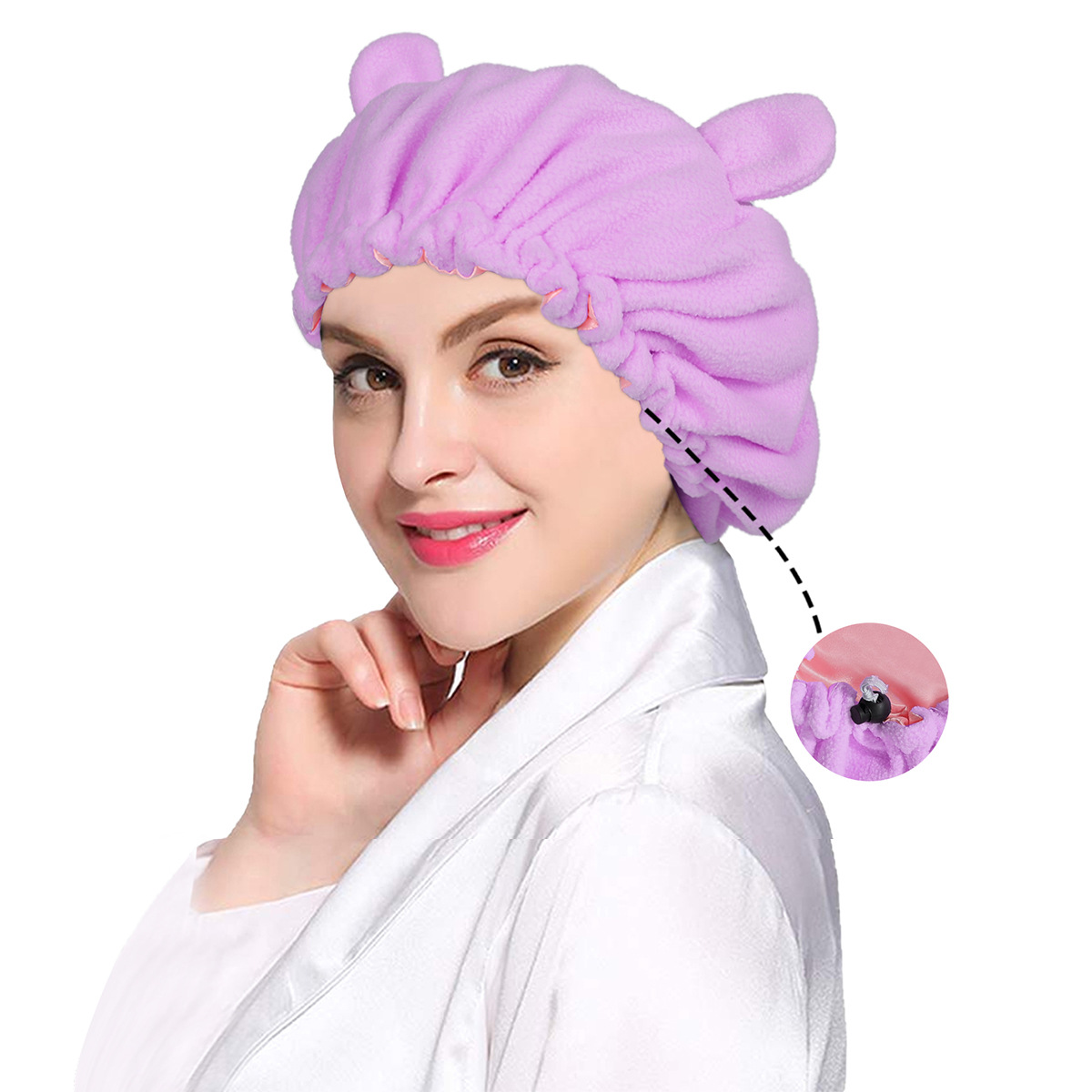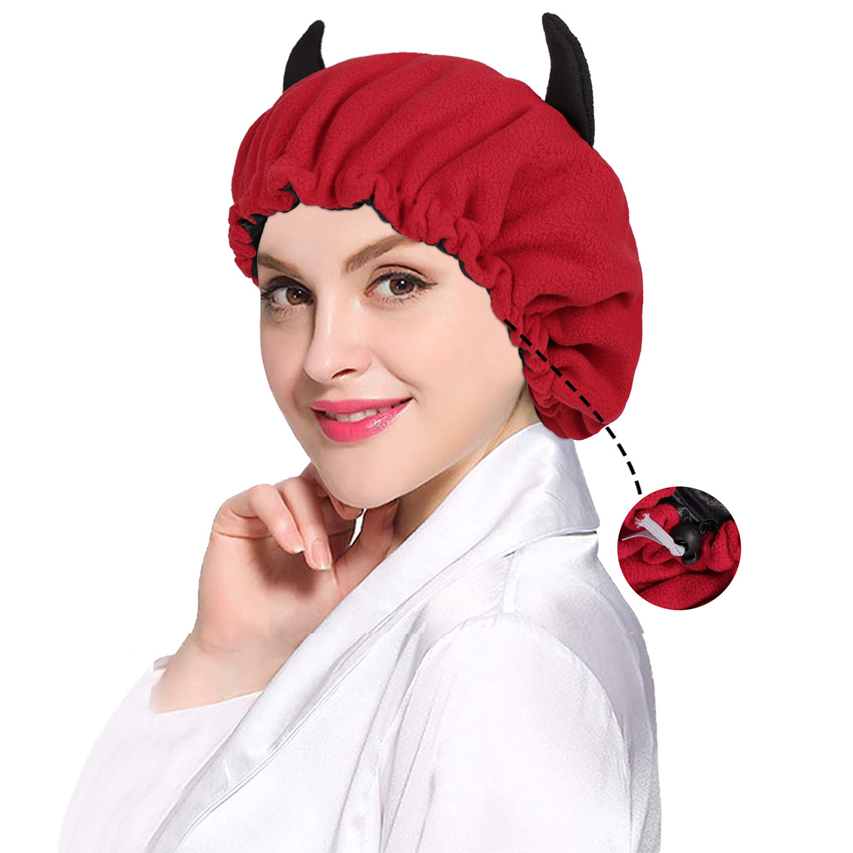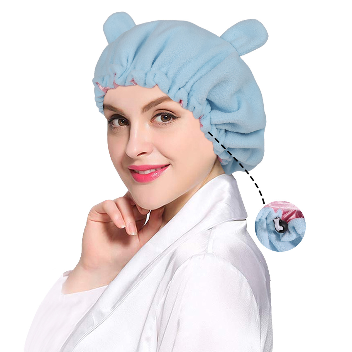 亚马逊新款女士帽子秋冬季双层可爱小熊松紧调节纽扣大号成人睡帽