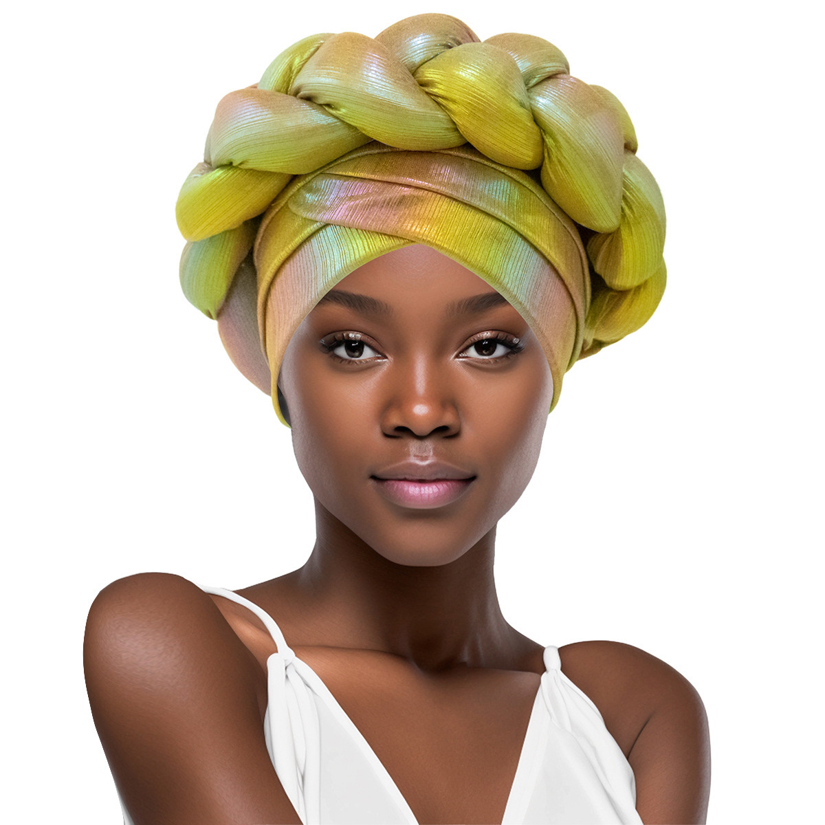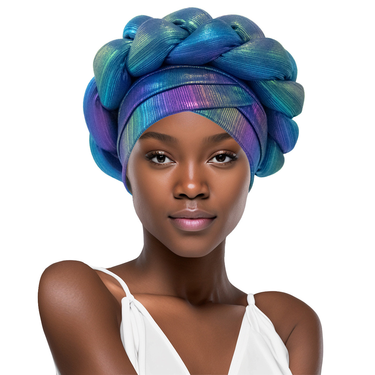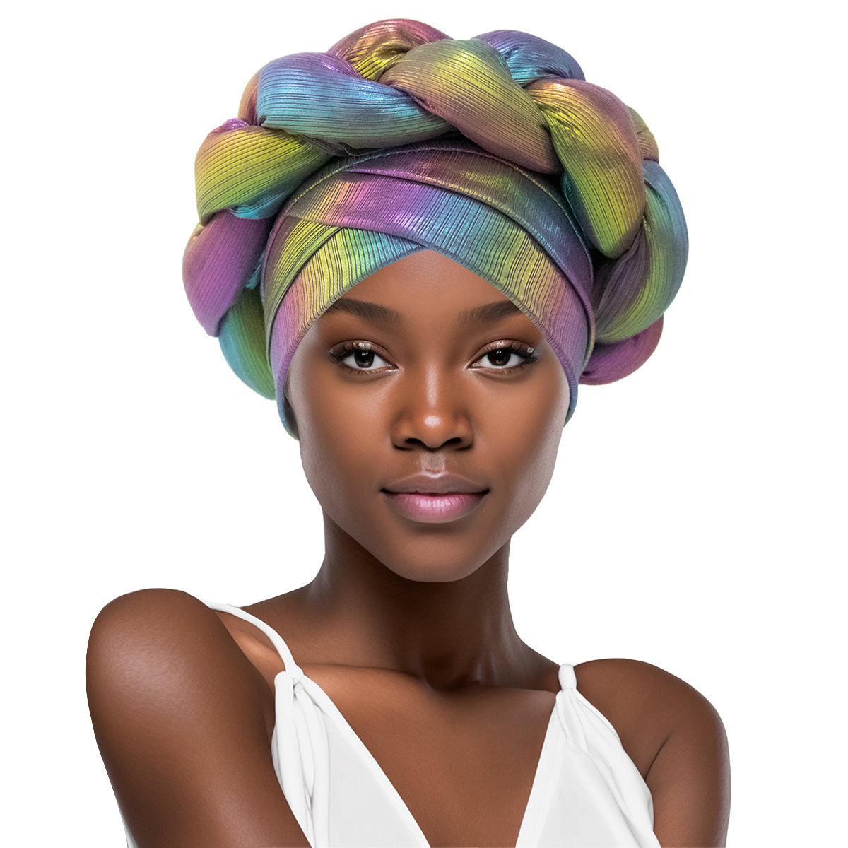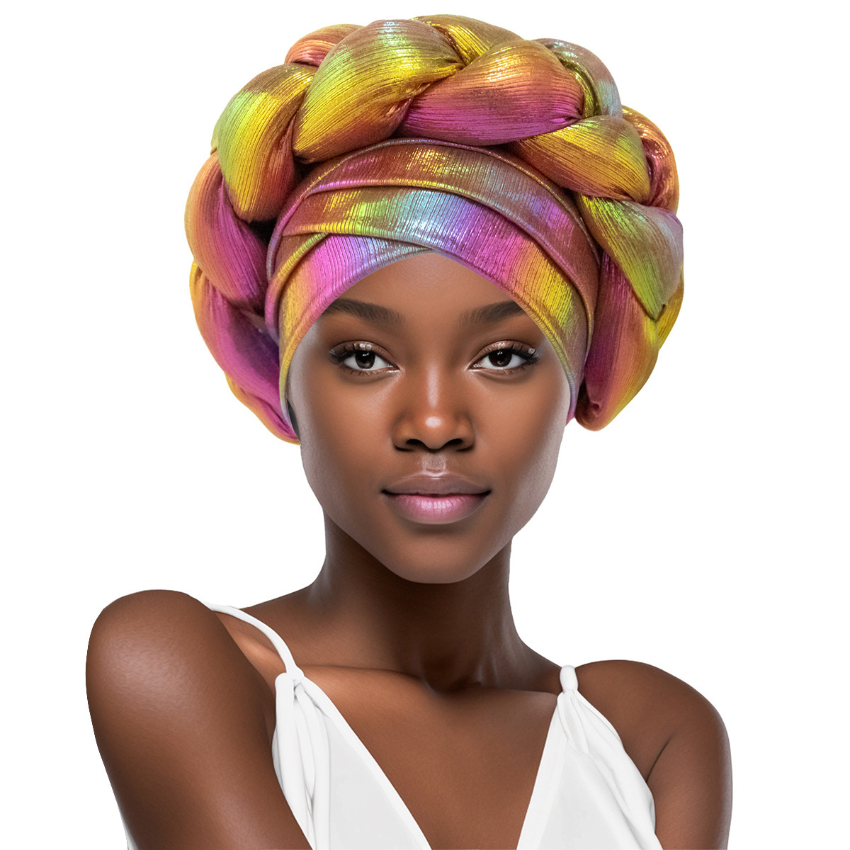 跨境热卖新款镭射大辫子头巾帽 非洲民族风百搭海绵辫子帽turbans