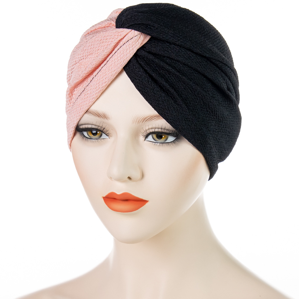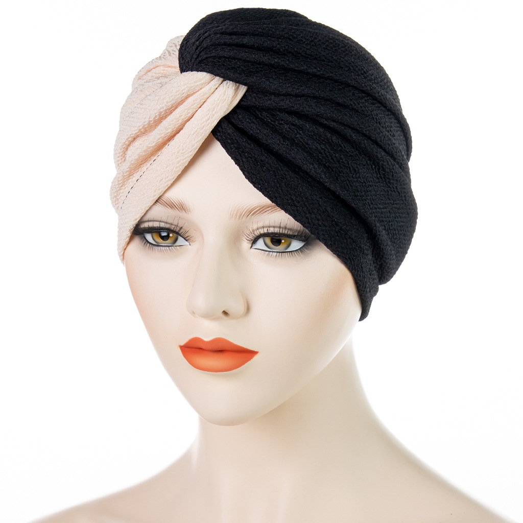 亚马逊热卖双色头巾帽 交叉扭扭帽女士头巾褶皱打结成人头巾帽子