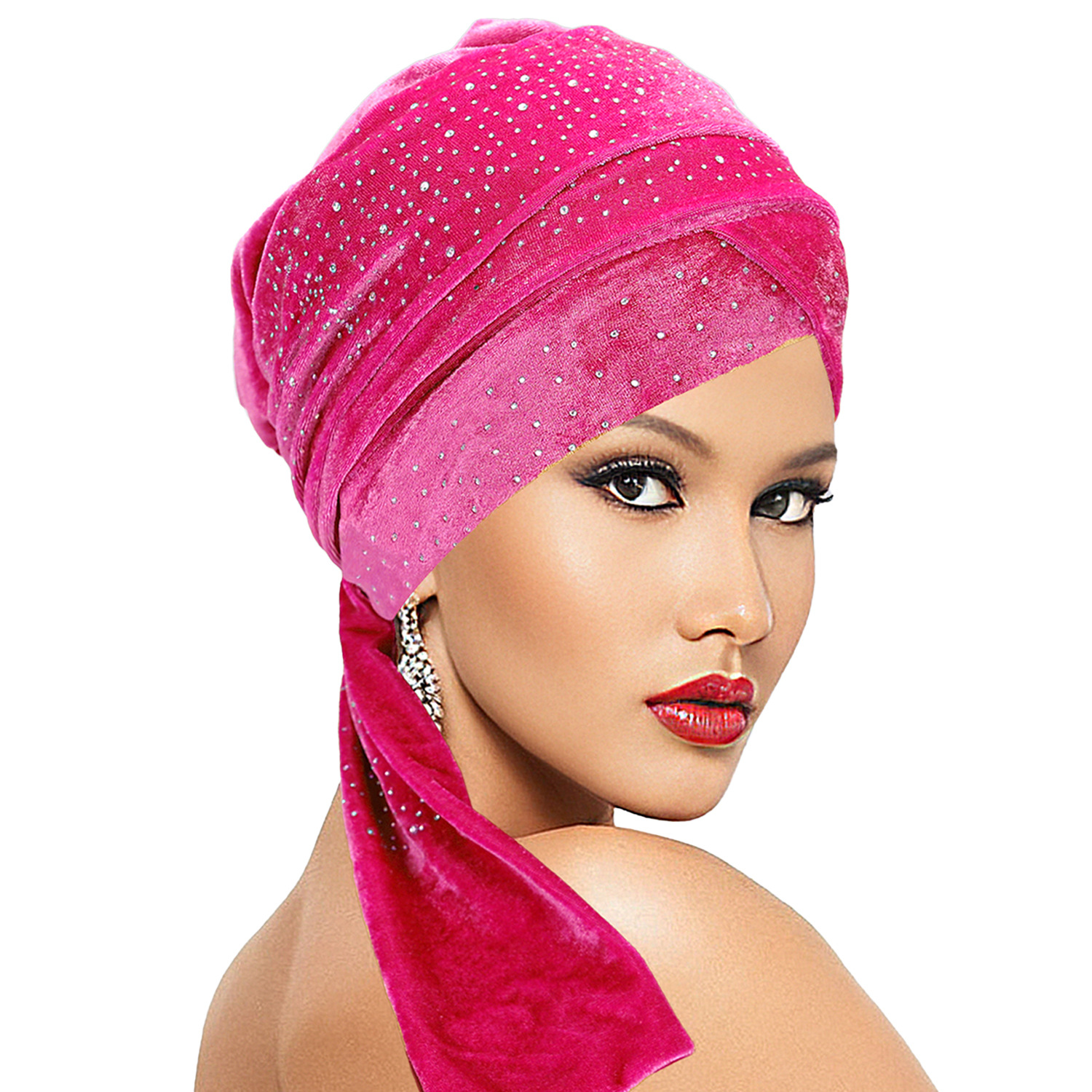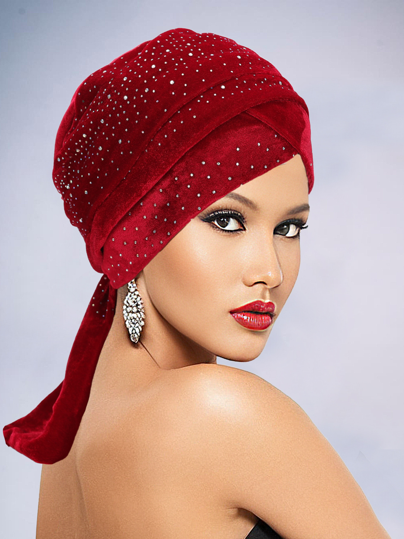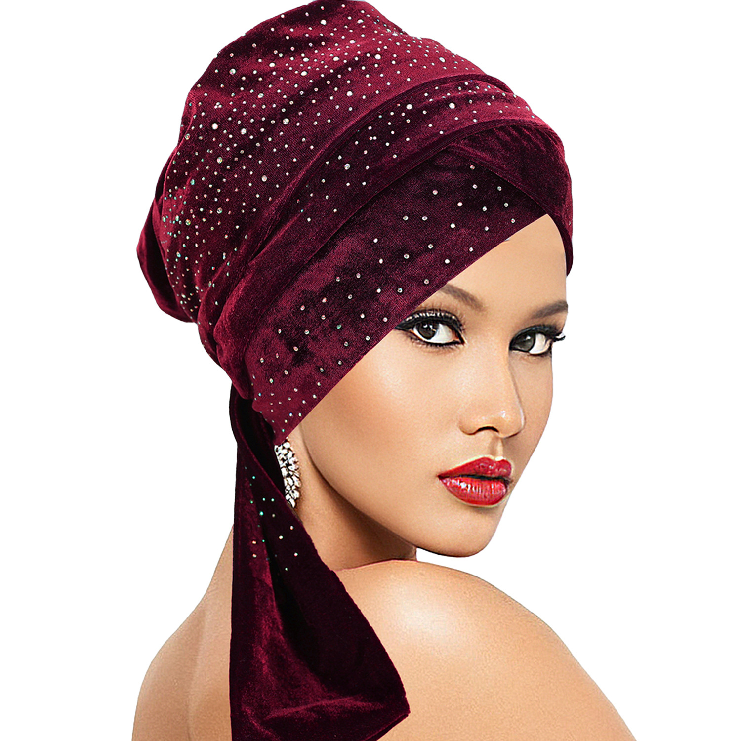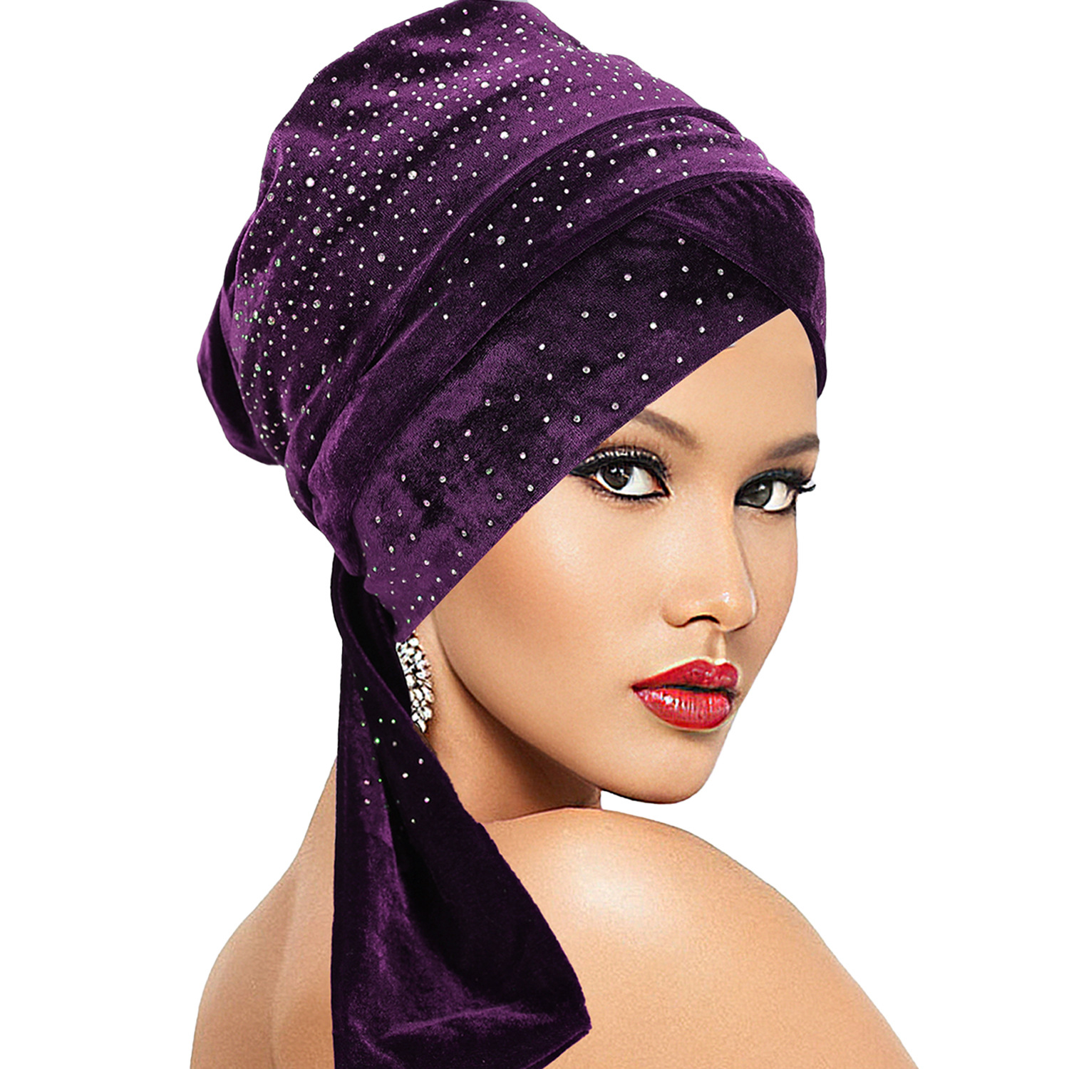 烫钻天鹅绒头巾帽 跨境热卖女士前额交叉包头帽Velvet turban
