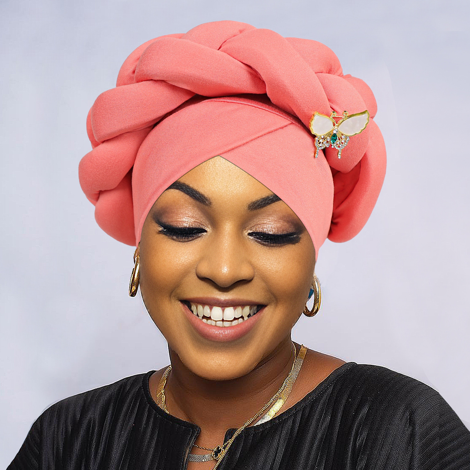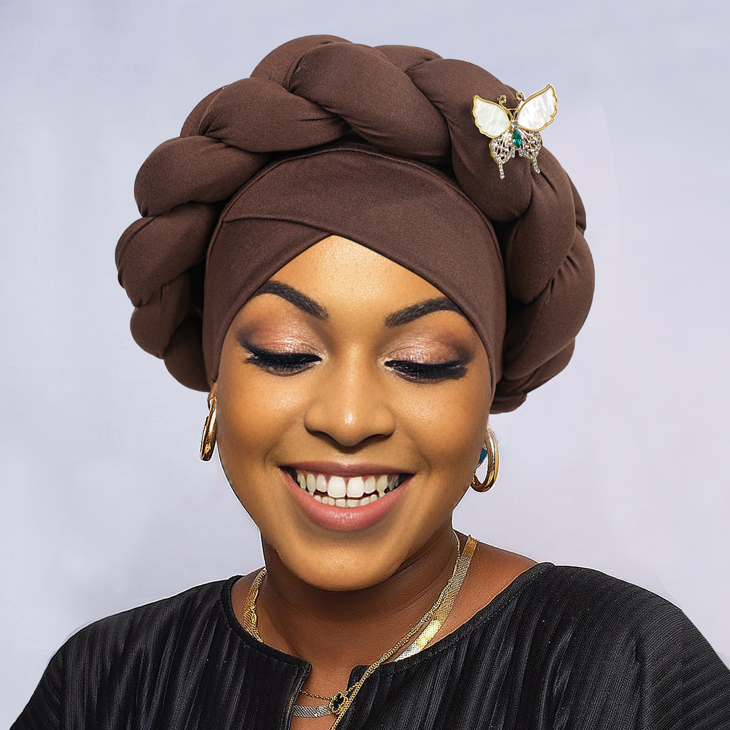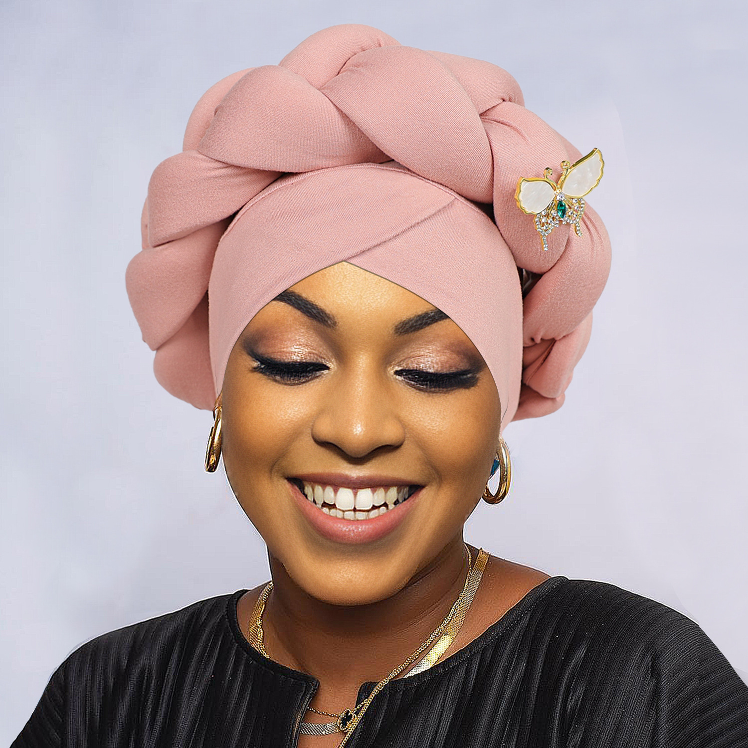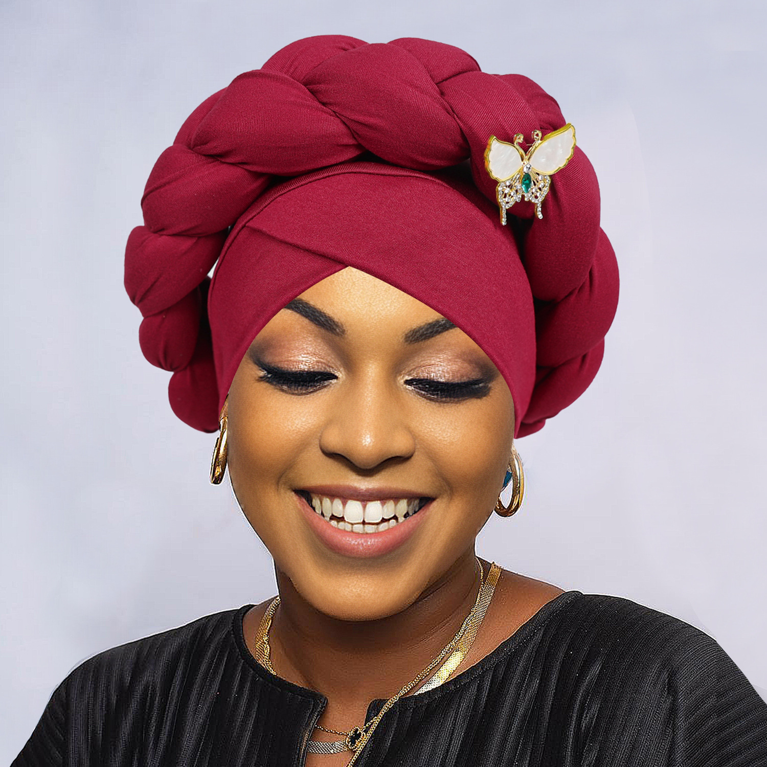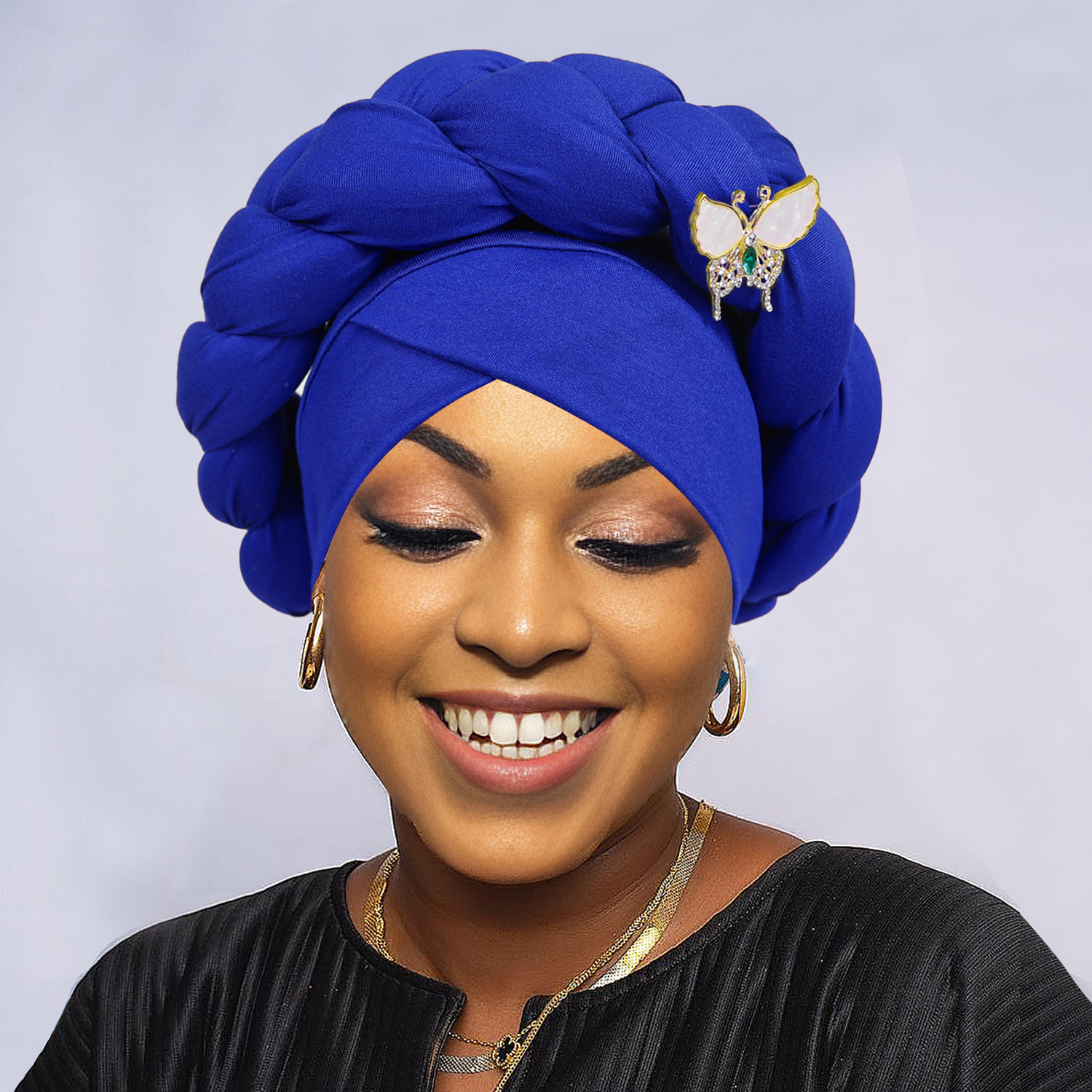 跨境新款牛奶丝大辫子头巾帽时尚蝴蝶配饰 夸张风前额交叉包头帽