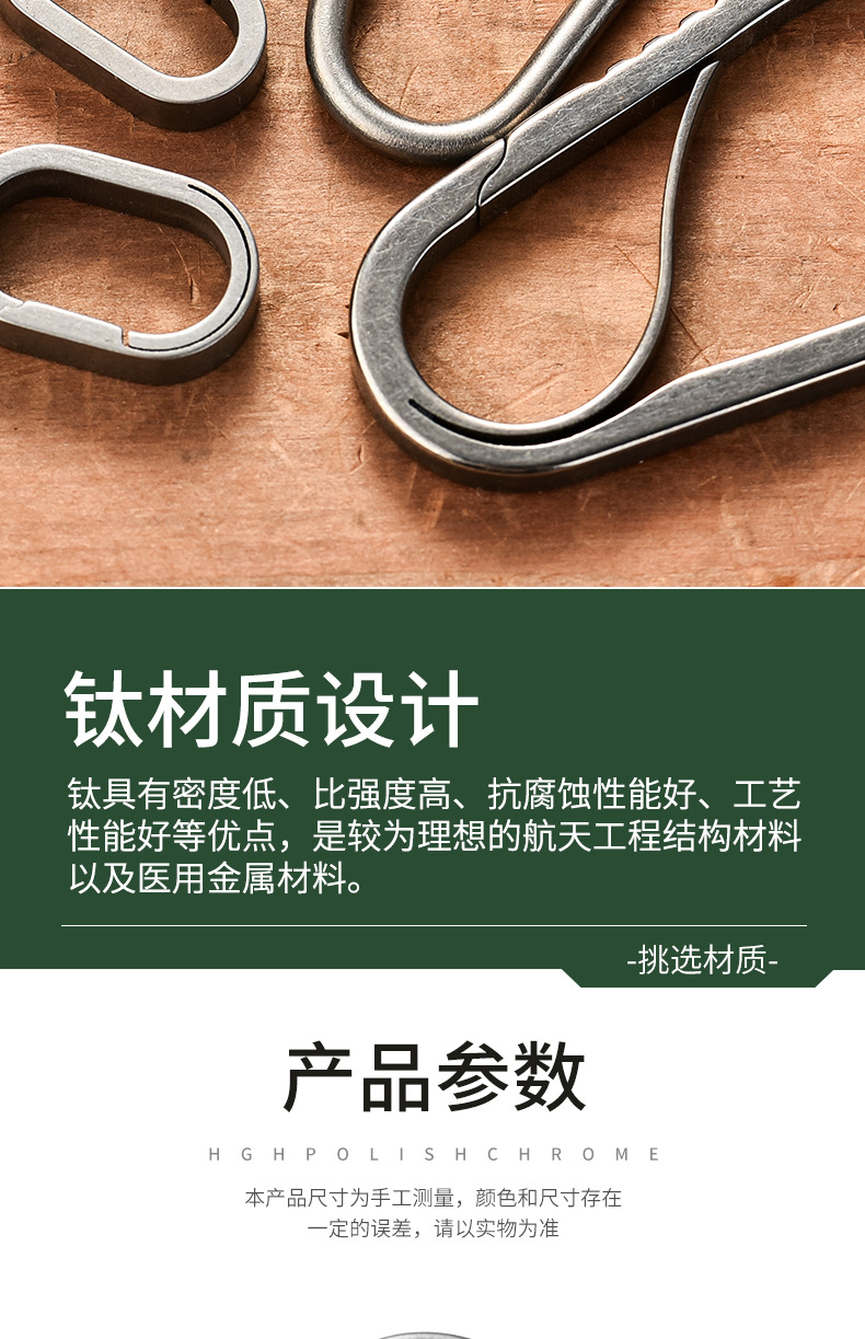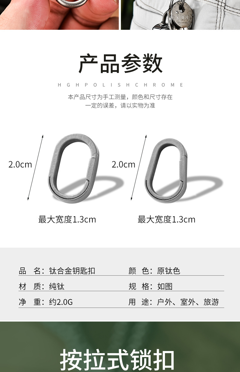 钛合金水滴扣固定圈钛合金钥匙圈辅助扣户外钛合金钥匙扣钥匙挂扣