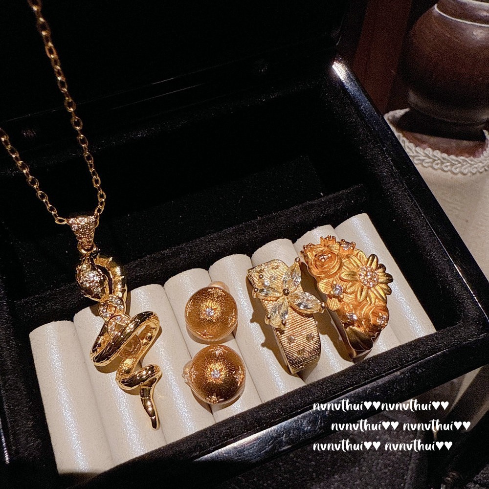 古法金色 錾雕腰缠万贯铜钱灵蛇项链 新中式 复古繁花锆石戒指