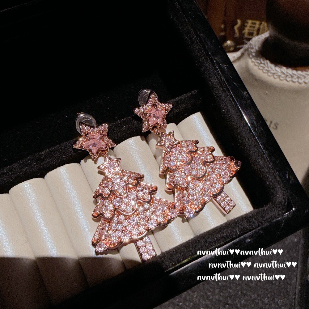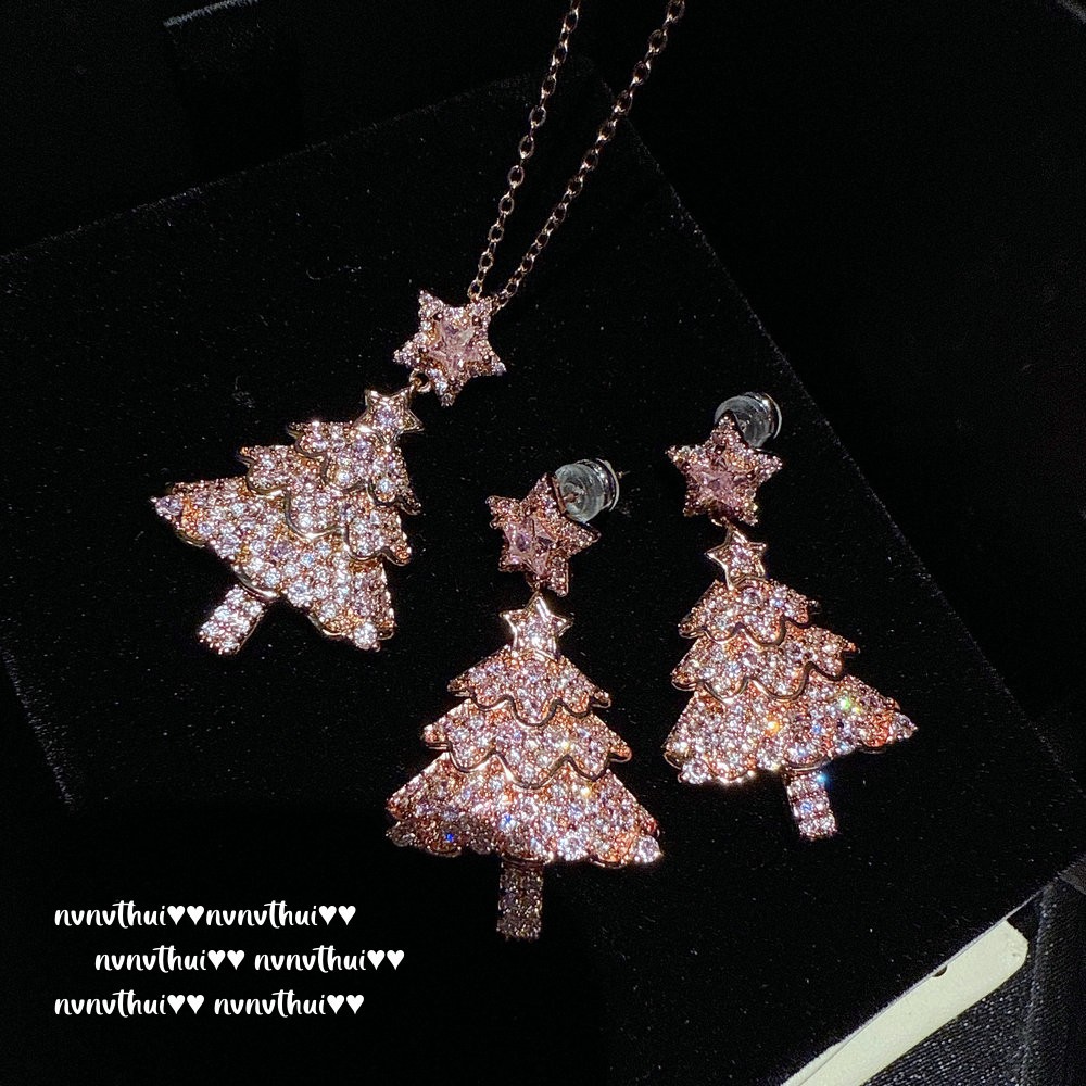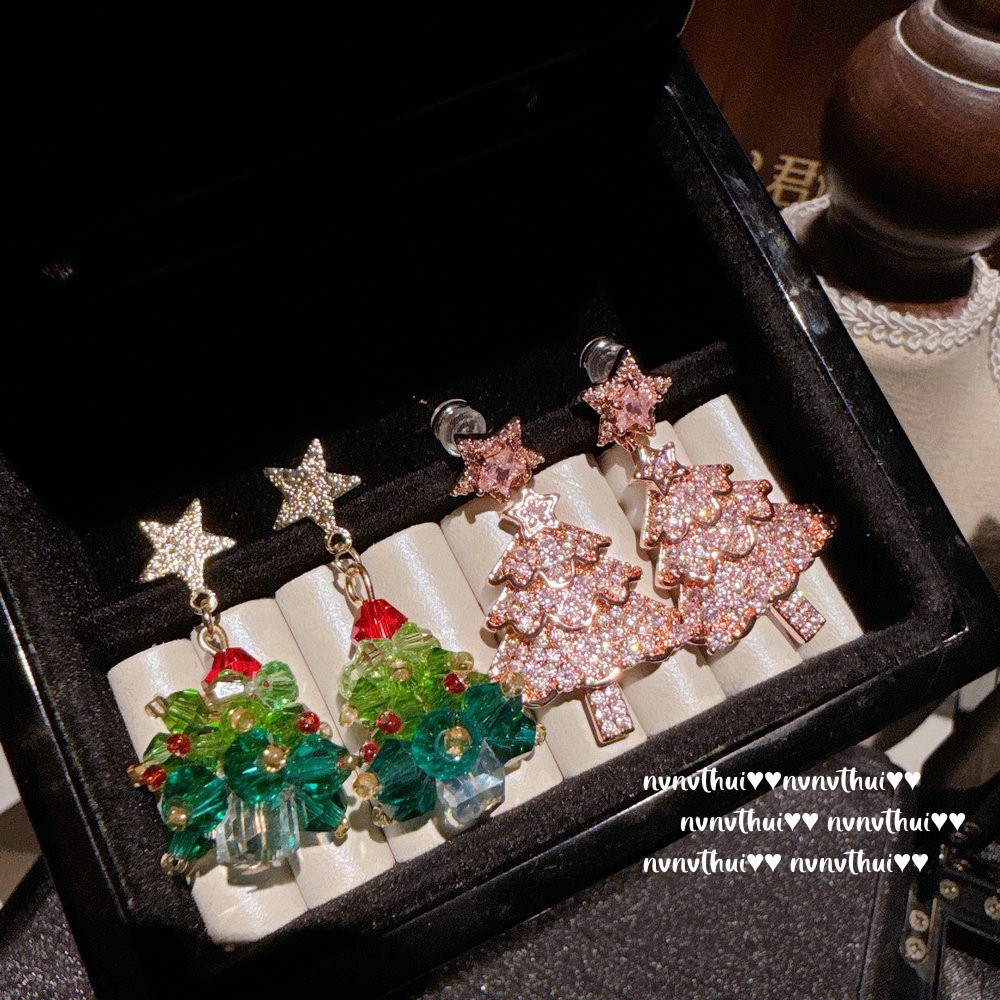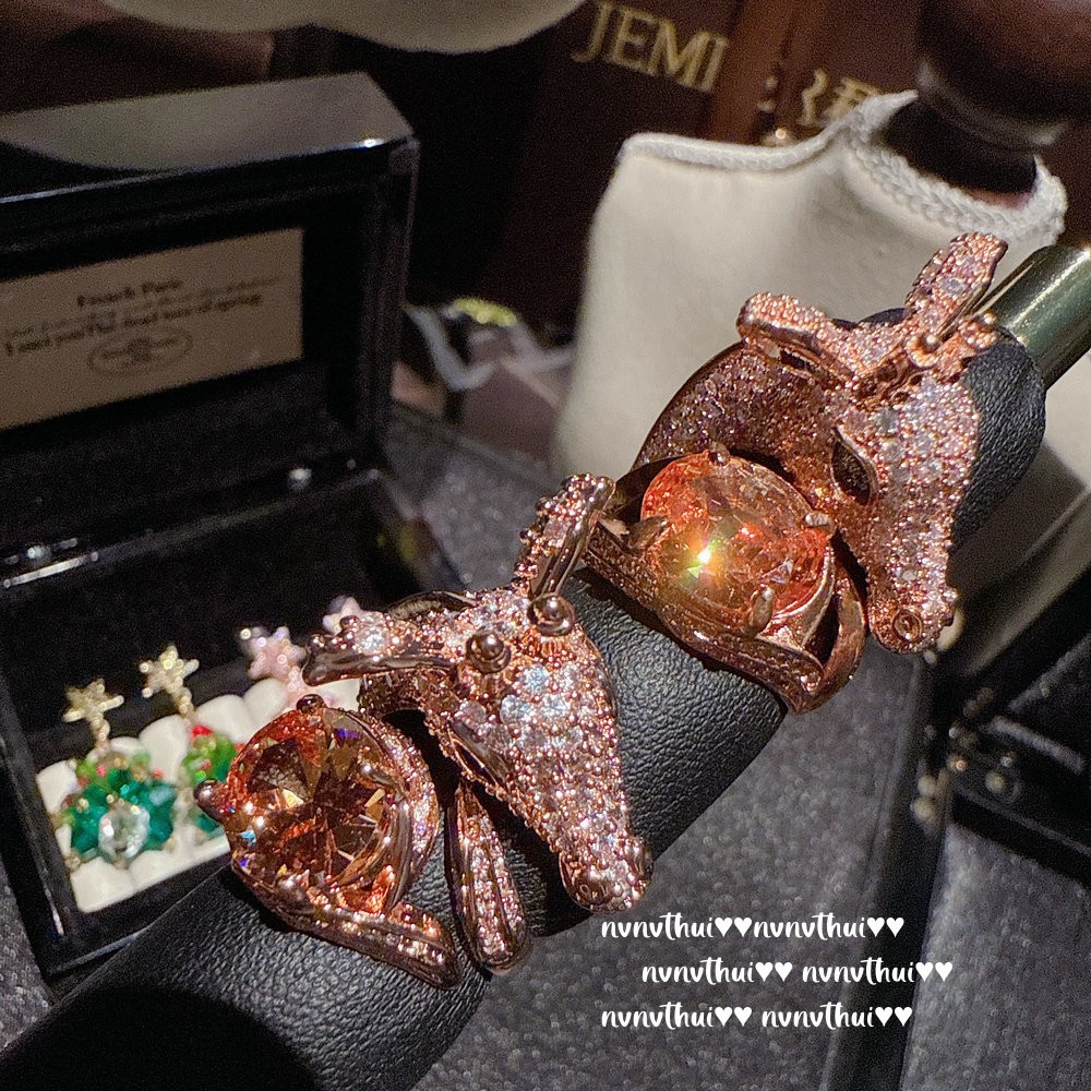 年会珠宝 艳彩橘钻麋鹿宝石戒指 Vintage 星星圣诞树锆石耳环