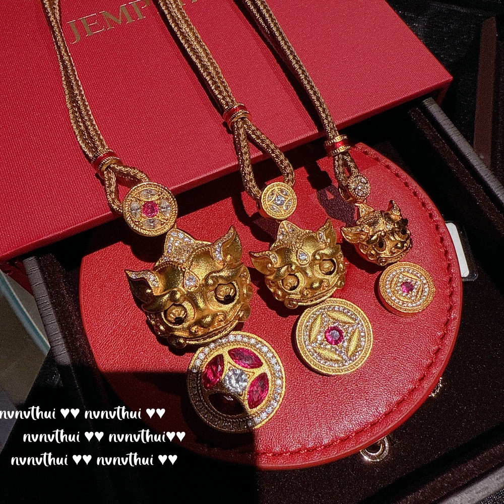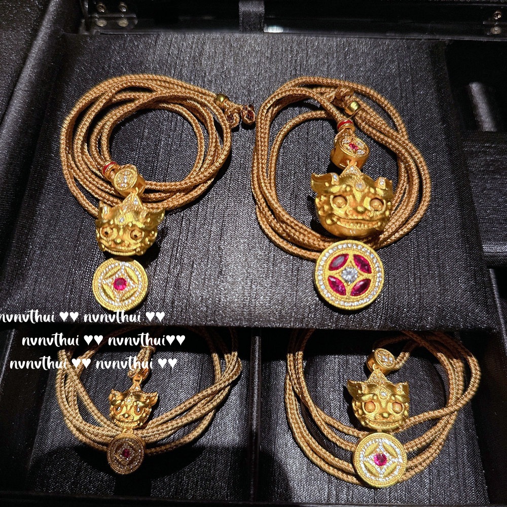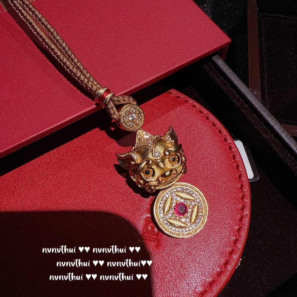 古法金色錾刻铜币灵动貔貅闪钻吊坠项链眼睛会动新中式平安扣项链