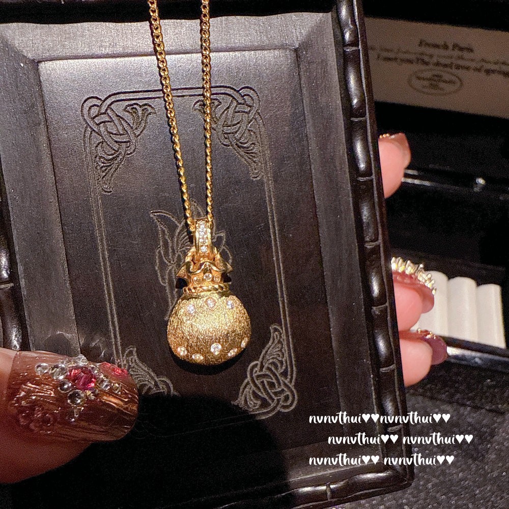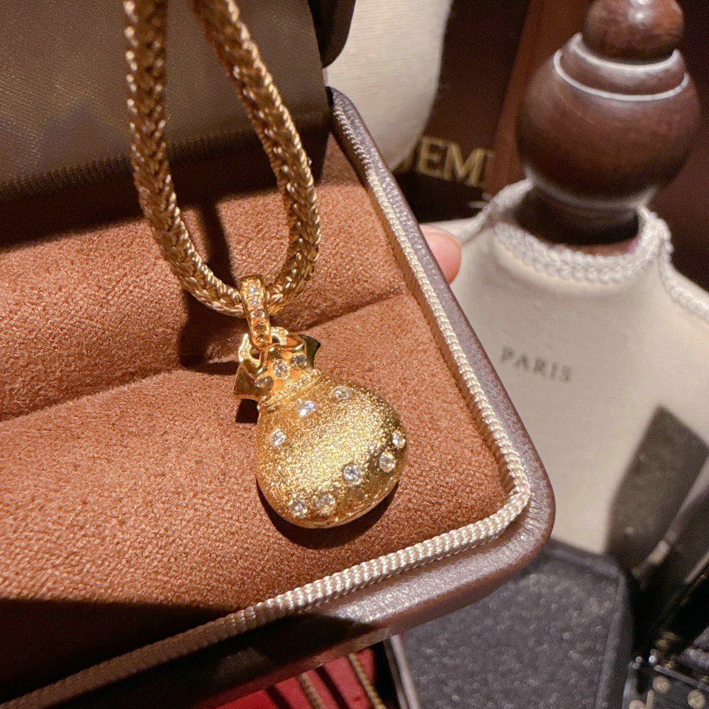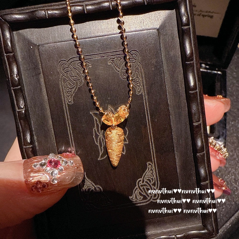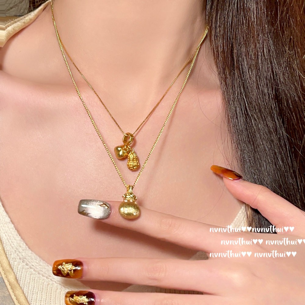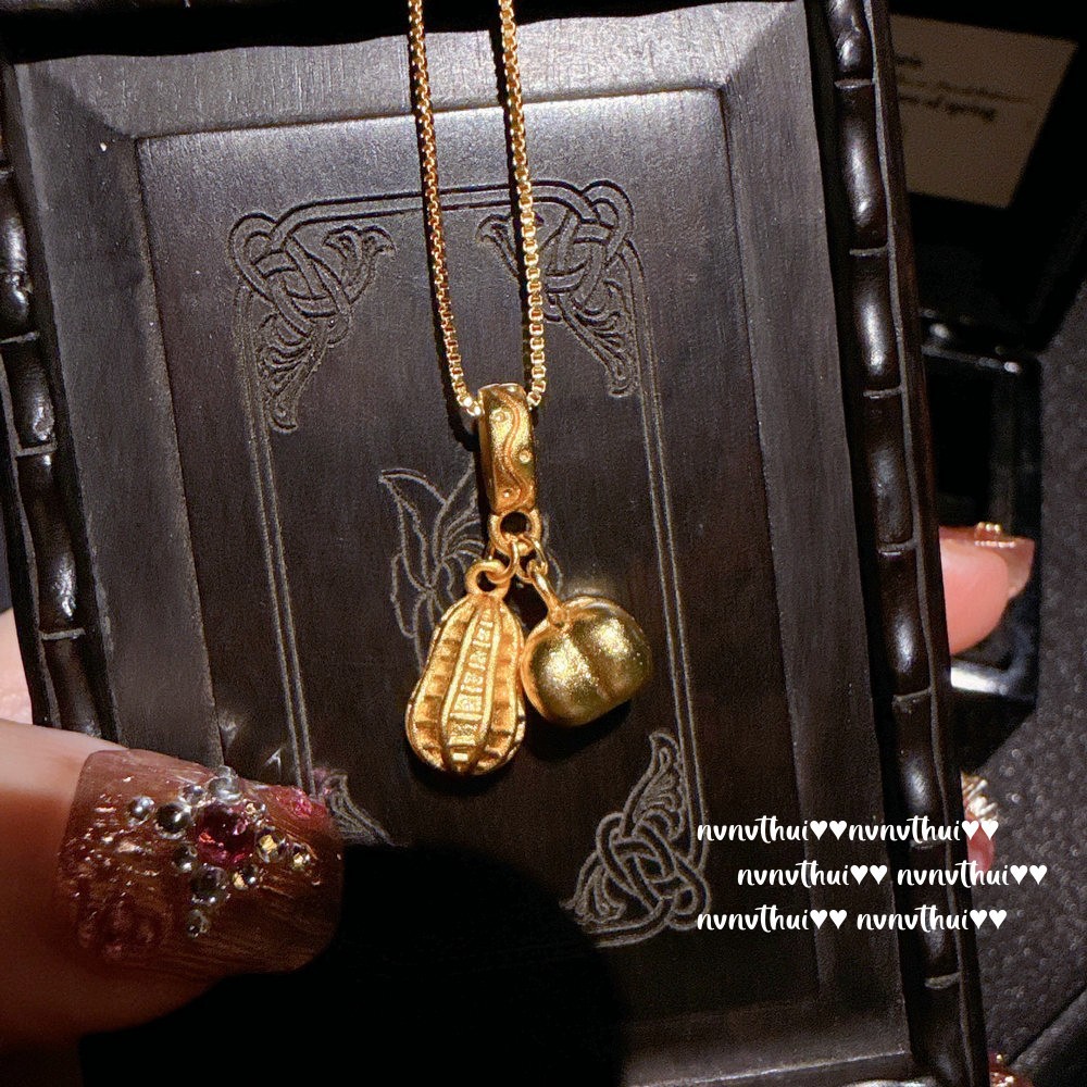古法金色錾雕好事花生南瓜吊坠项链 新中式 胡萝卜钱袋子锆石颈链