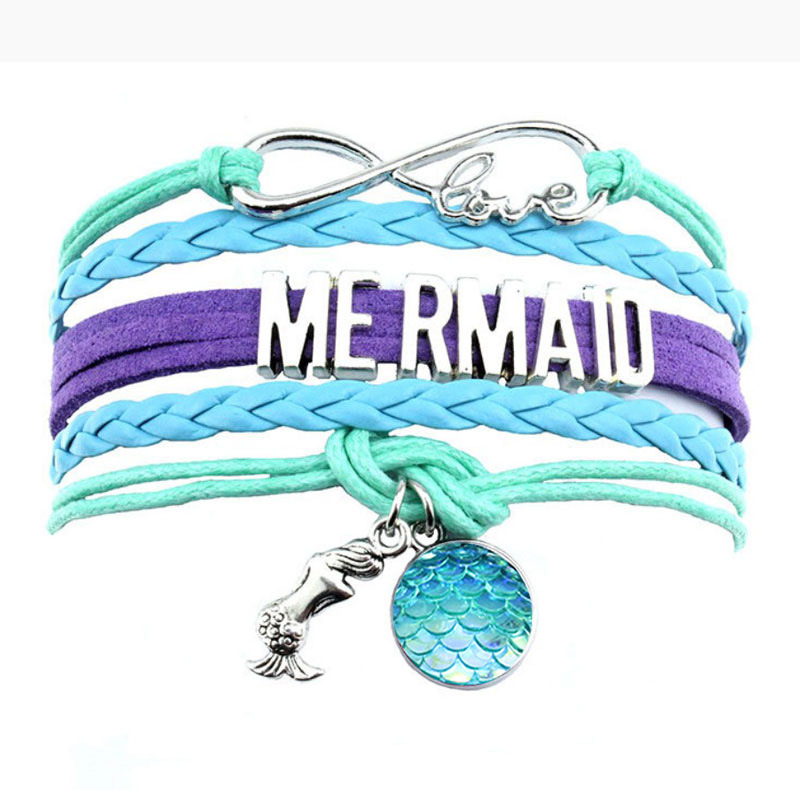 欧美饰品 亚马逊新款手工编织无限爱 美人鱼 鱼鳞片 MERMAID手链