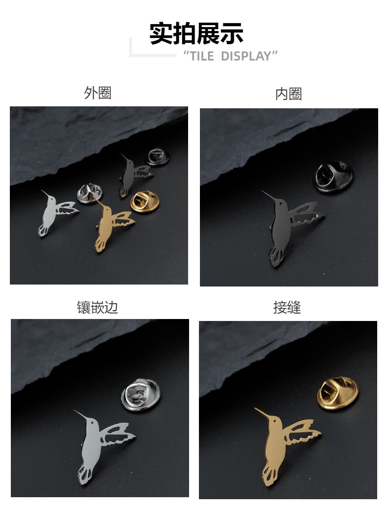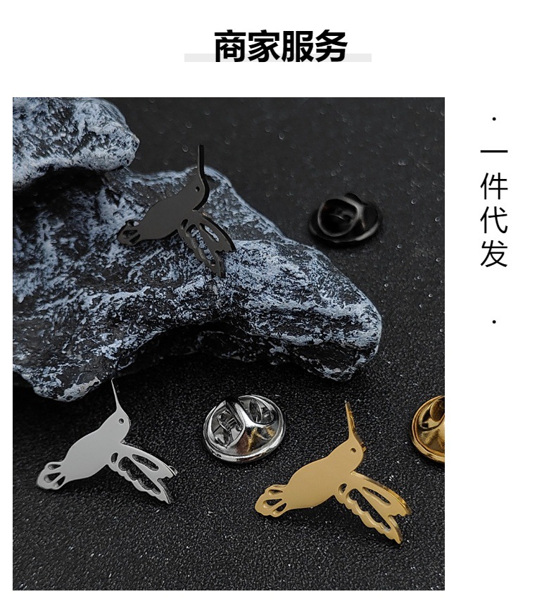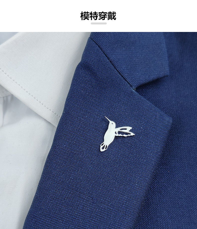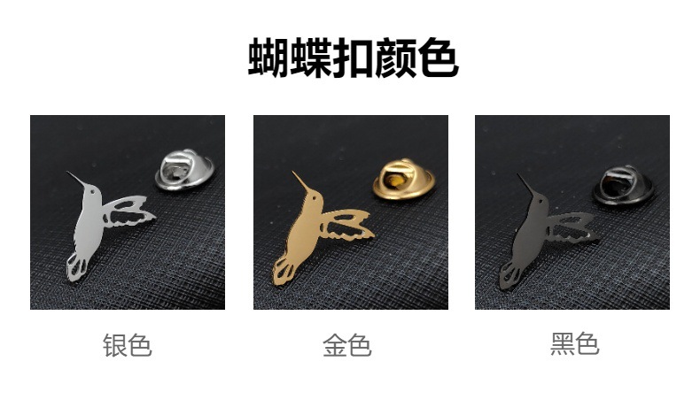 欧美 时尚简约小鸟 鸽子镂空蝴蝶扣胸针 男士不锈钢饰品 搭配西装