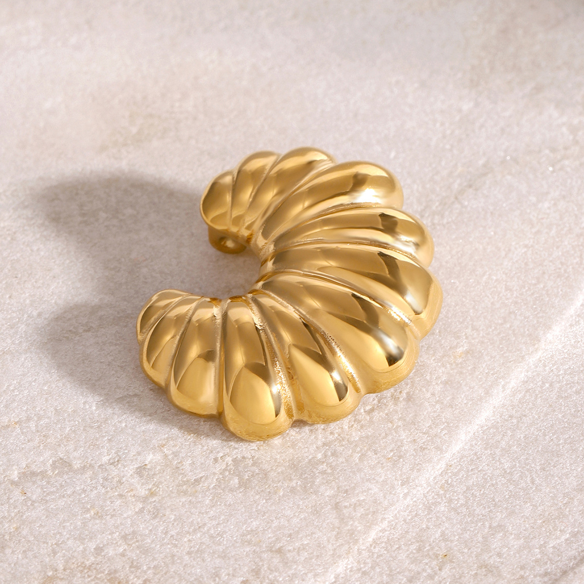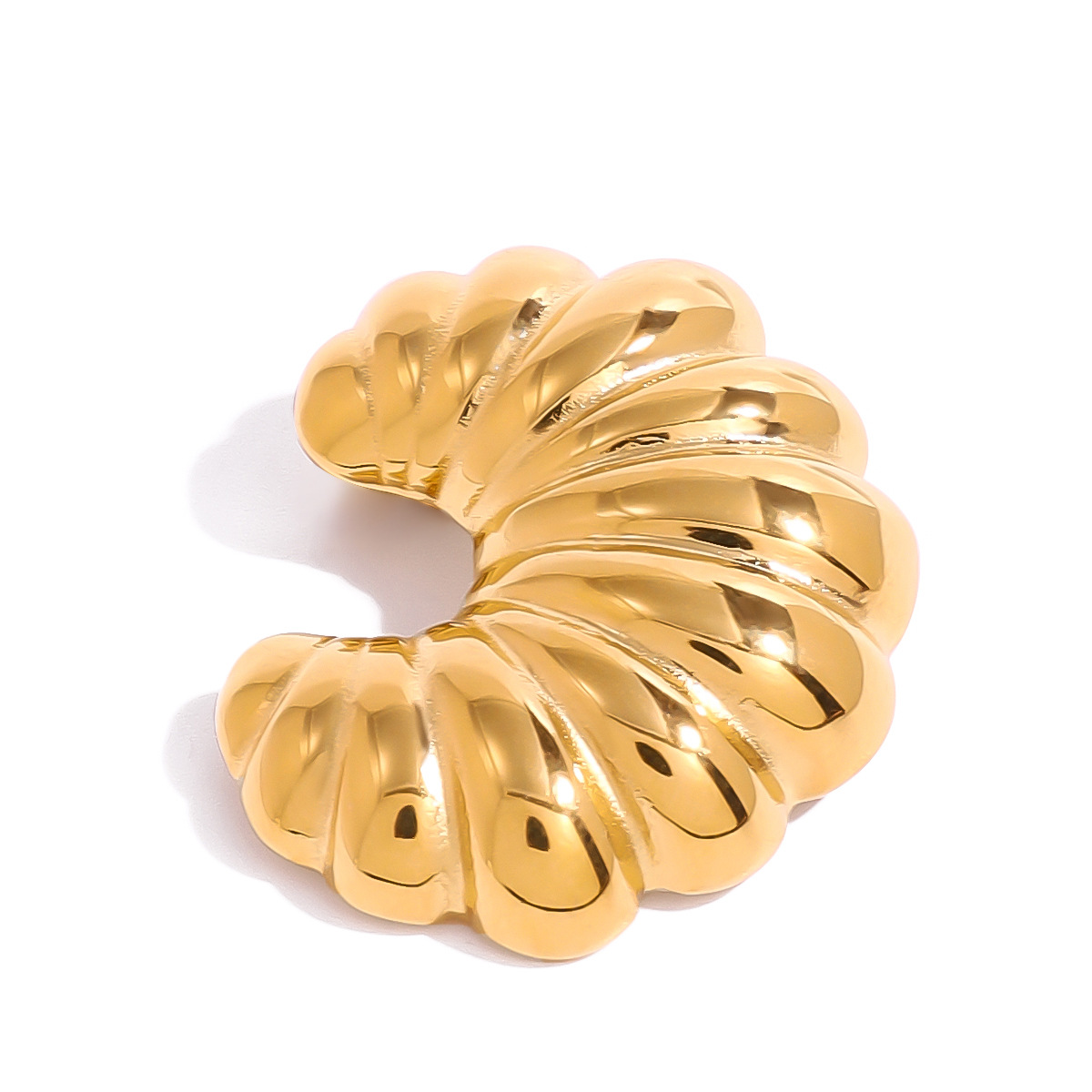 杰鼎欧美不锈钢18k金胖乎乎牛角包胸针简约精致胸花秋冬大衣配饰
