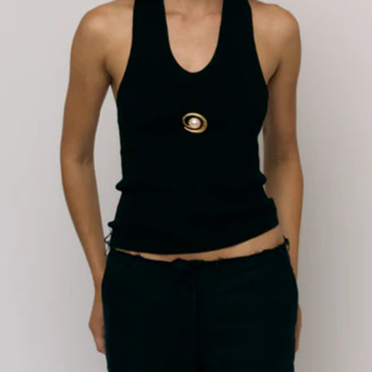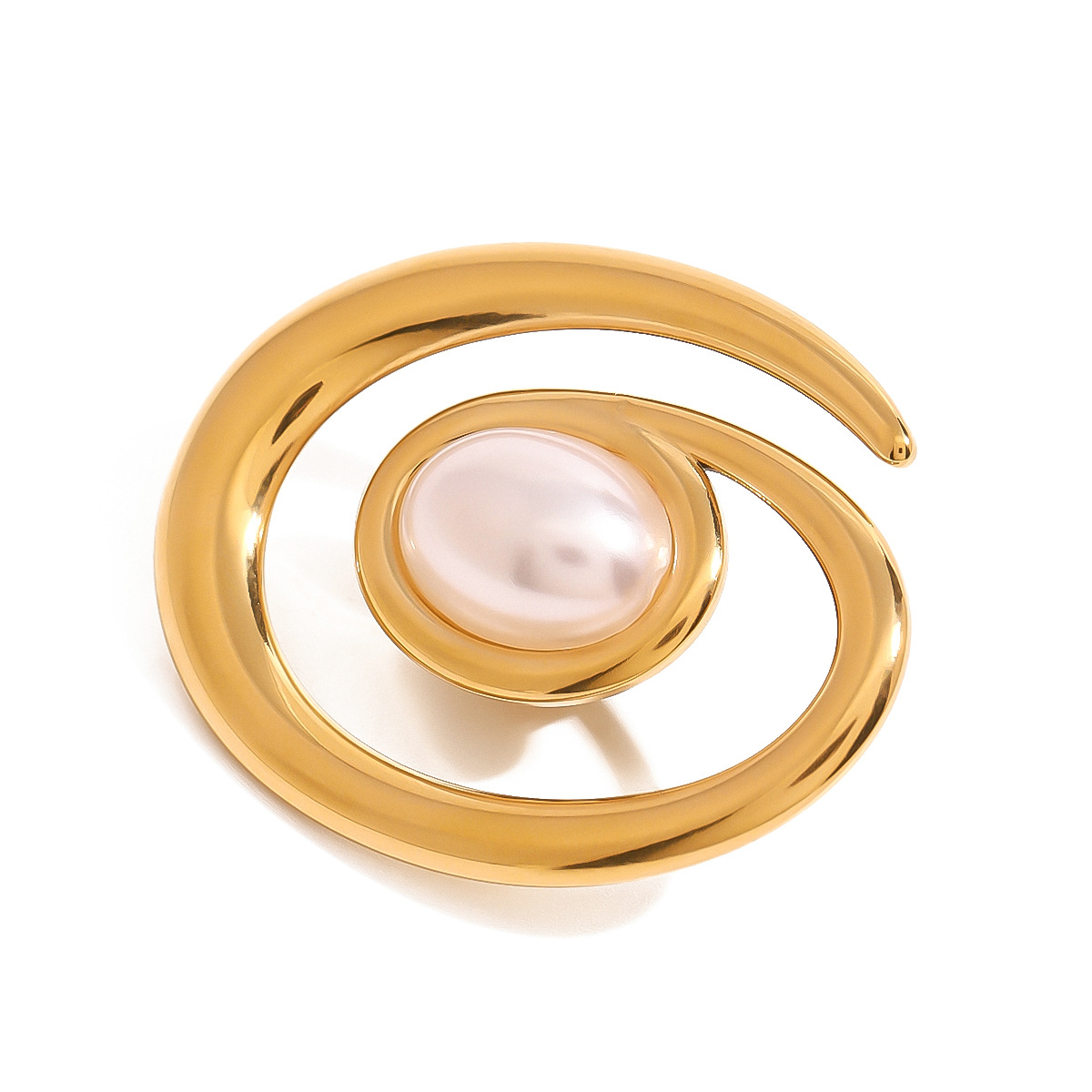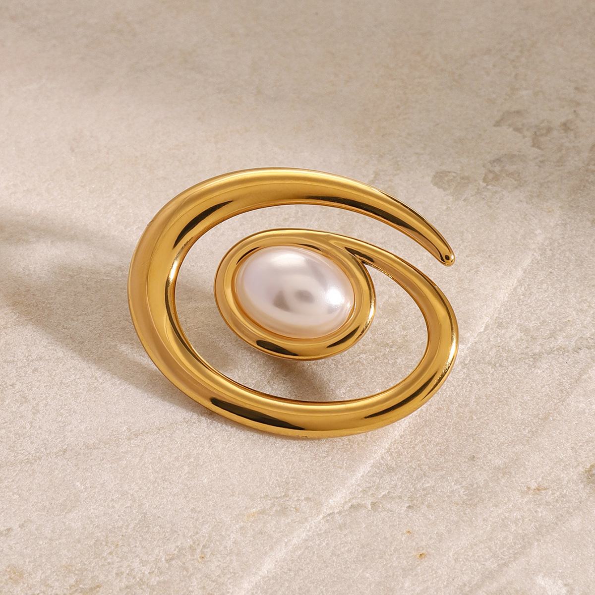 杰鼎欧美不锈钢18k金螺旋珍珠胸针大气简约ins风配饰钛钢时尚饰品