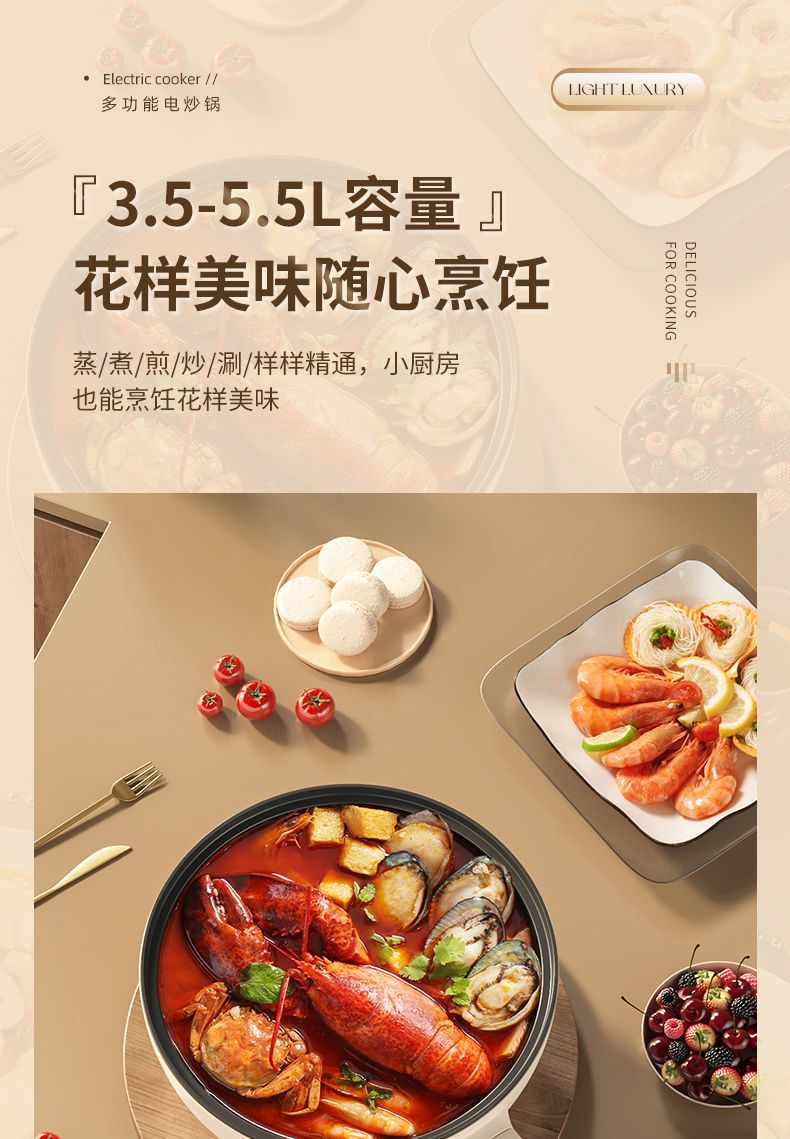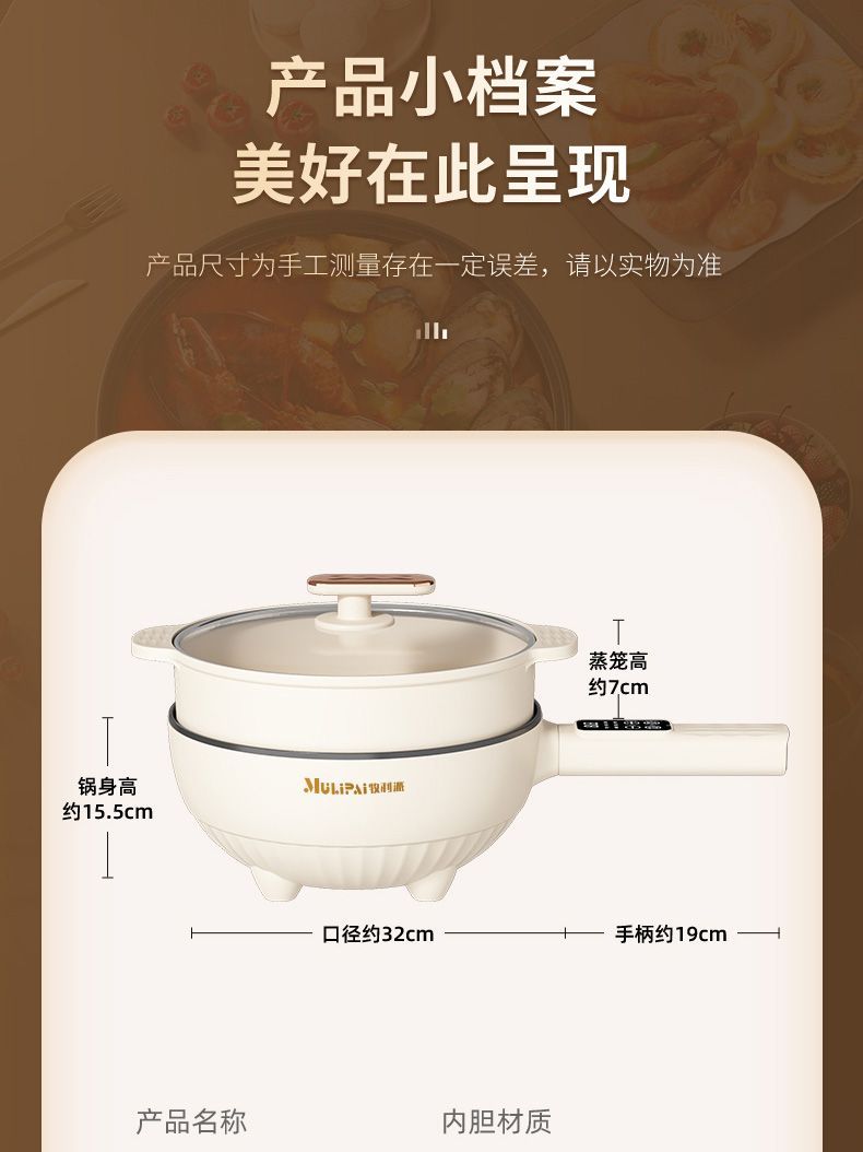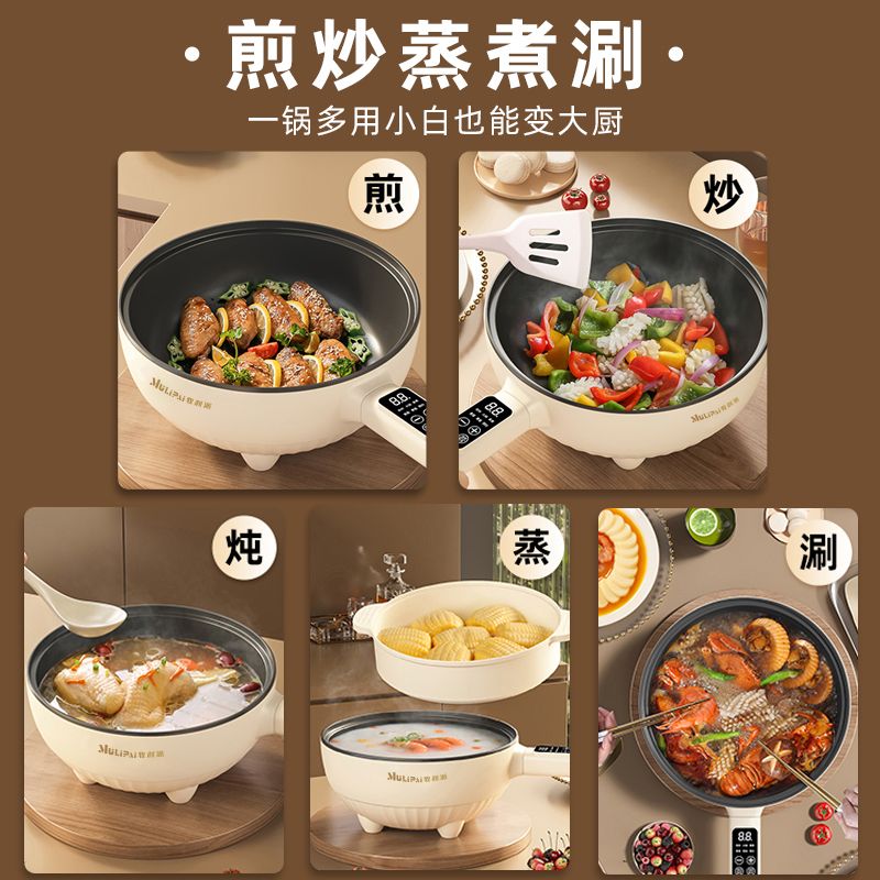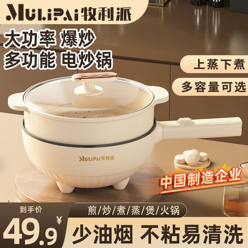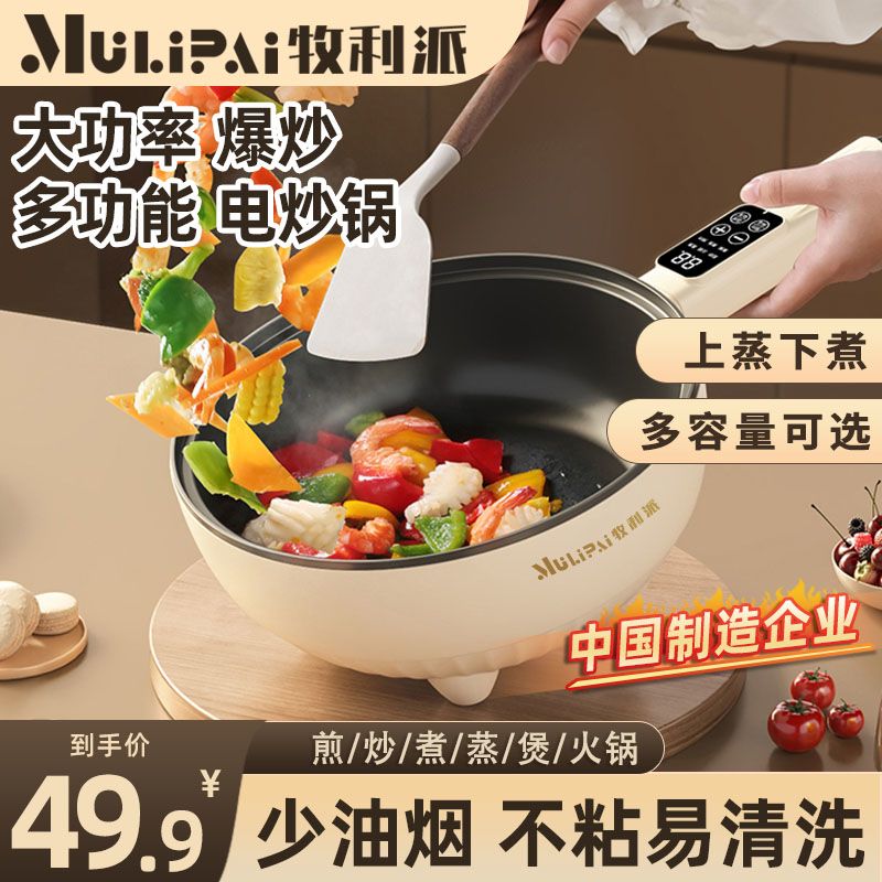 牧利派电炒菜炒锅一体多功能大功率电煮锅家用爆炒蒸煮炒煎电火锅
