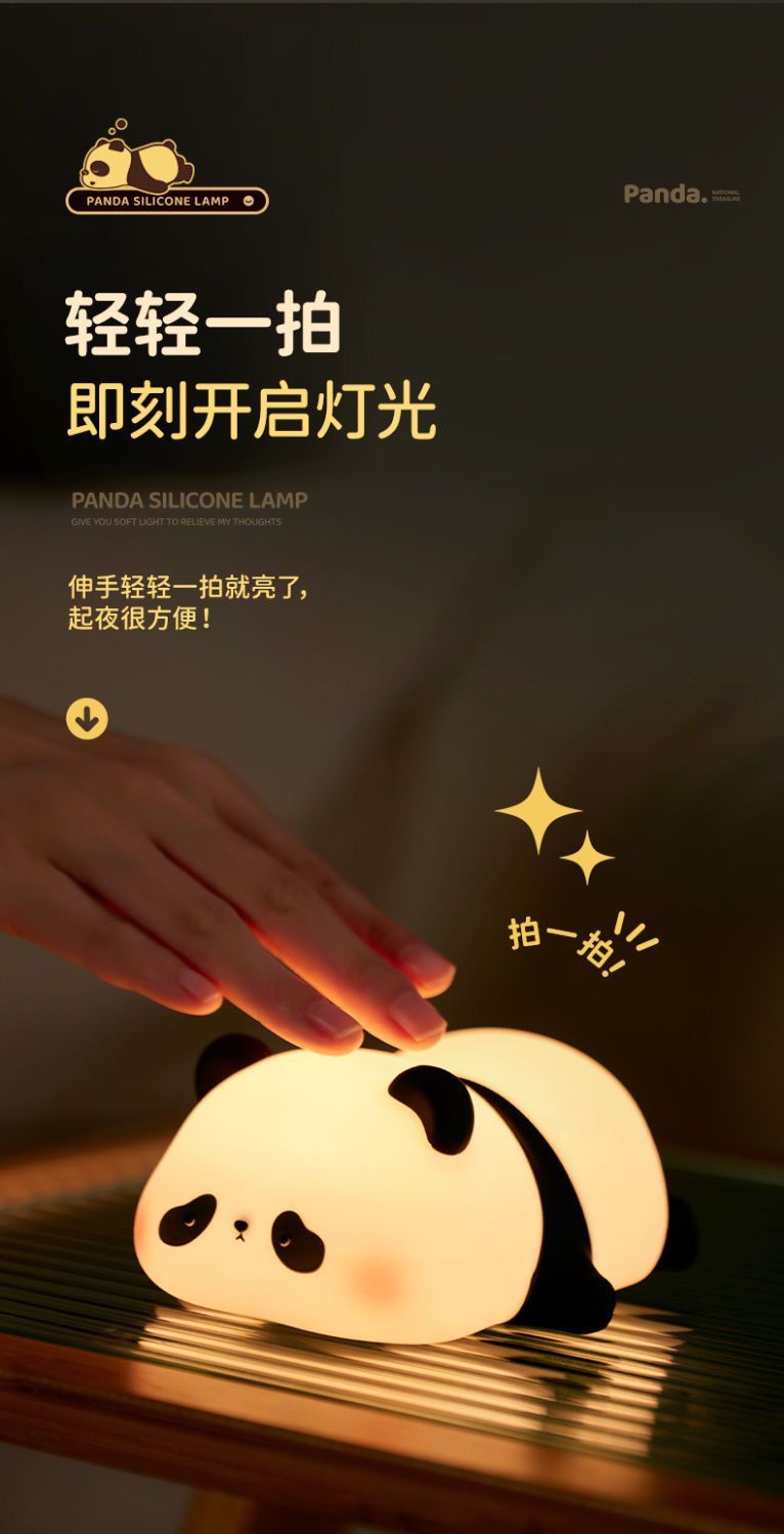 熊猫拍拍小夜灯睡眠硅胶喂奶儿童女生护眼床头卧室伴睡可爱