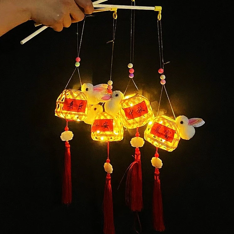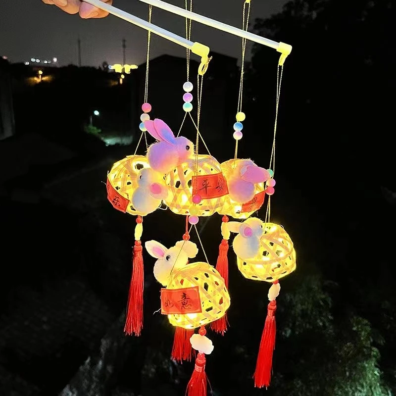 网红同款手工编织国风竹编兔子手提灯笼节日礼品摆地摊小商品批发