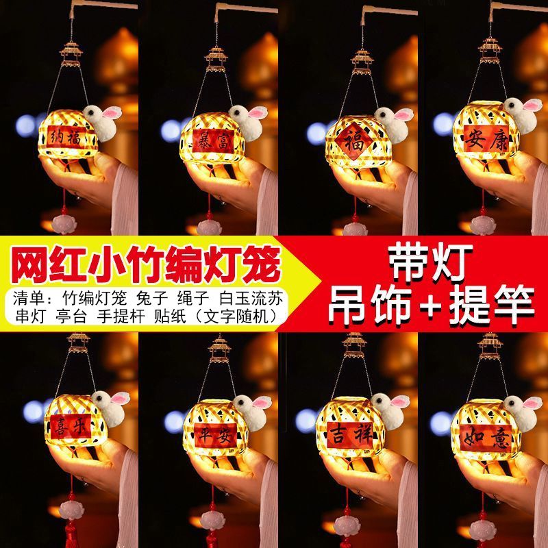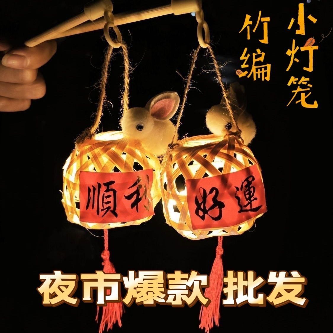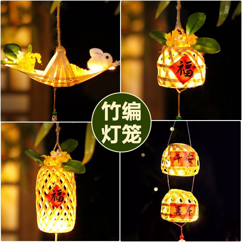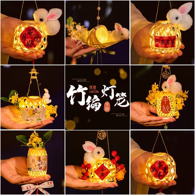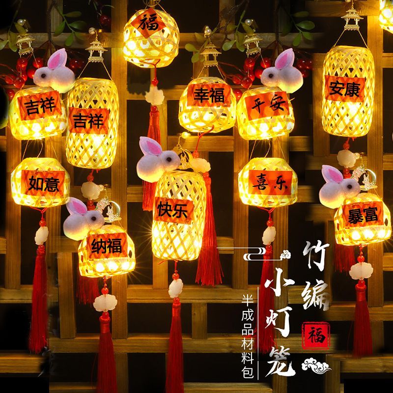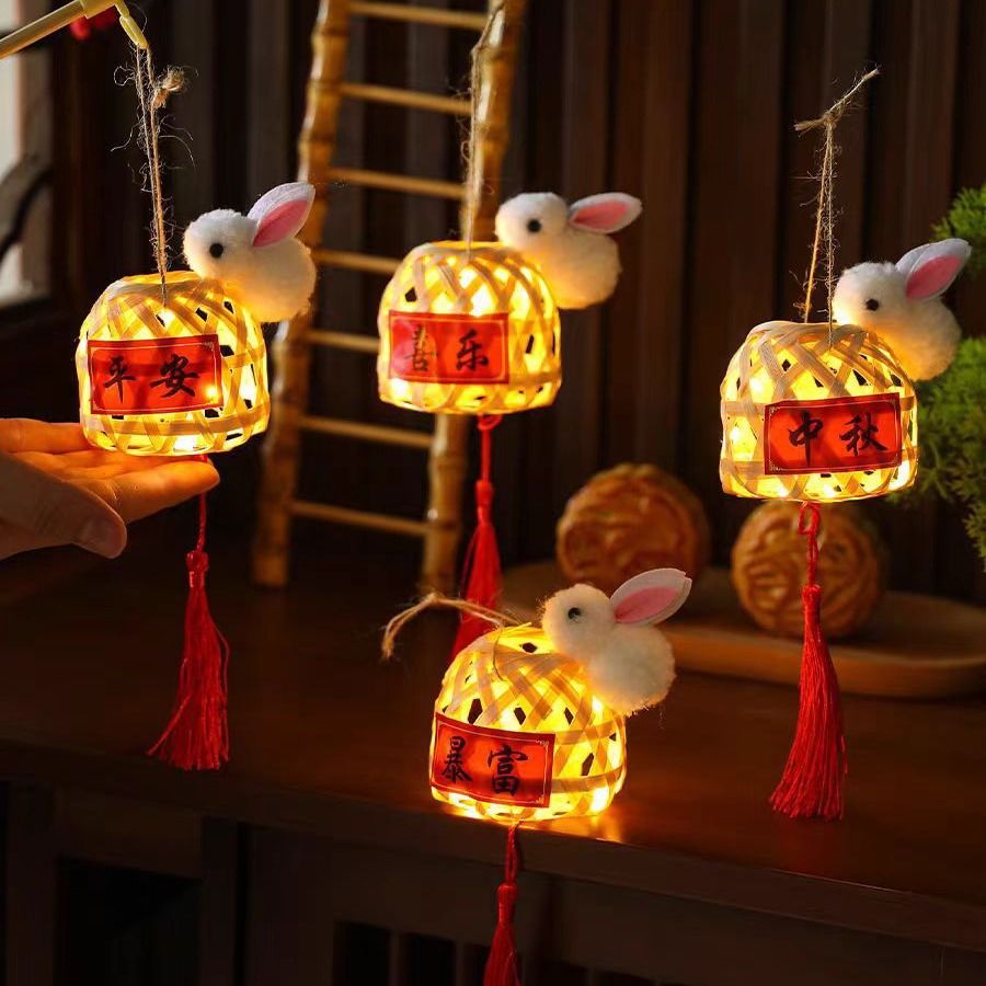 中秋节竹编小灯笼挂饰儿童手提发光兔子灯宫灯古风花灯diy材料包