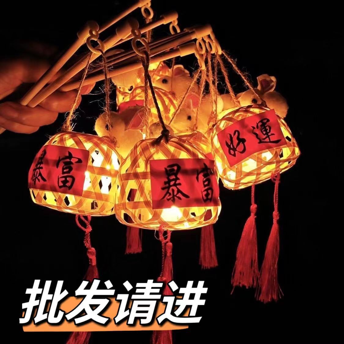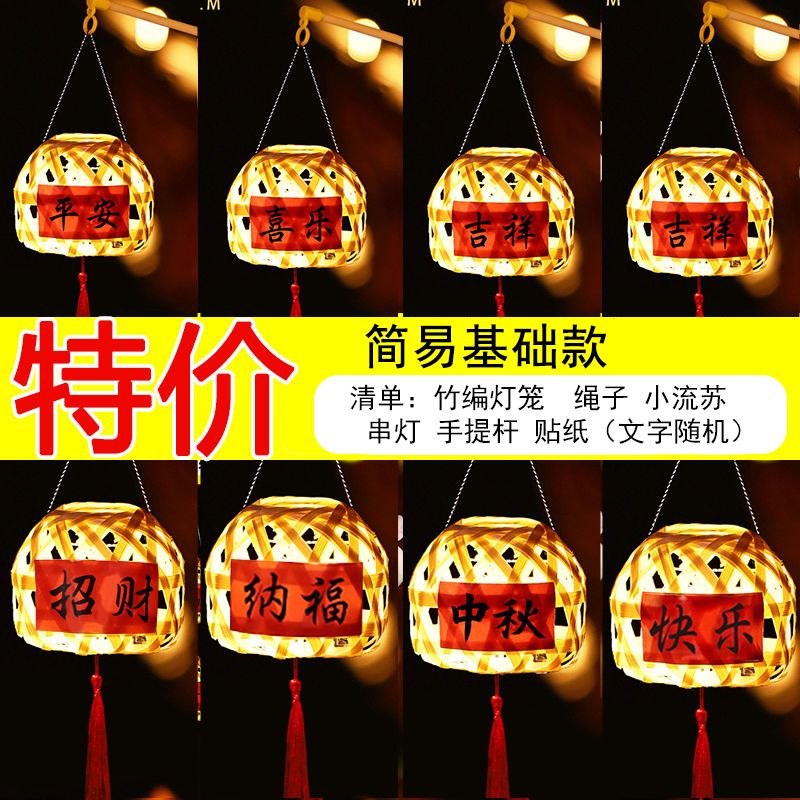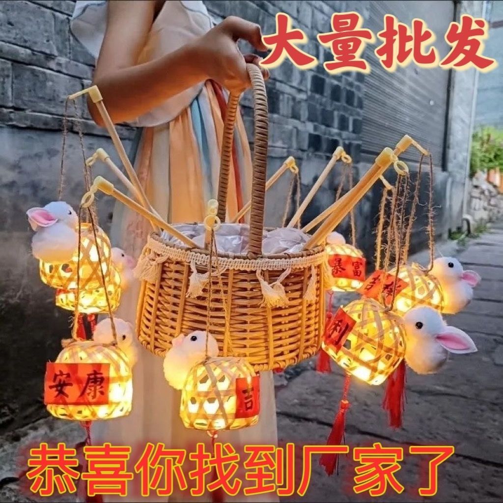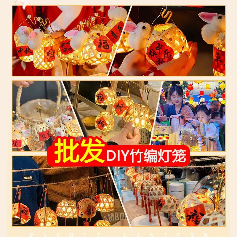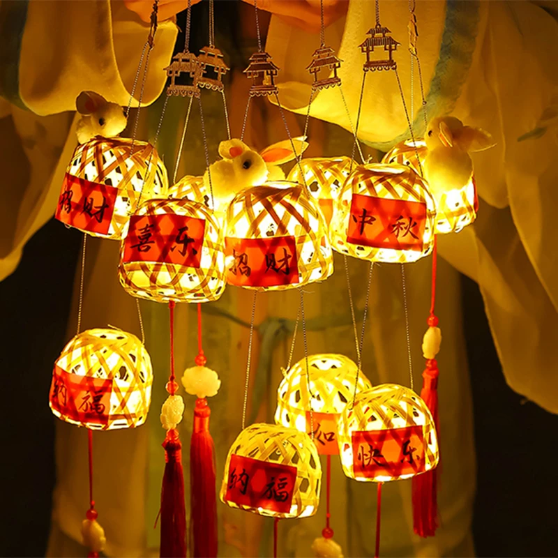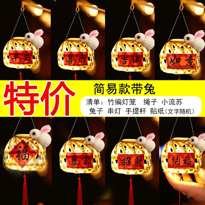 中秋节竹编小灯笼挂饰儿童手提发光兔子灯宫灯古风花灯diy材料包