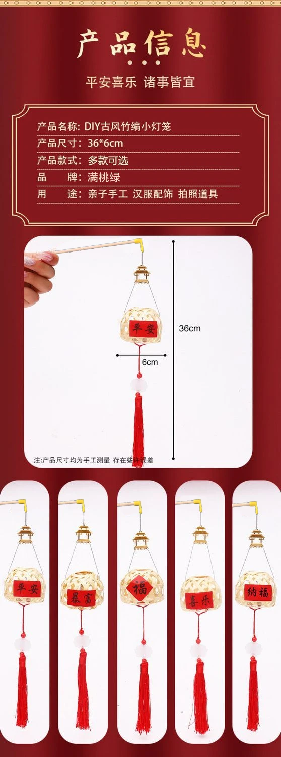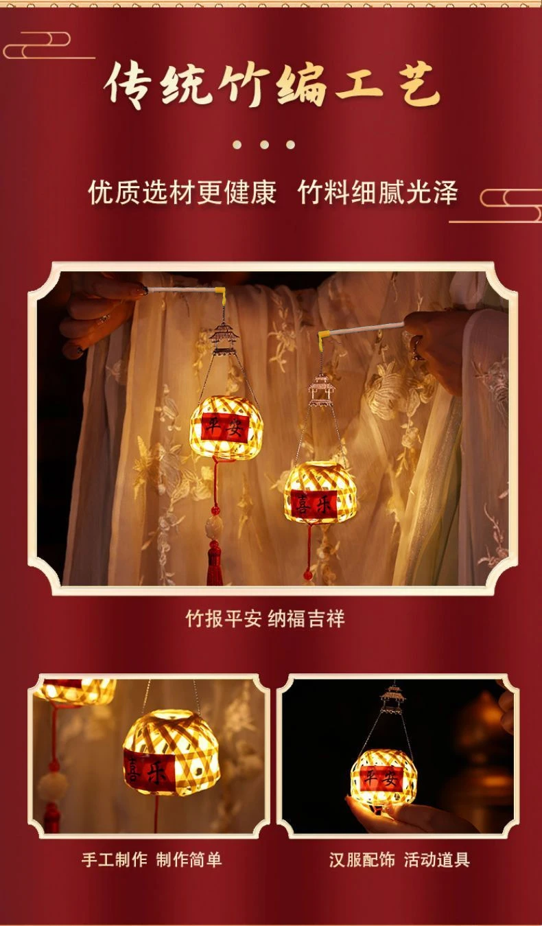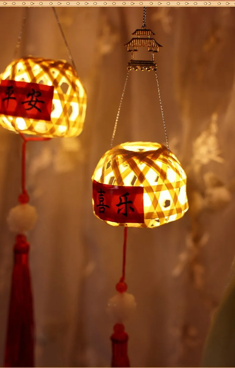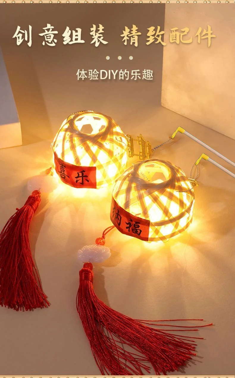 中秋节竹编小灯笼挂饰儿童手提发光兔子灯宫灯古风花灯diy材料包