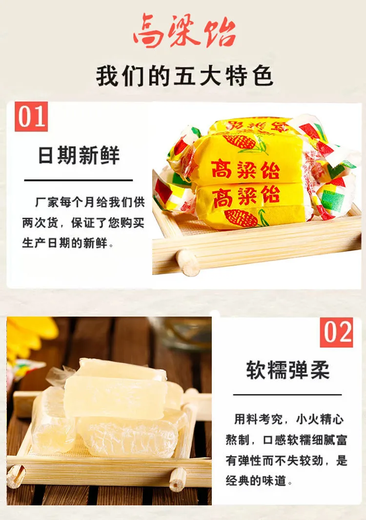 山东特产高粱饴软糖网红拉丝软糖怀旧多种口味水果糖批发100g-5斤