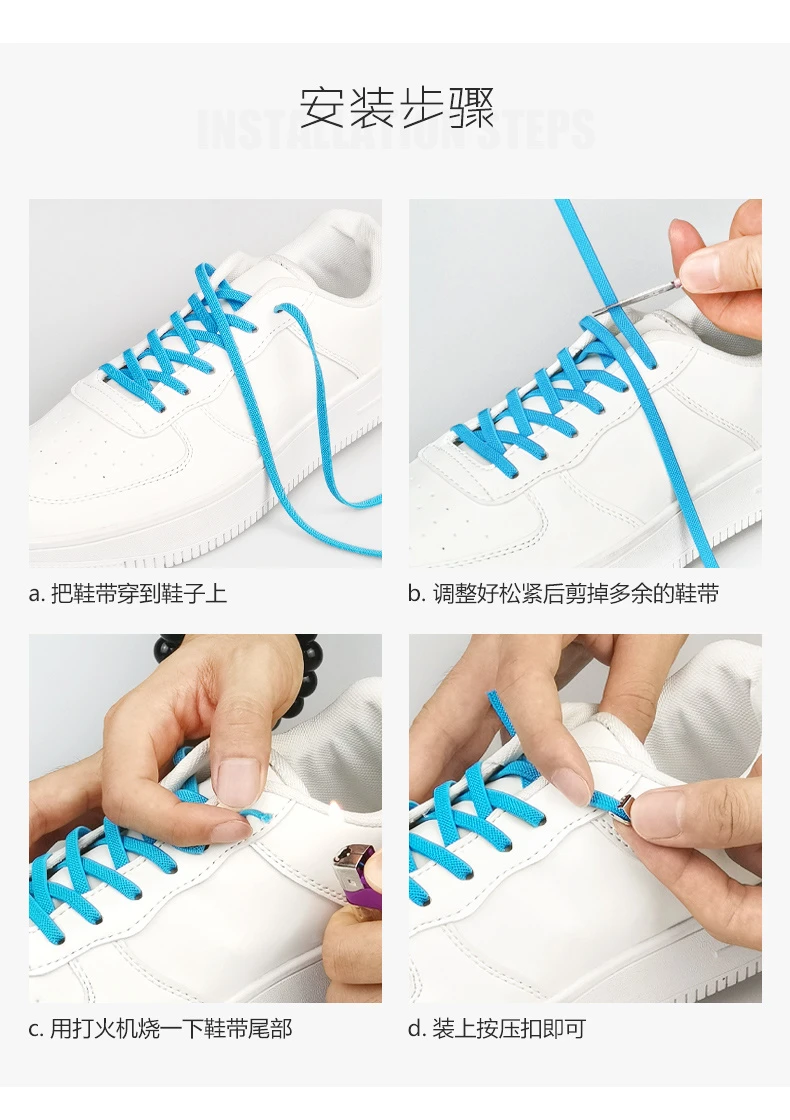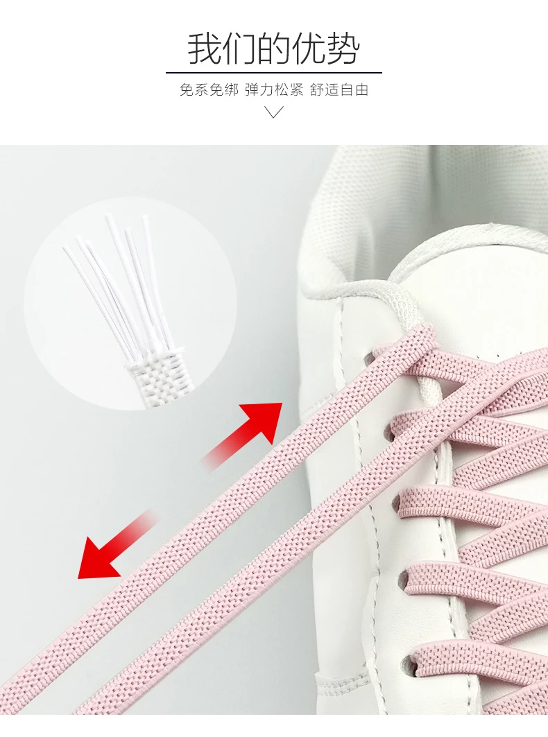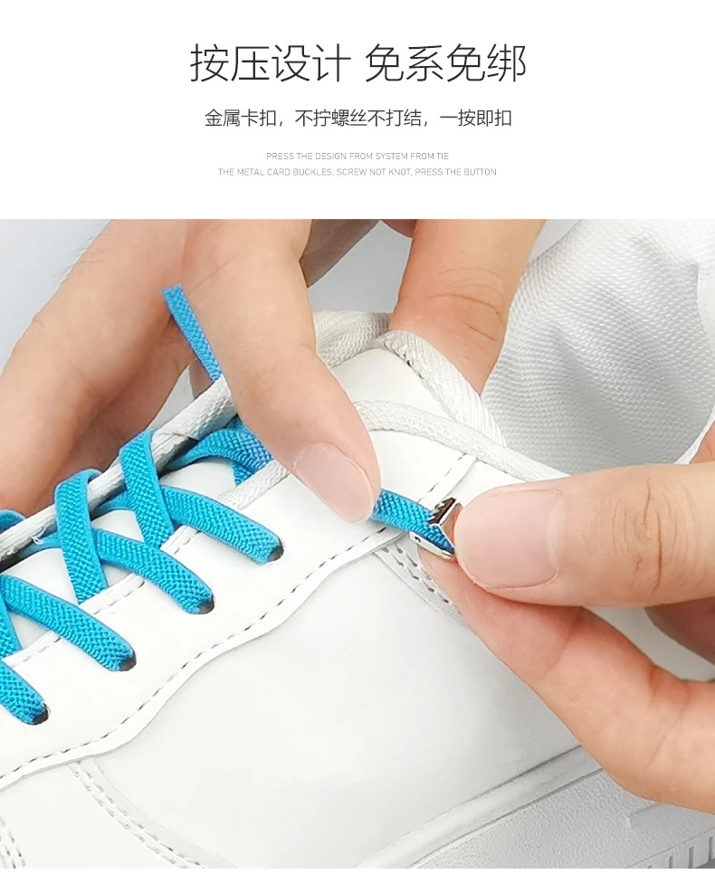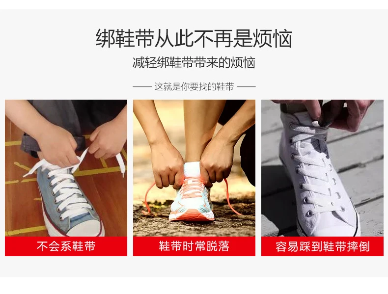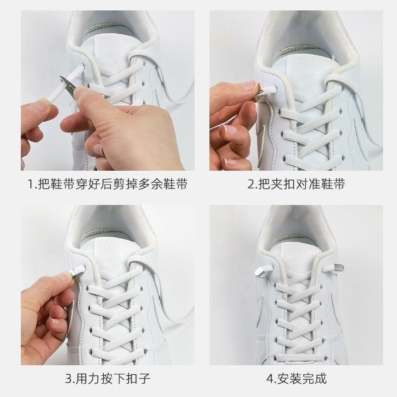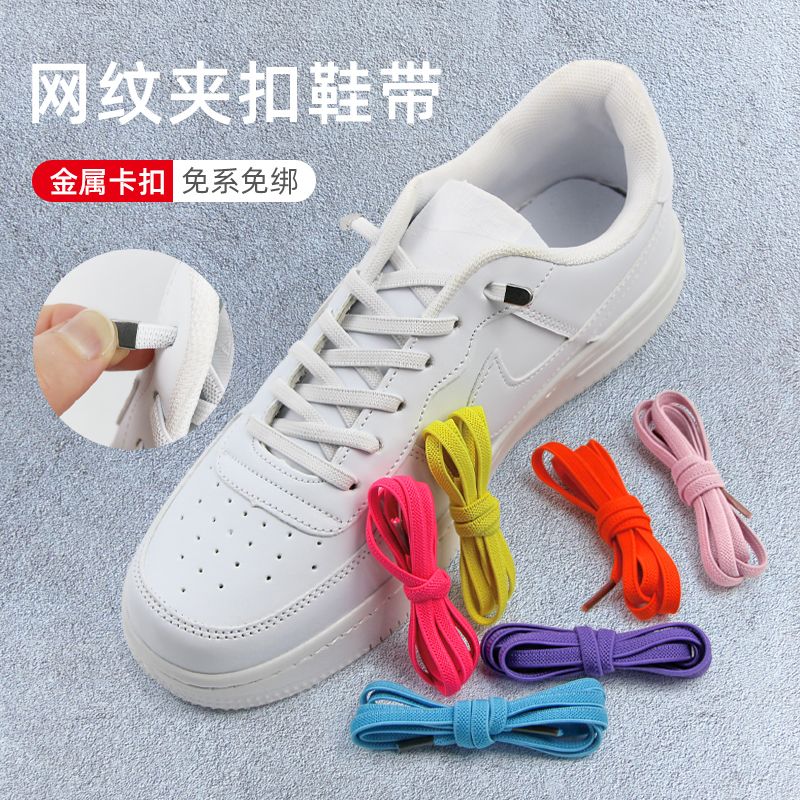 SOBU夹子小白鞋扣彩色运动松紧黑白色免绑男女扁款免系懒人鞋带绳