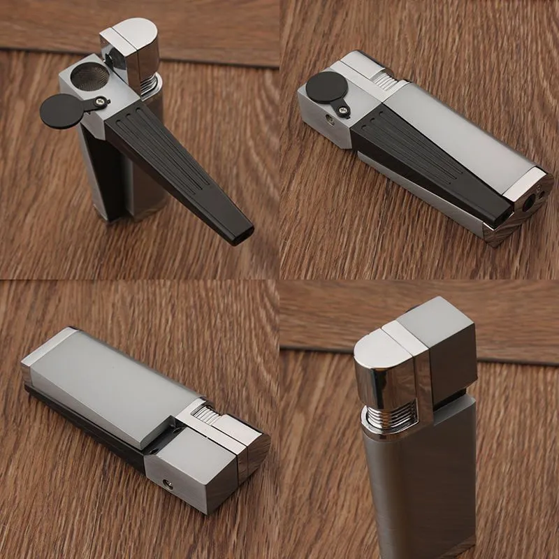 创意折叠烟斗一体式充气斜火明火打火机金属机身旅行便携烟斗火机