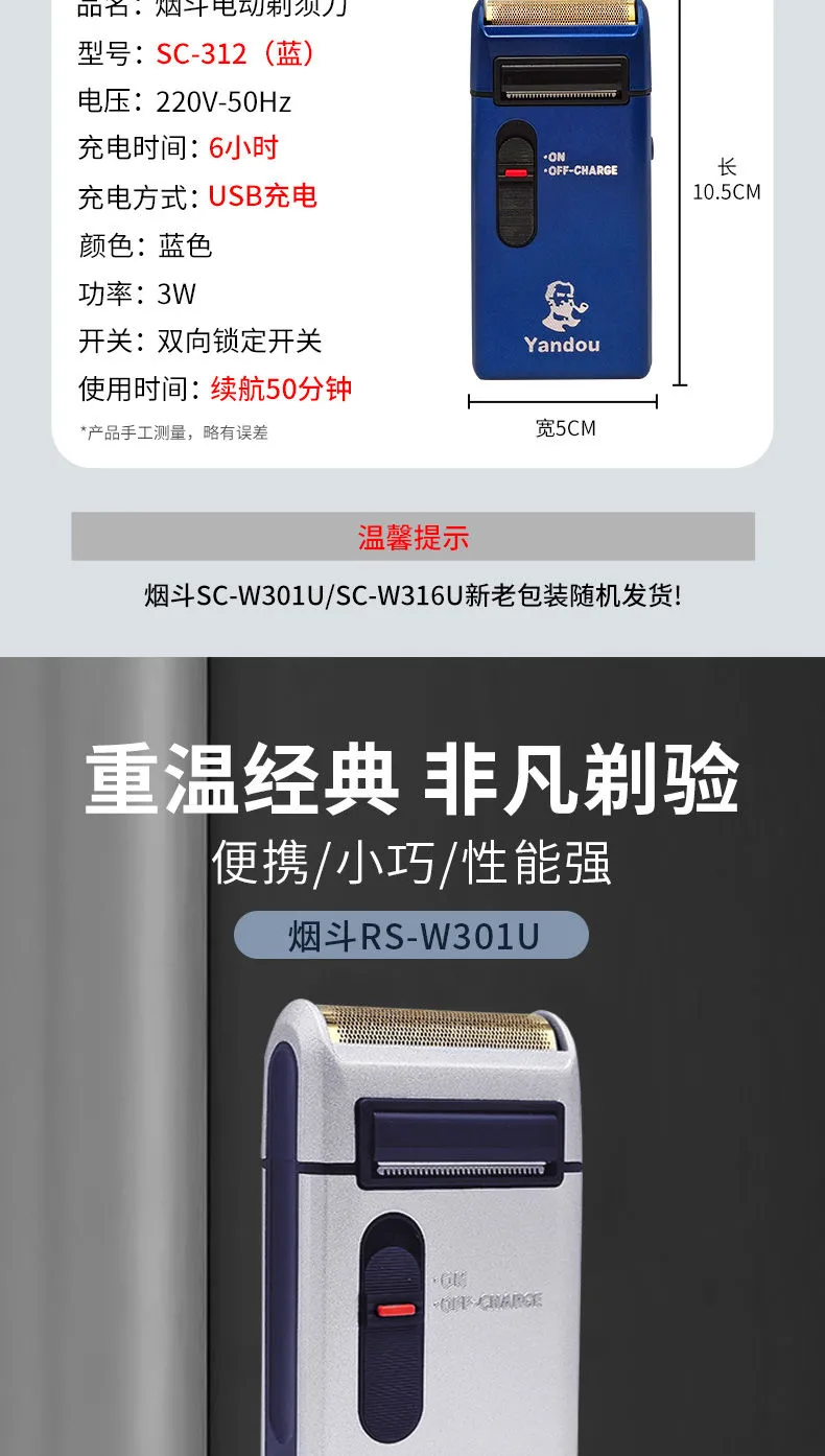 保修一年 正品 烟斗301老人头 充电式 电动剃须刀 刮胡刀 胡须刀