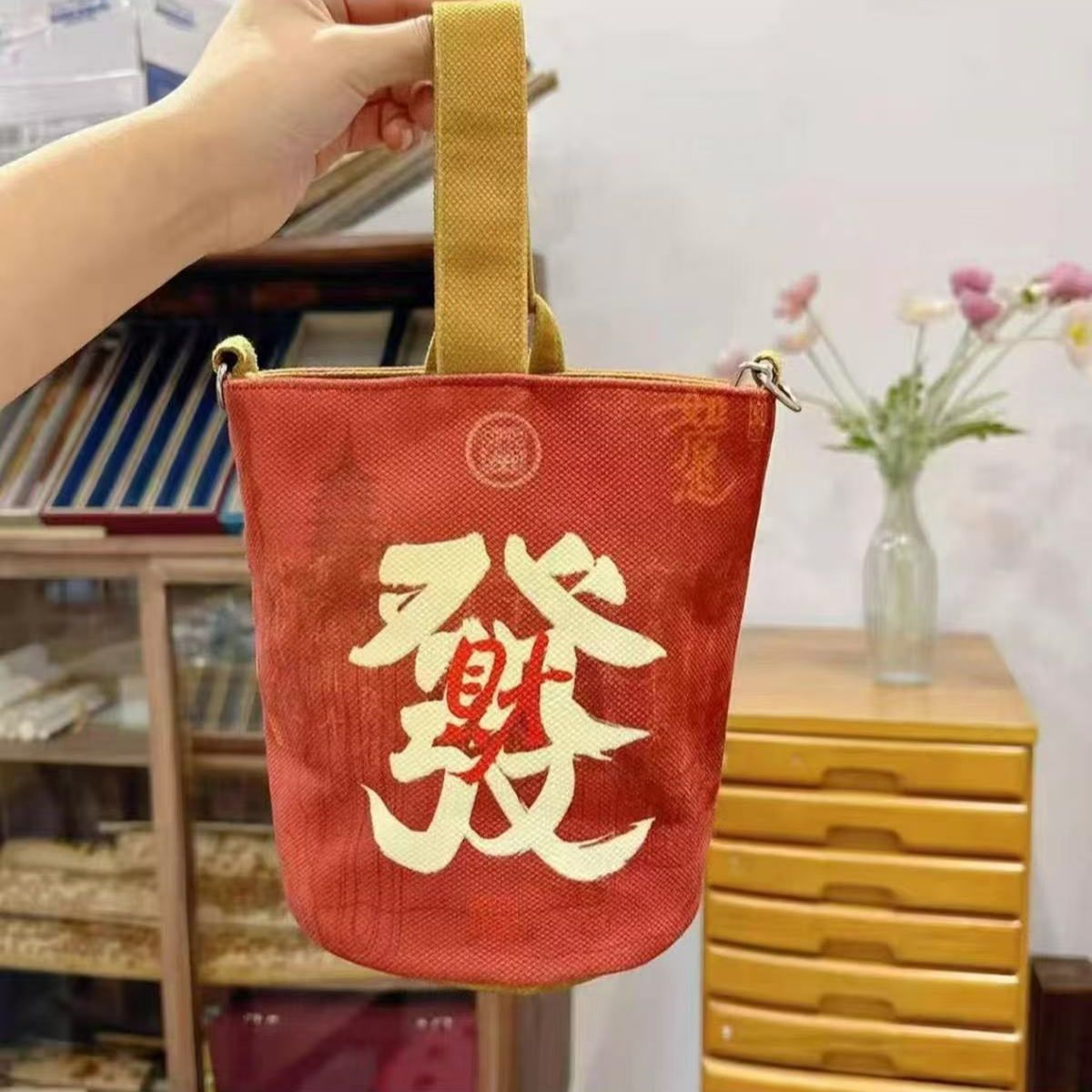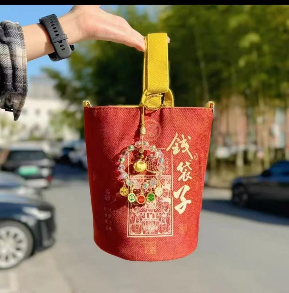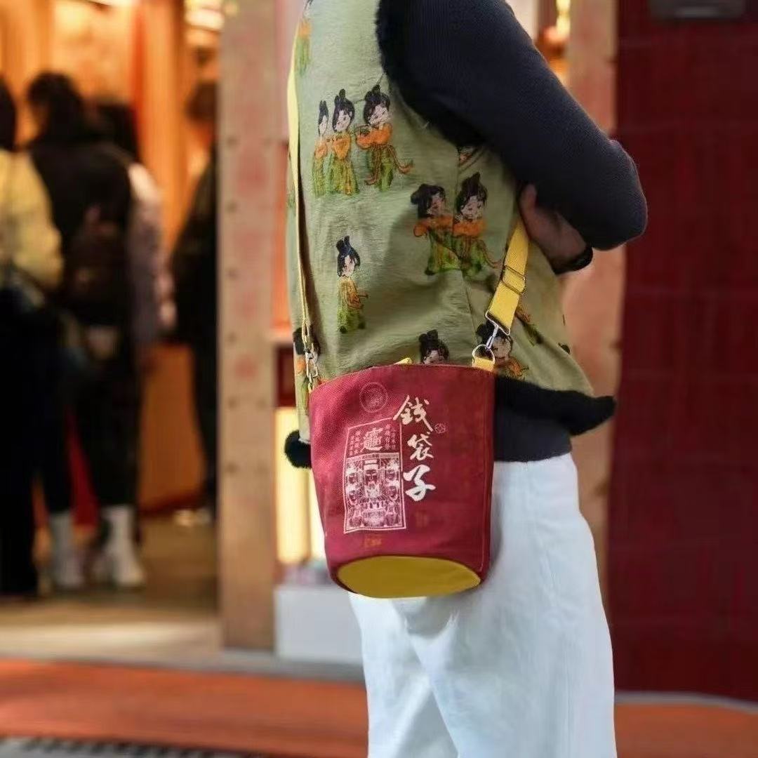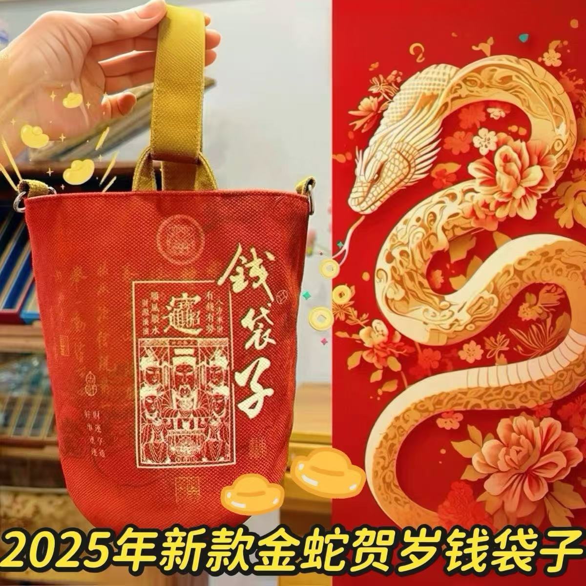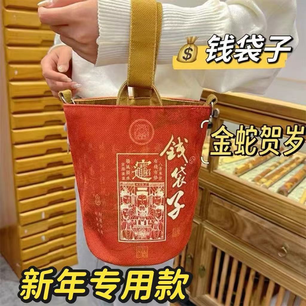2025蛇年新款春节手提水桶包秋冬景区暴富贺岁钱袋子发财包旅游包