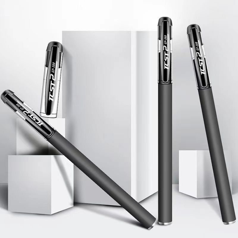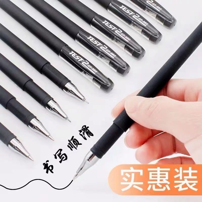 高颜值黑色中性笔0.38mm学生考试圆珠笔黑色办公签字笔学习碳素笔