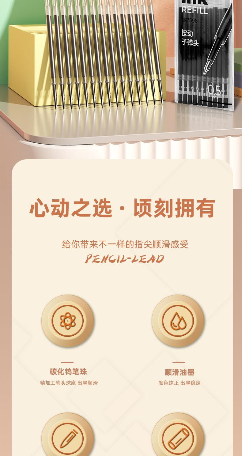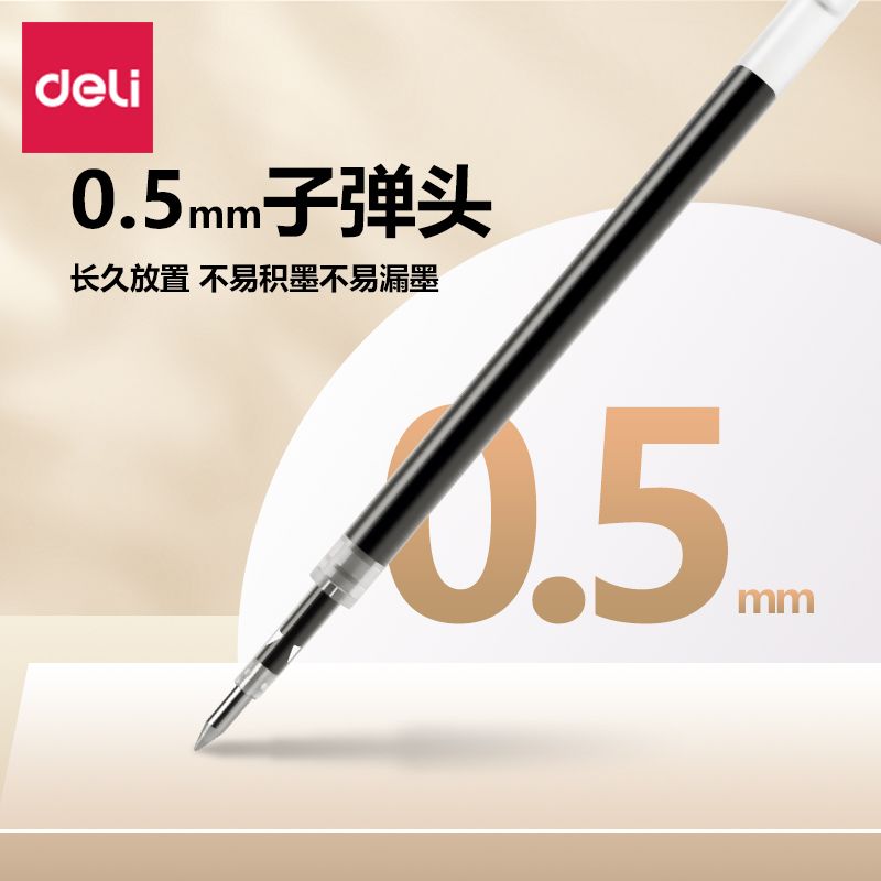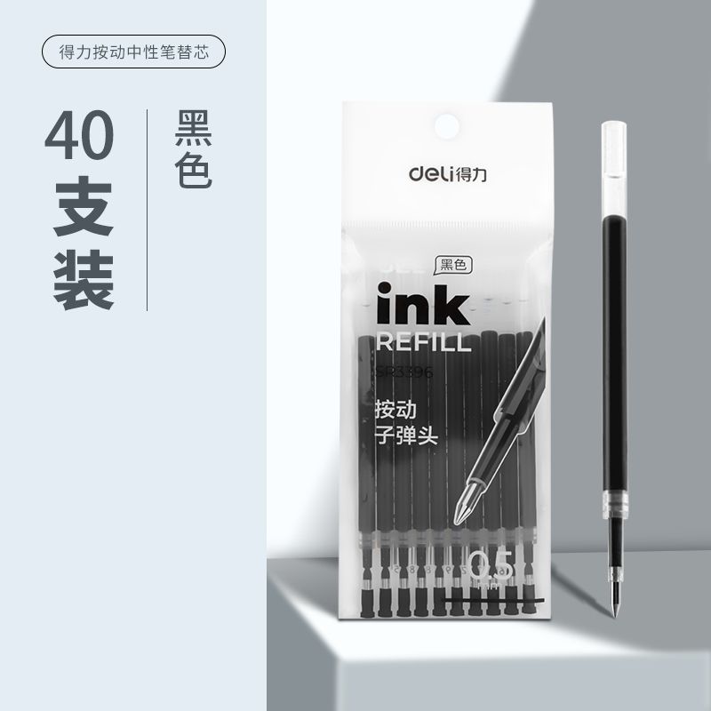 得力按动笔芯0.5mm子弹头按动笔中性笔替芯黑笔按压式速干红笔芯