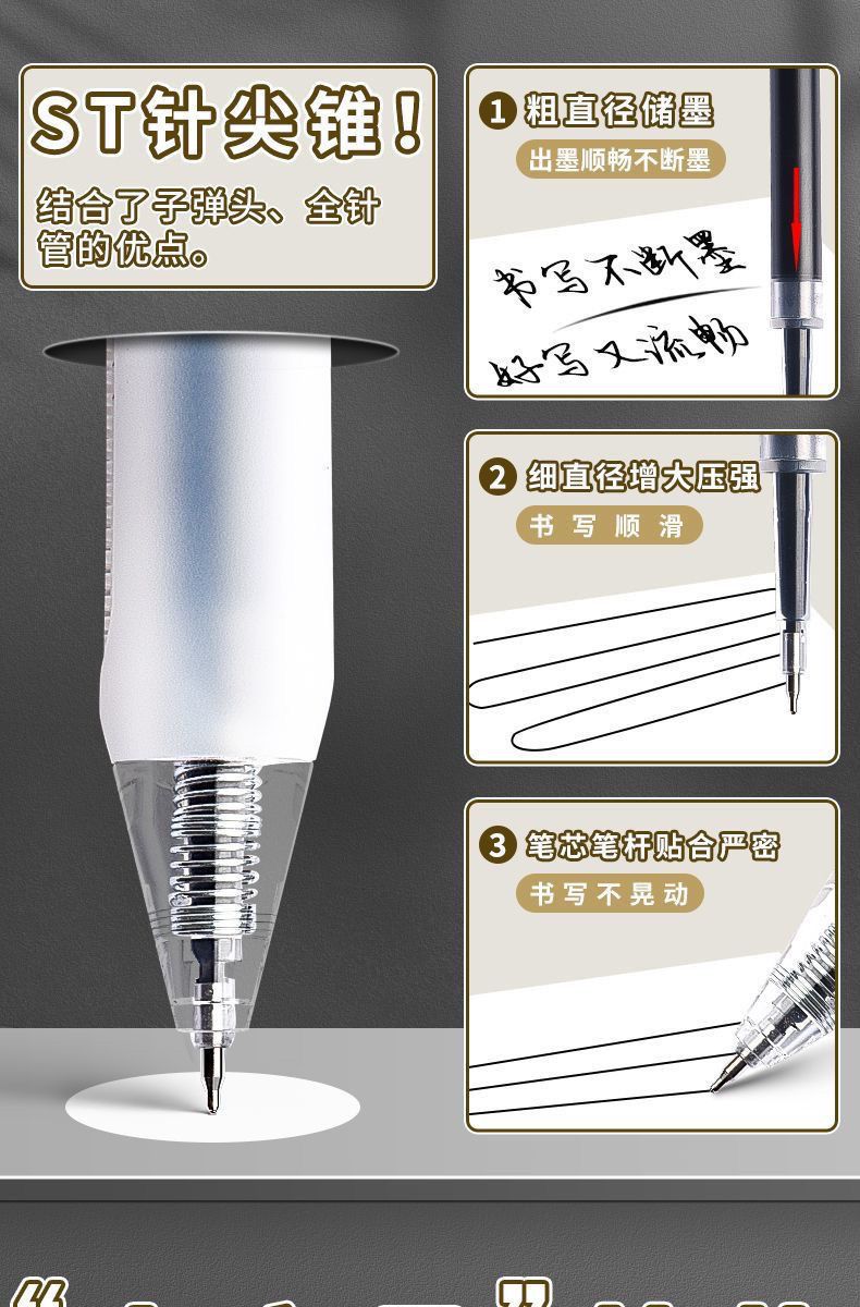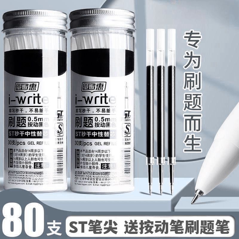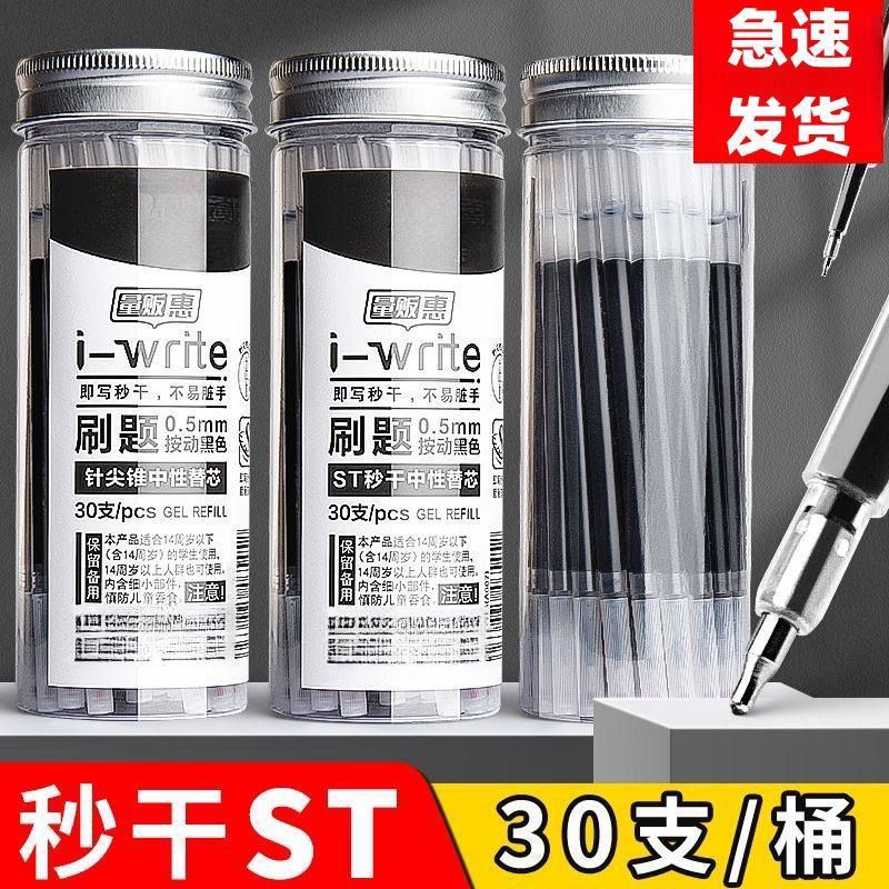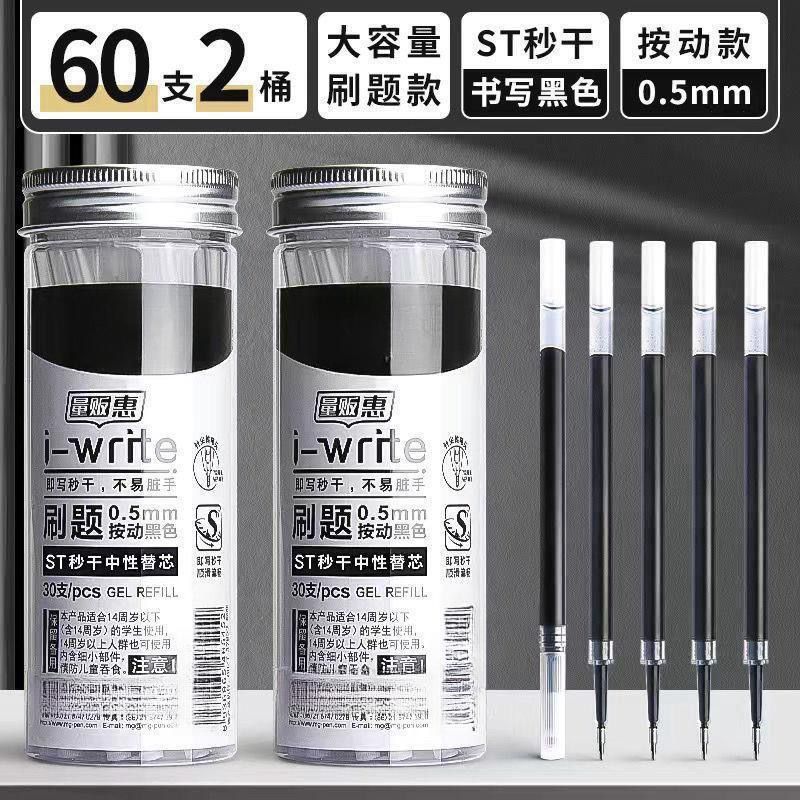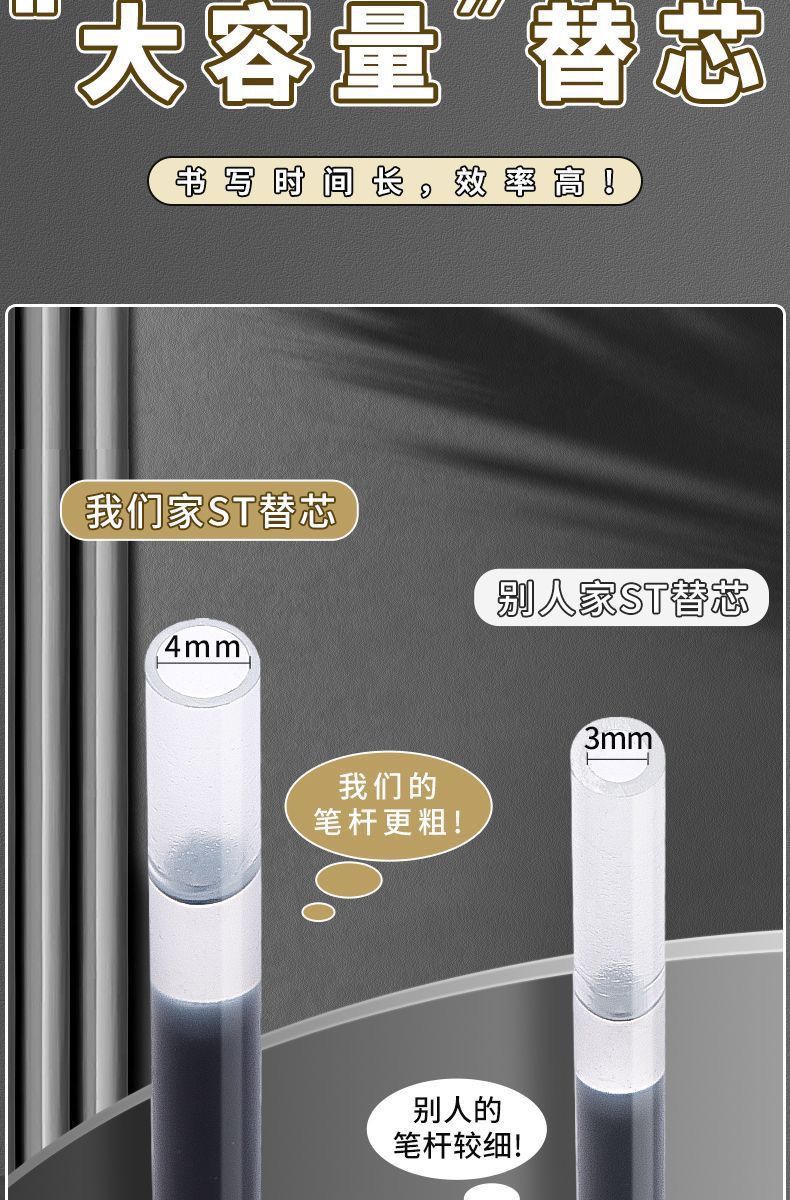 晨光得力按动笔适用笔芯ST头按动笔芯速干中性笔芯黑色0.5笔芯