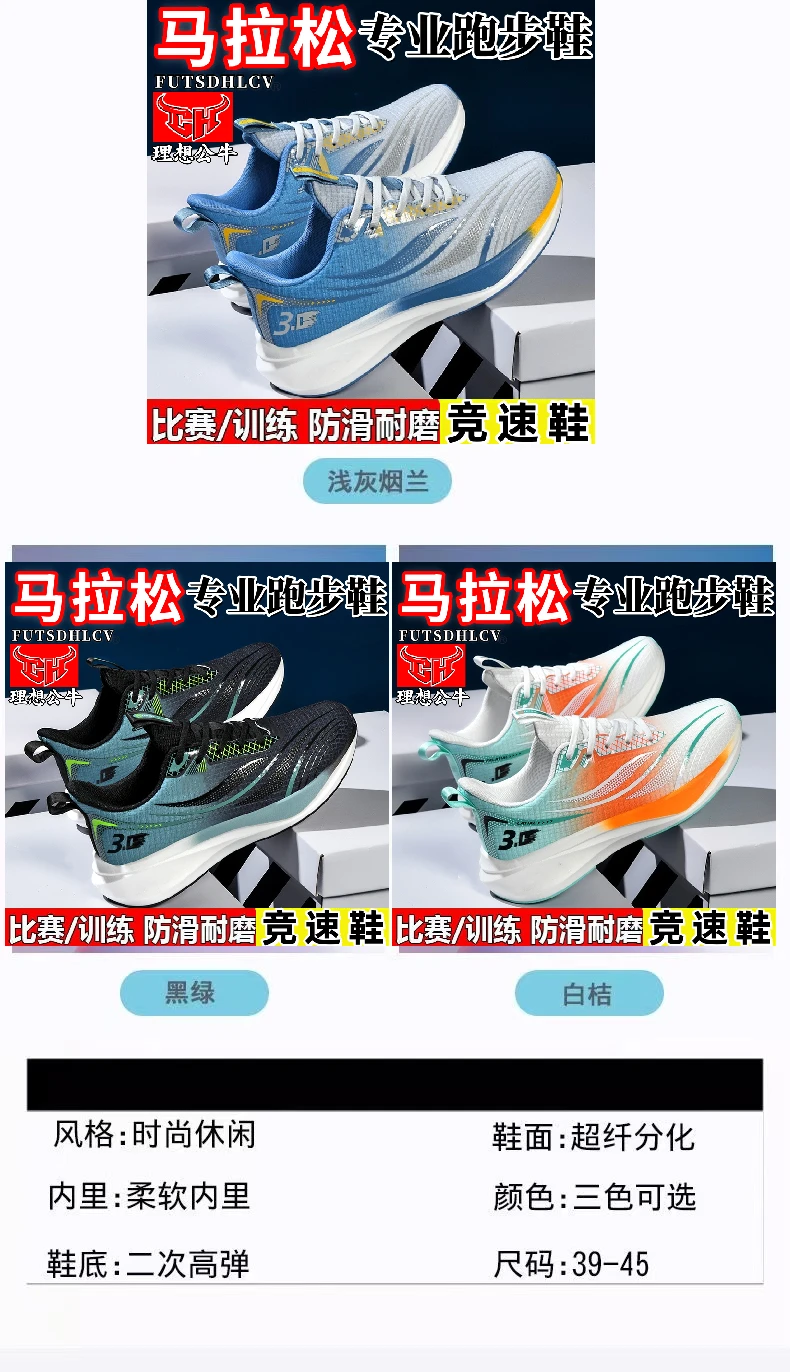理想公牛马拉松跑步鞋男透气公路减震轻便防滑学生运动鞋男款跑鞋