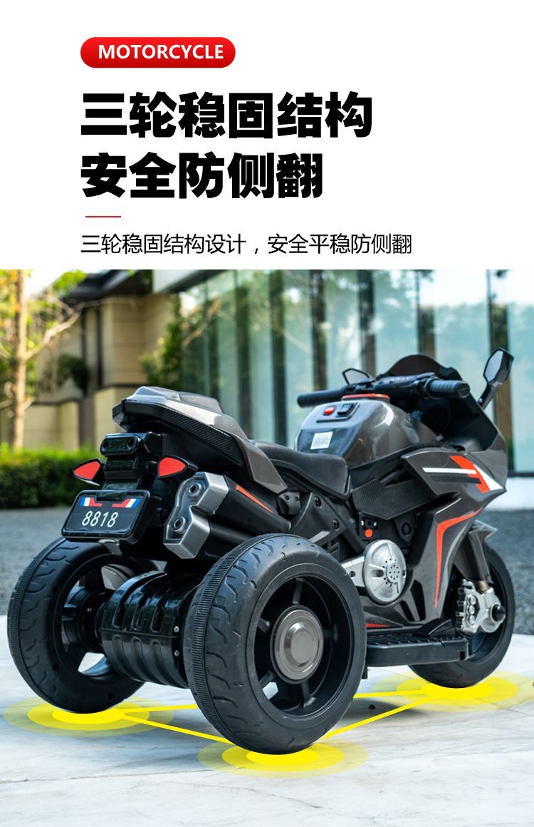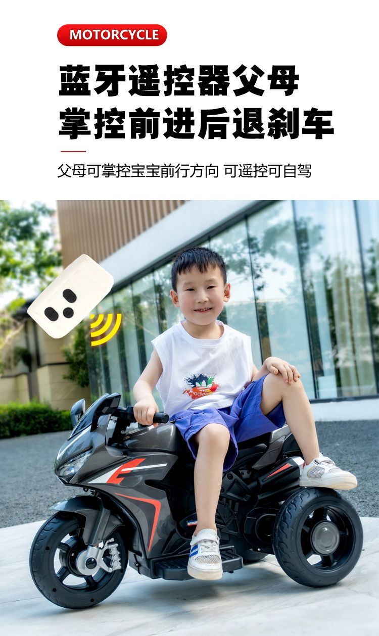 儿童电动摩托车男孩女孩充电三轮车宝宝小孩玩具车可坐遥控电瓶车