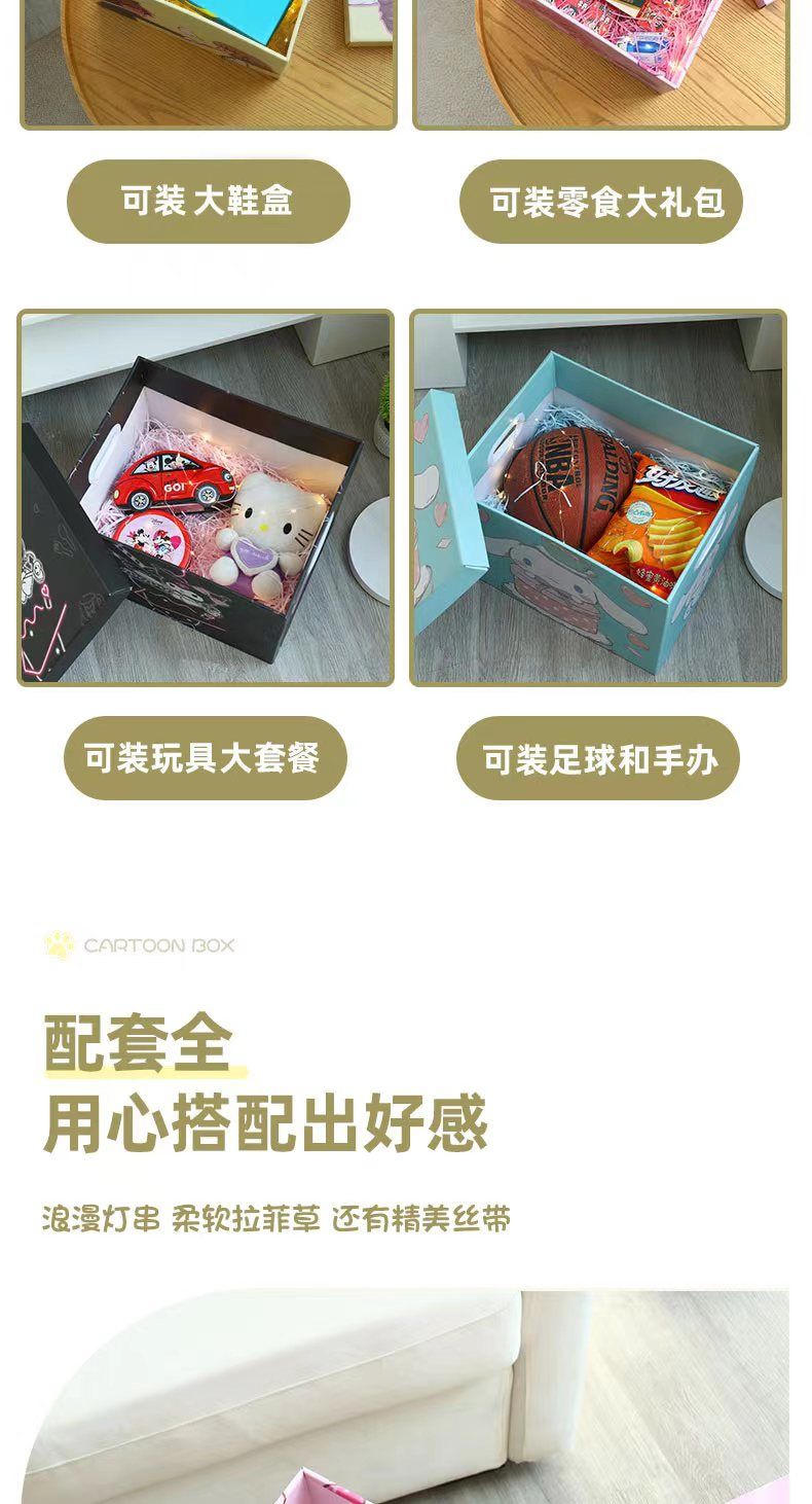 超萌可爱精致大号圣诞拉菲草收纳盒卡通闺蜜收纳盒加厚高颜值礼盒