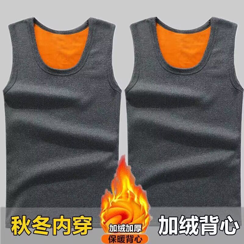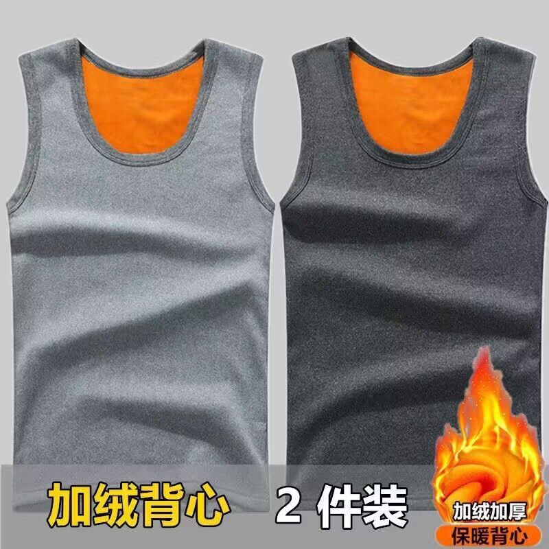 单/两件爸爸保暖背心冬季修身加绒加厚男士马甲无袖发热坎肩无痕