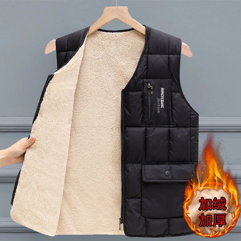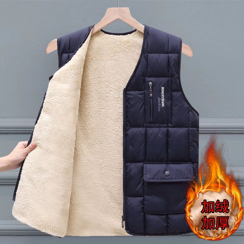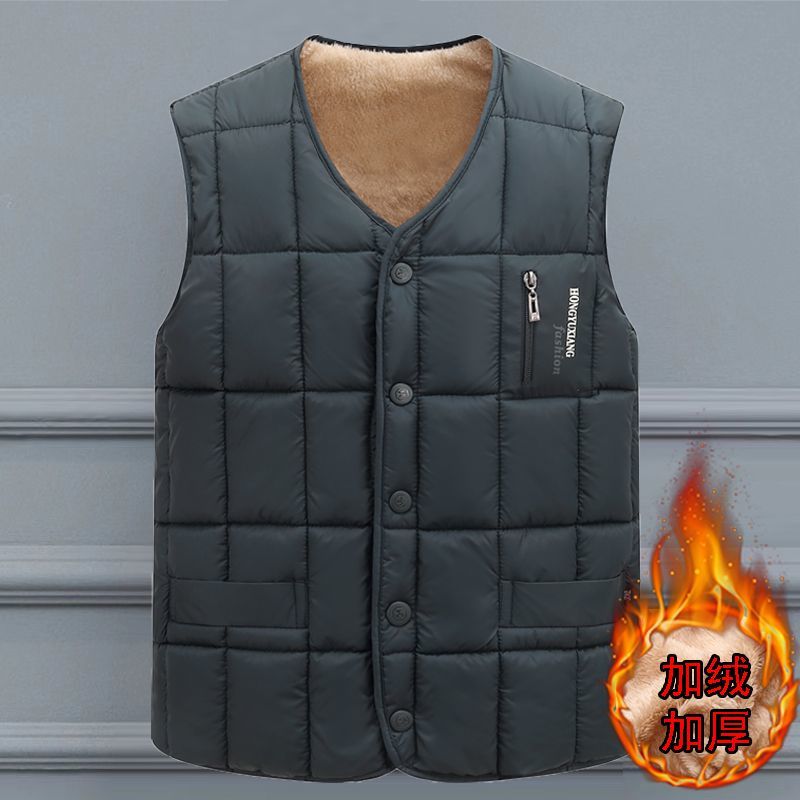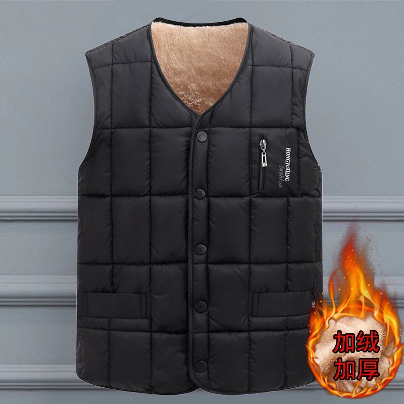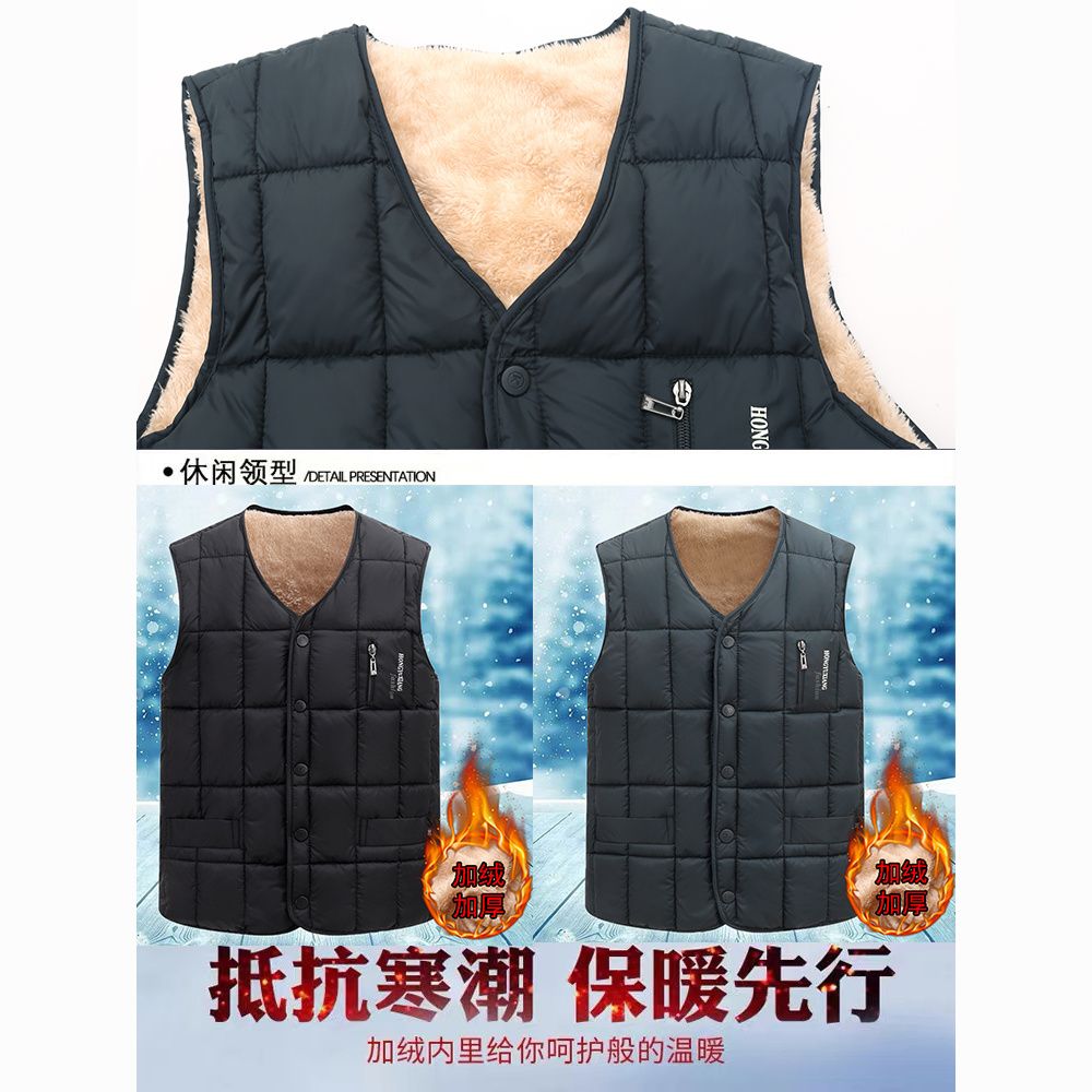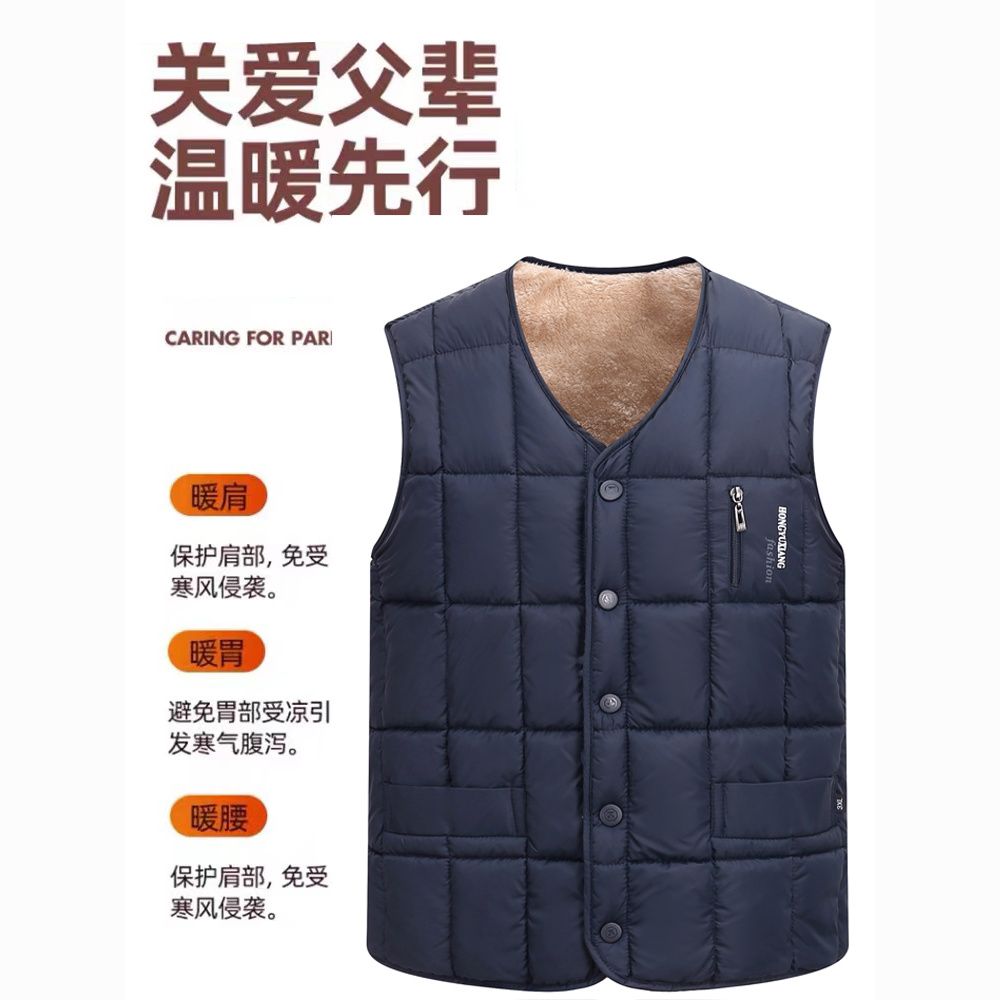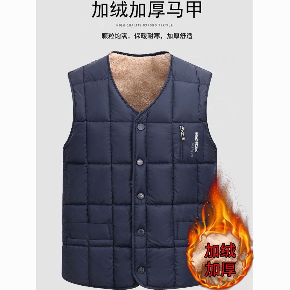 2024秋冬羽绒棉男士马甲保暖老人马夹v领爸爸装加绒加厚大码坎肩
