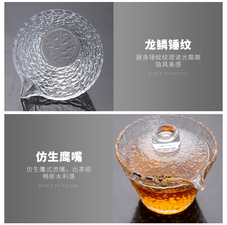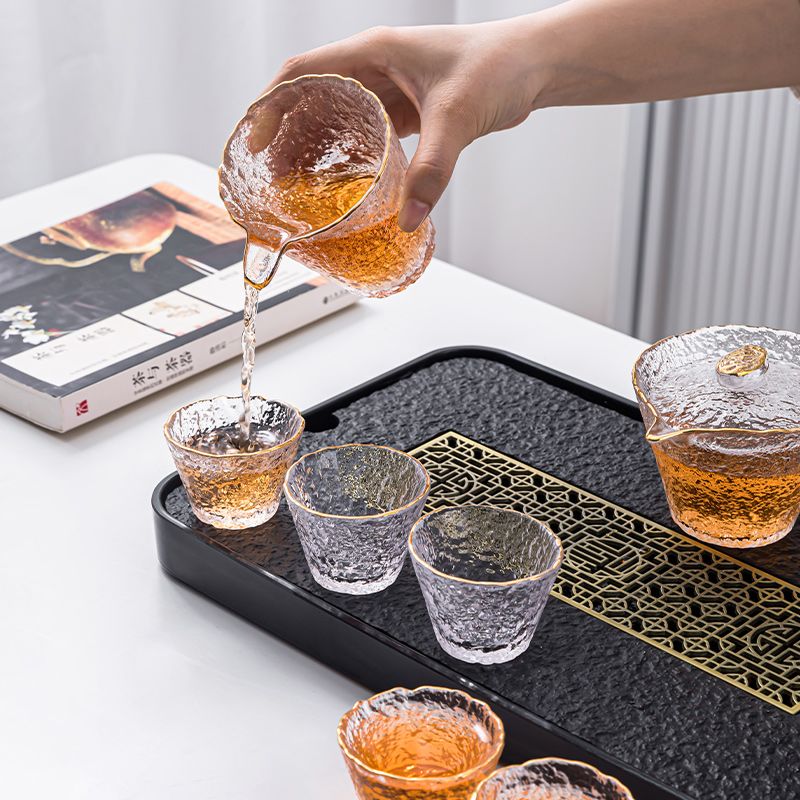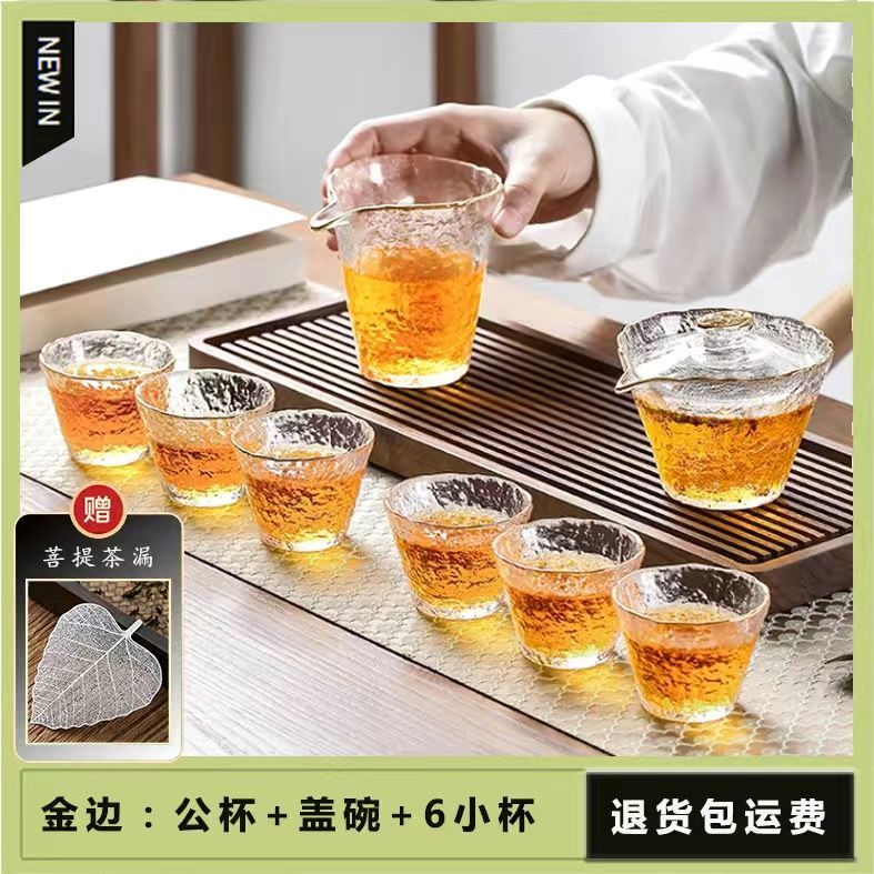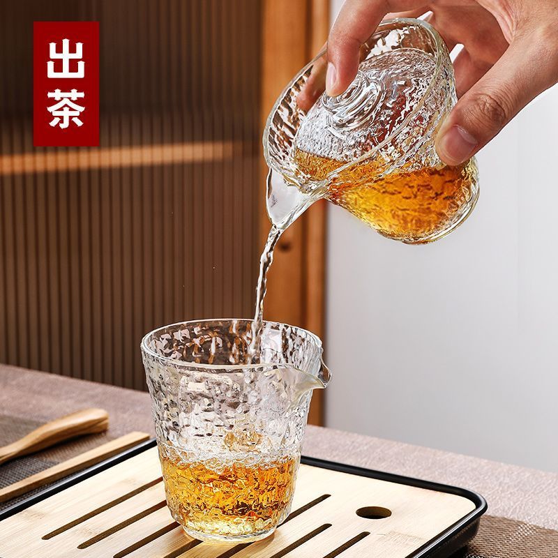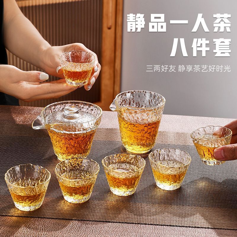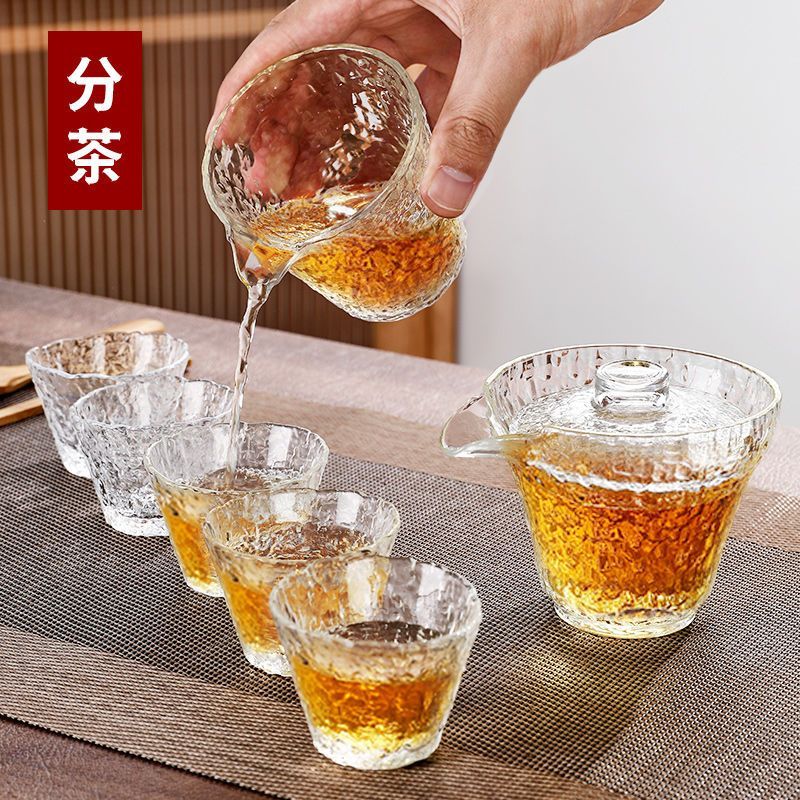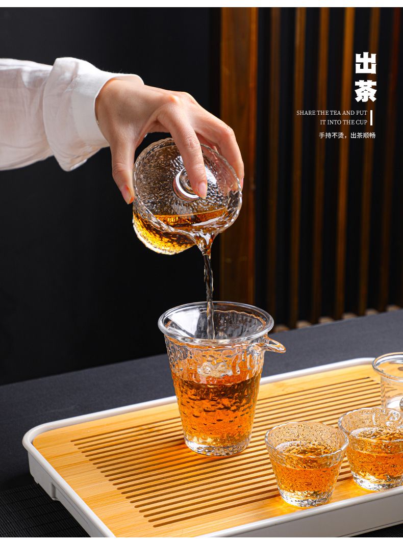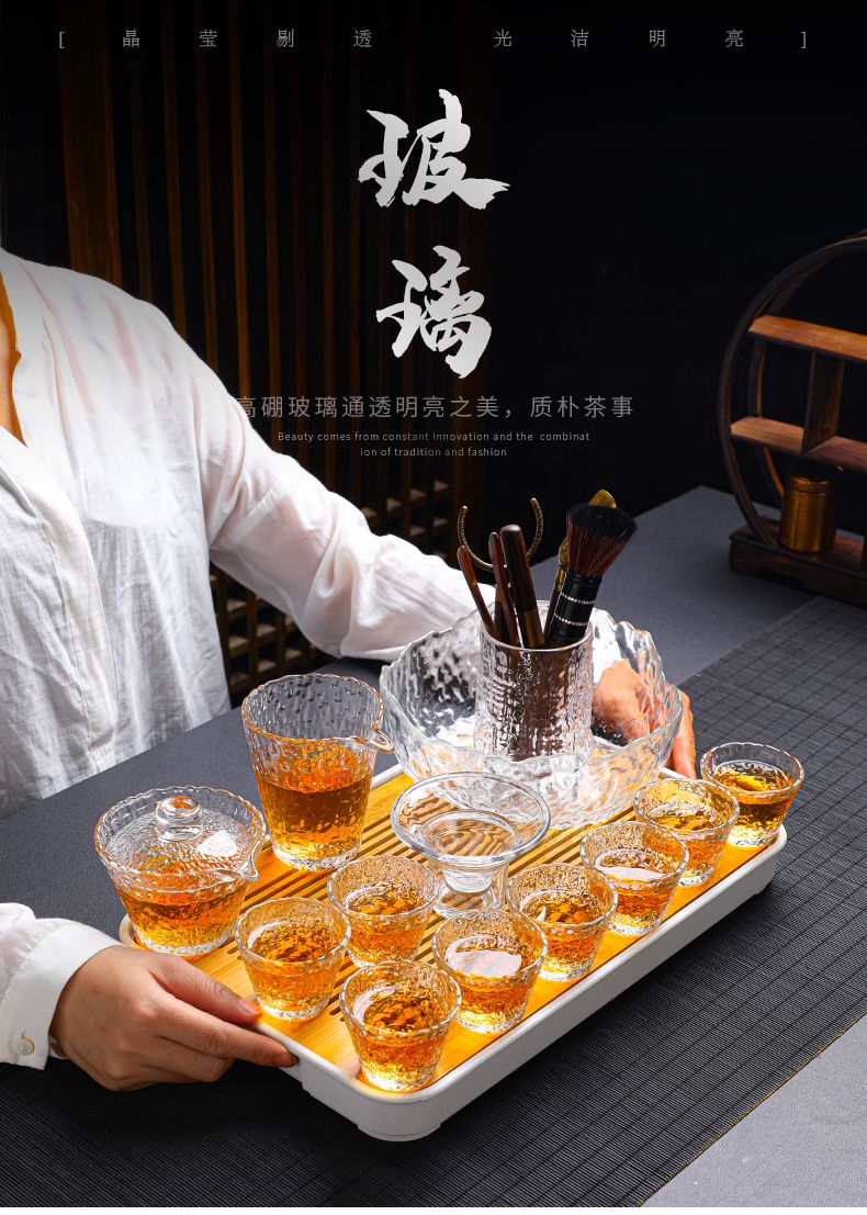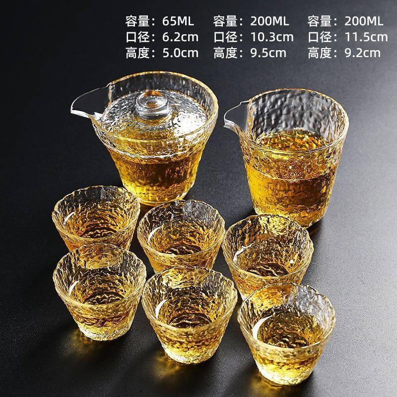 中国风整套耐高温玻璃茶具轻奢家用锤目纹功夫茶道杯茶碗茶具套装