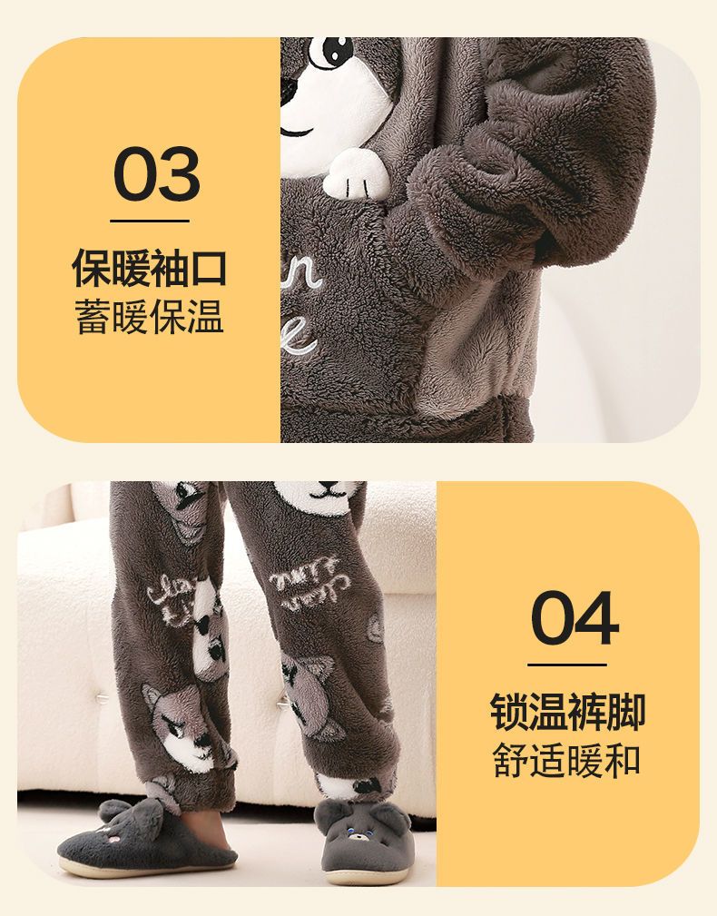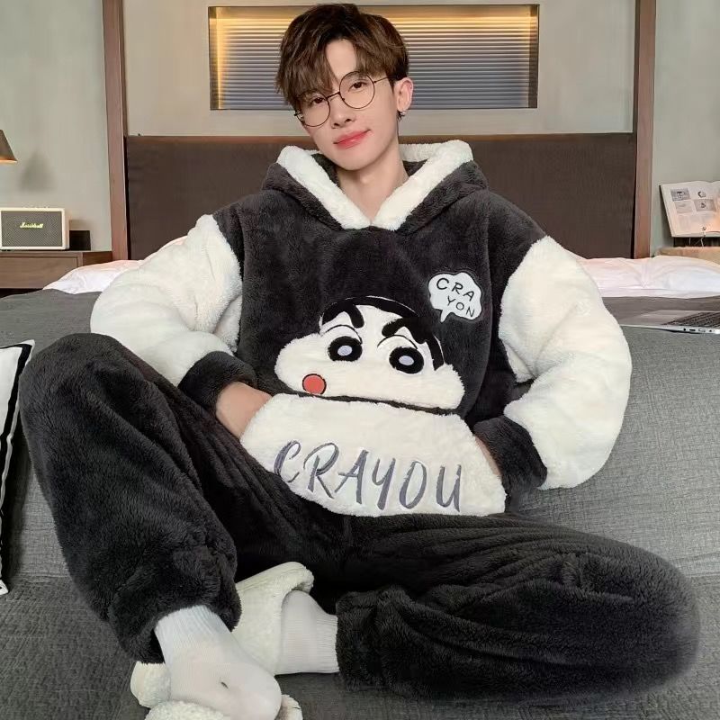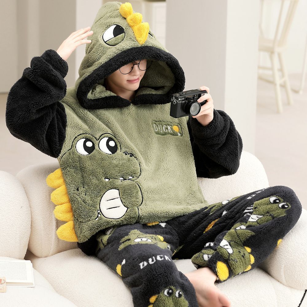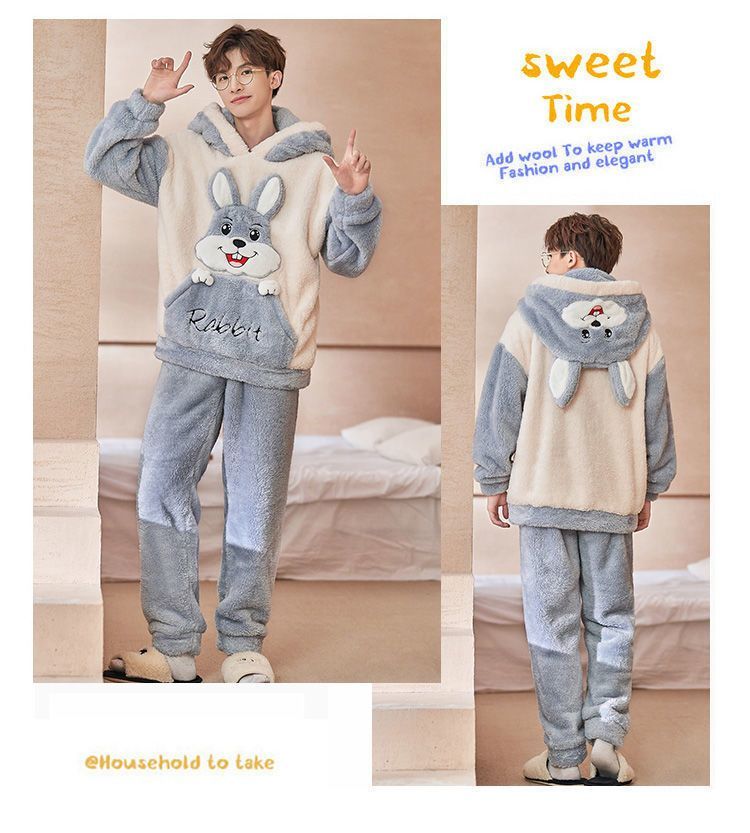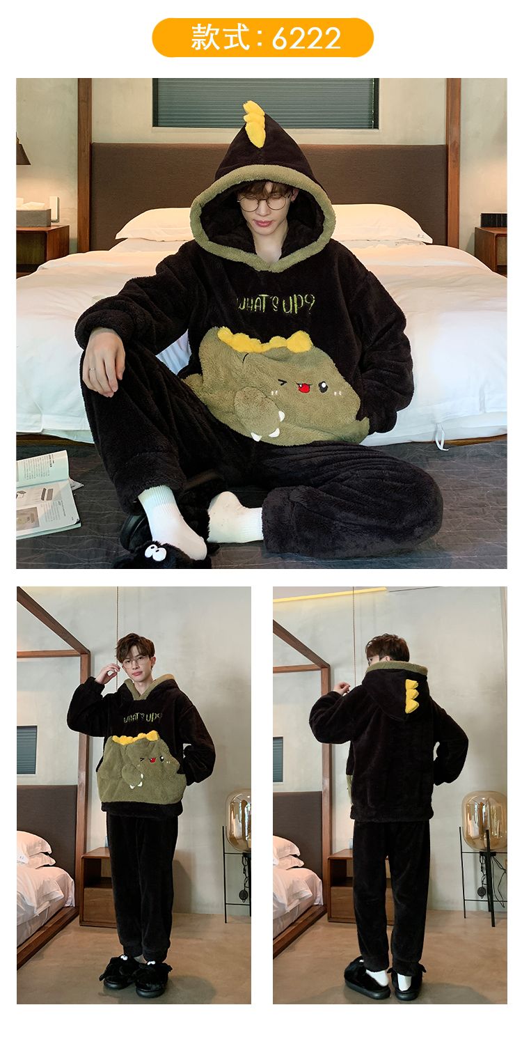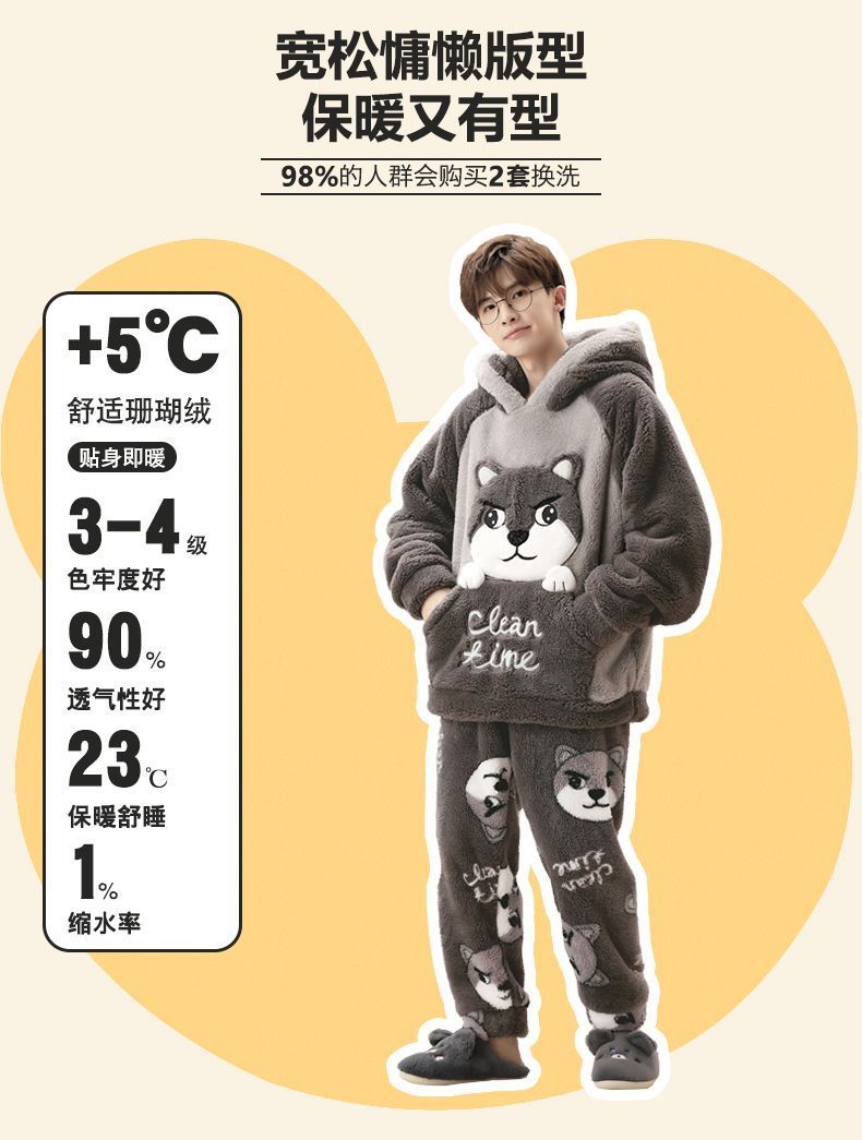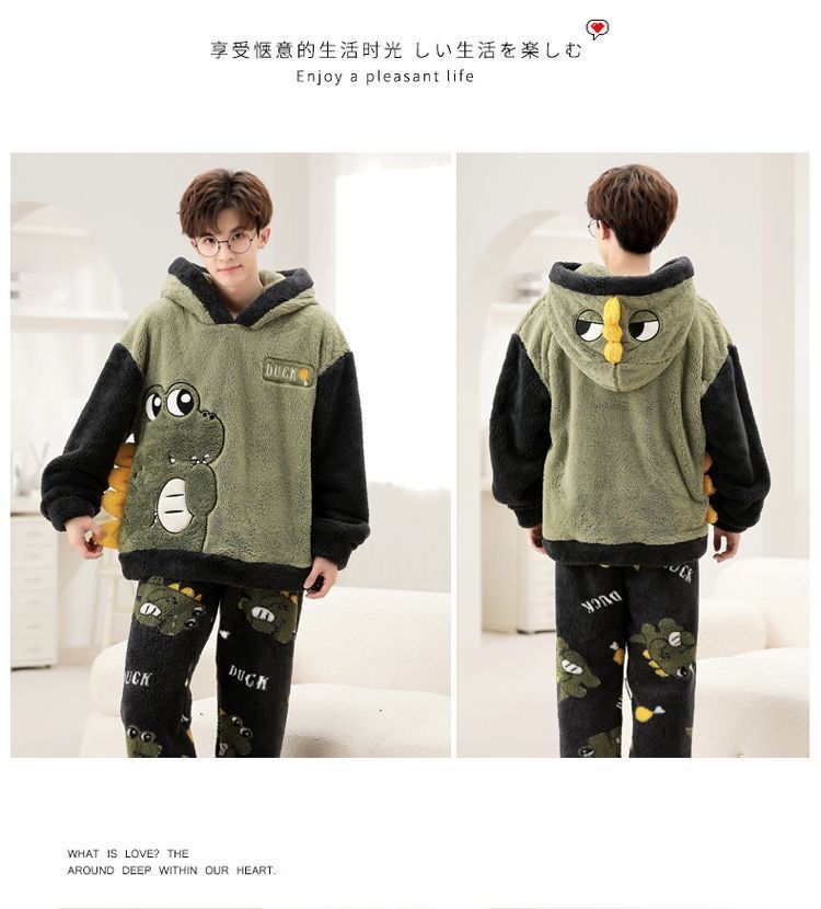 NASA男士睡衣秋冬款加厚加绒珊瑚绒学生卡通大码法兰绒家居服套装