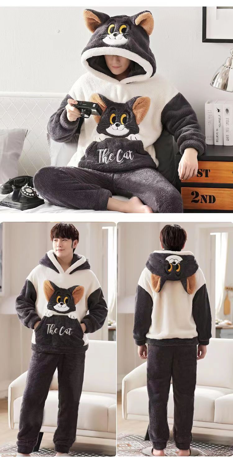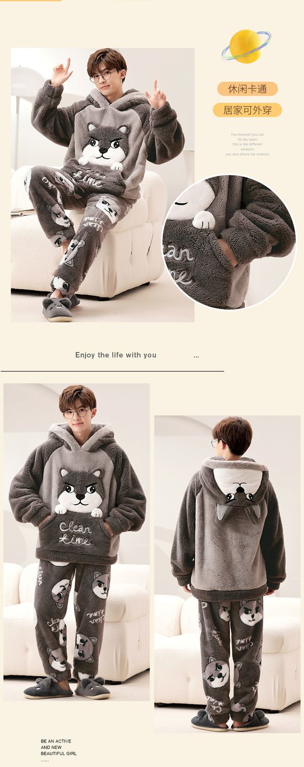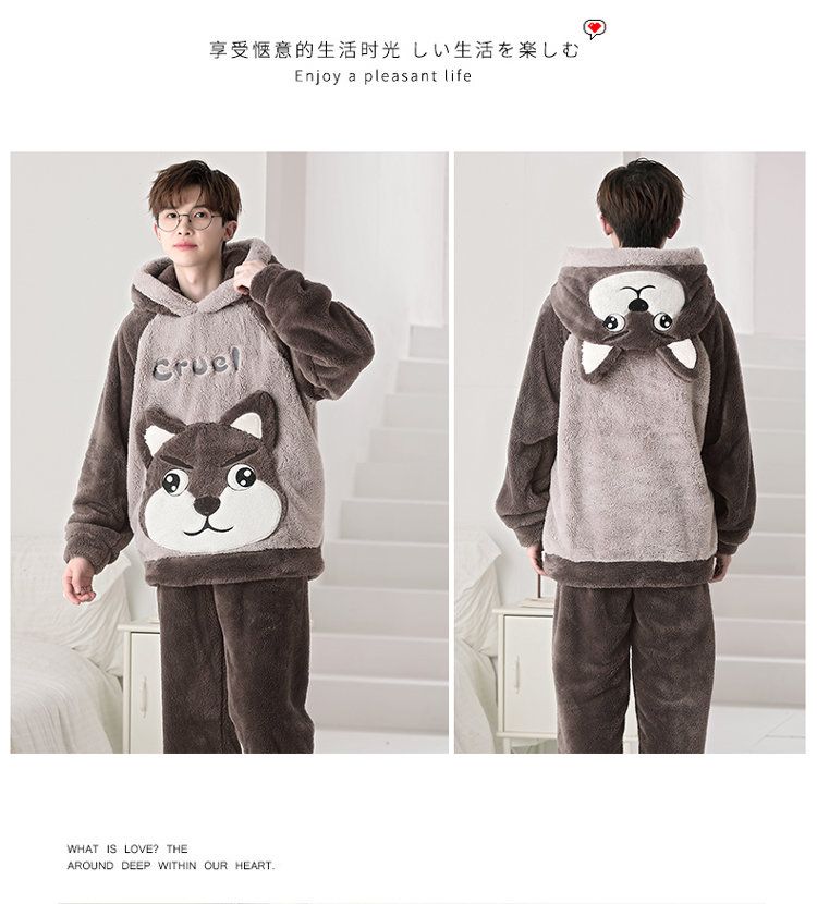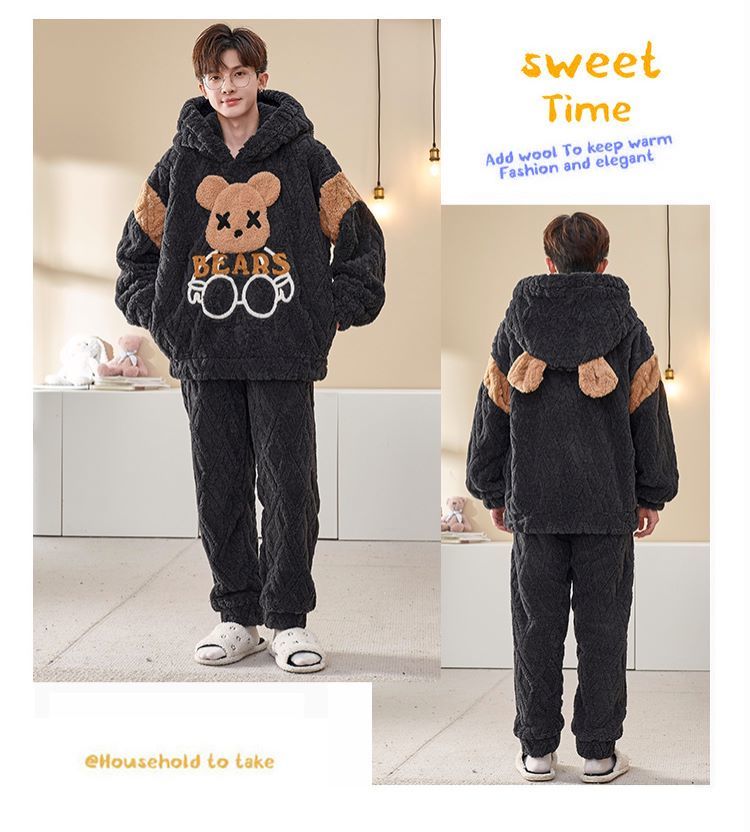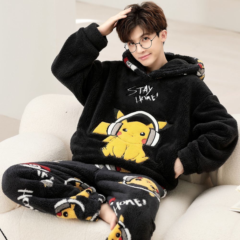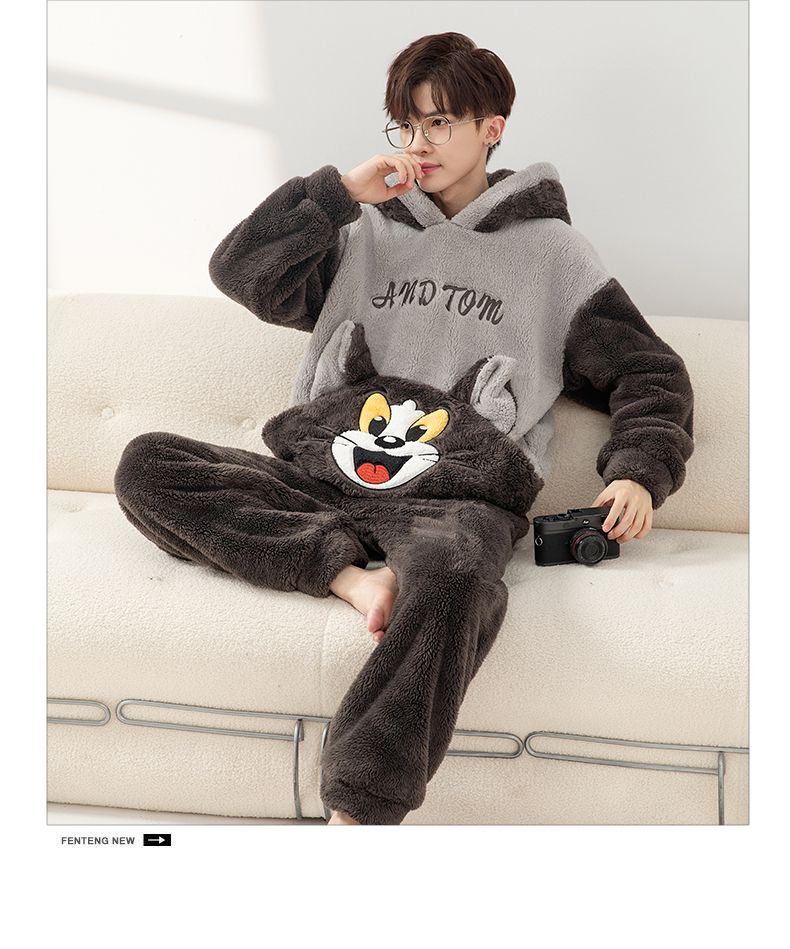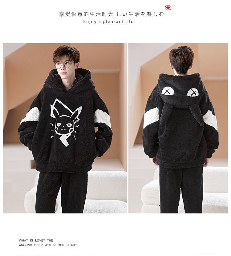 NASA男士睡衣秋冬款加厚加绒珊瑚绒学生卡通大码法兰绒家居服套装