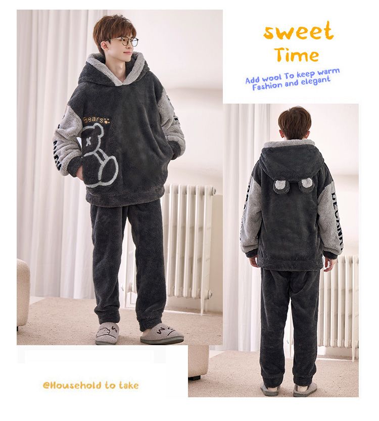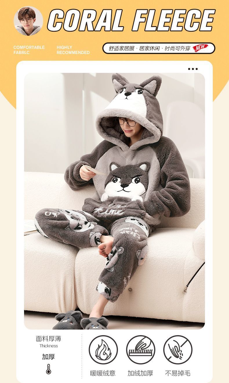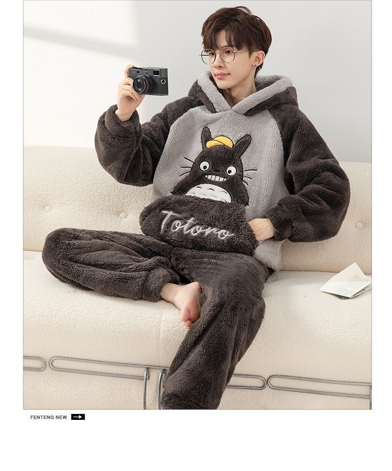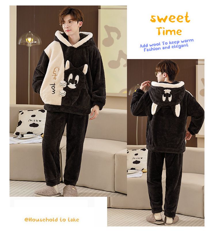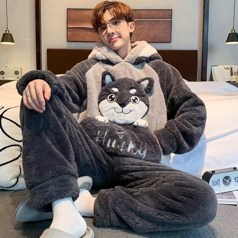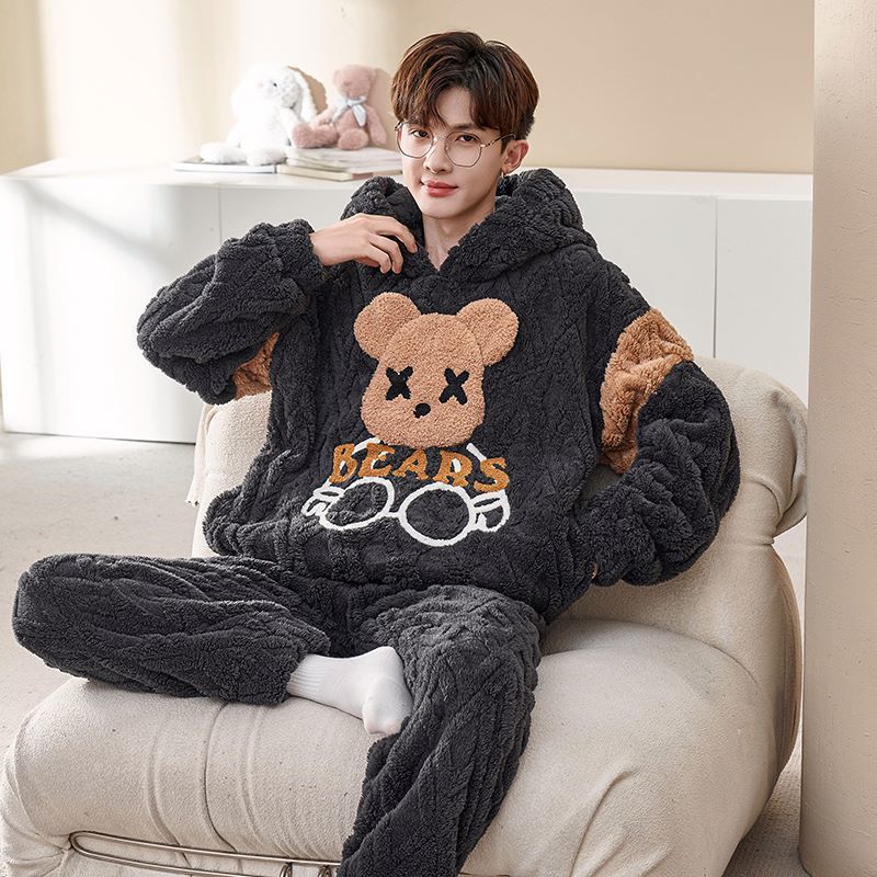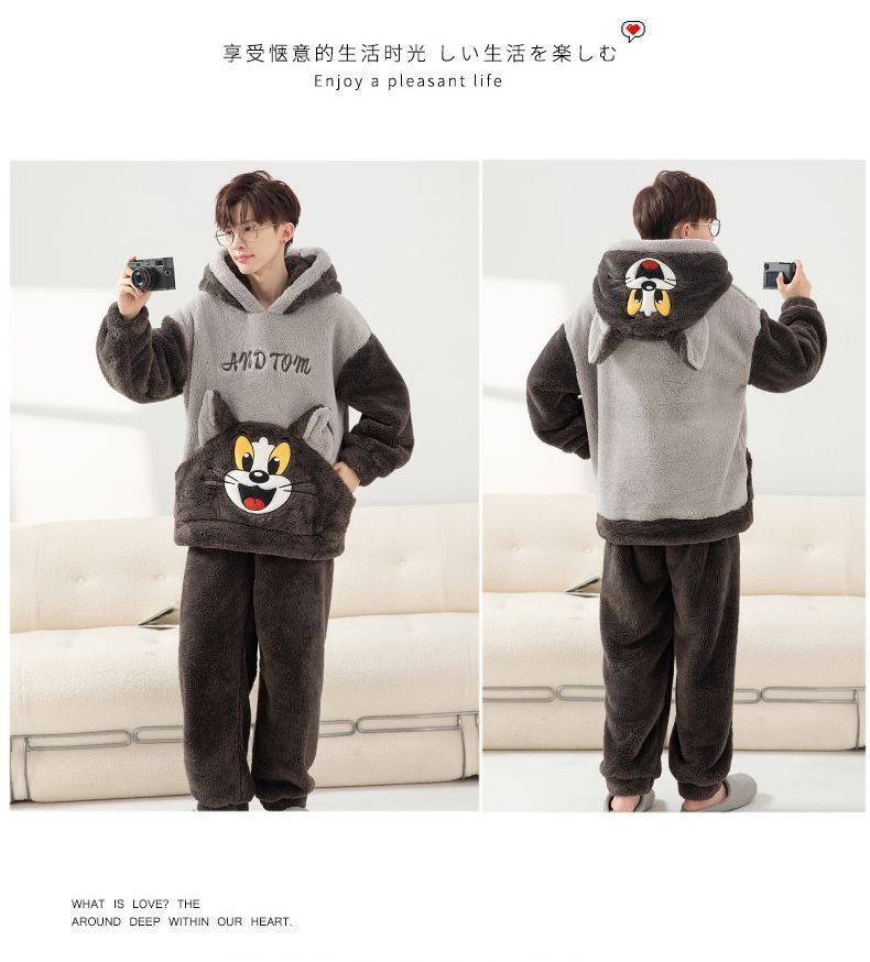 NASA男士睡衣秋冬款加厚加绒珊瑚绒学生卡通大码法兰绒家居服套装