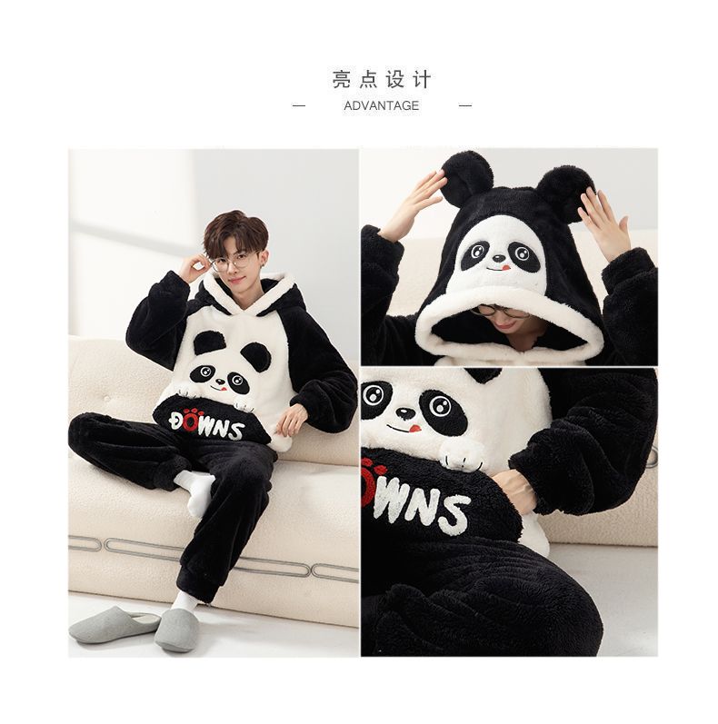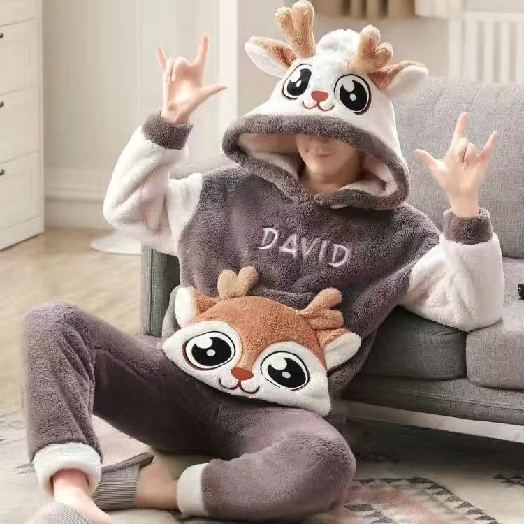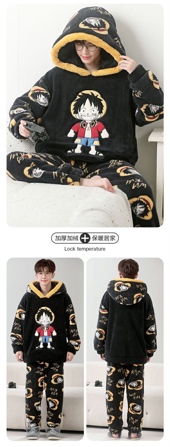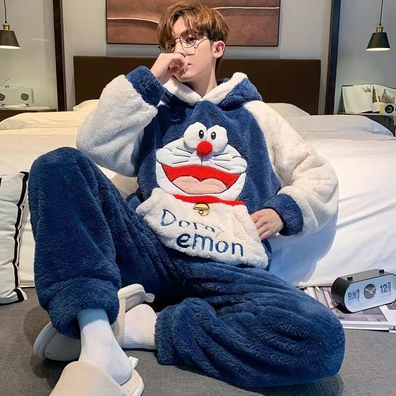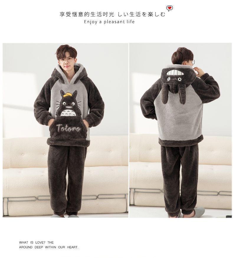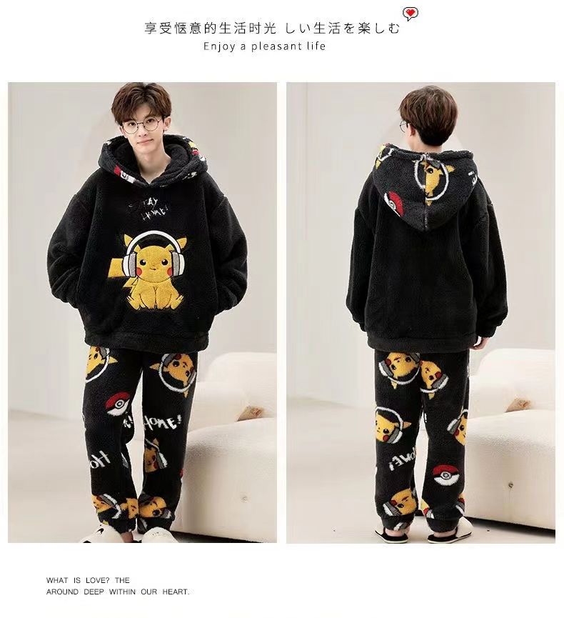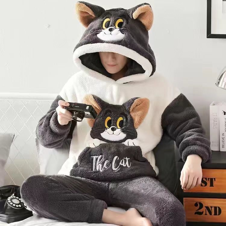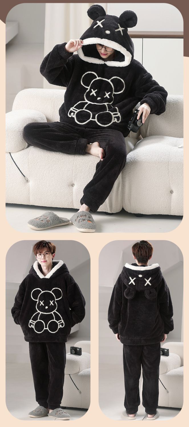 NASA男士睡衣秋冬款加厚加绒珊瑚绒学生卡通大码法兰绒家居服套装