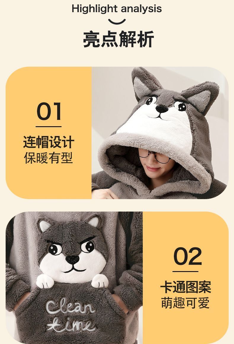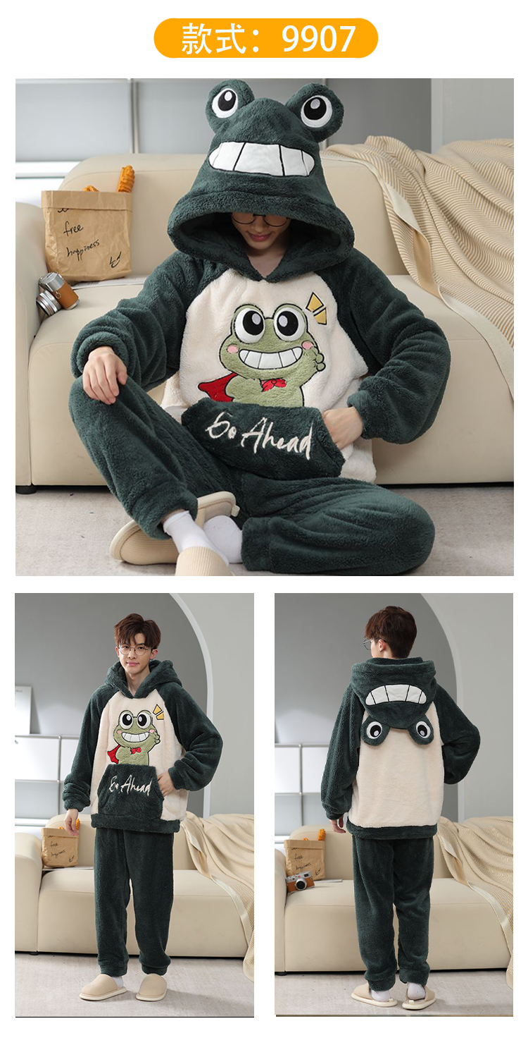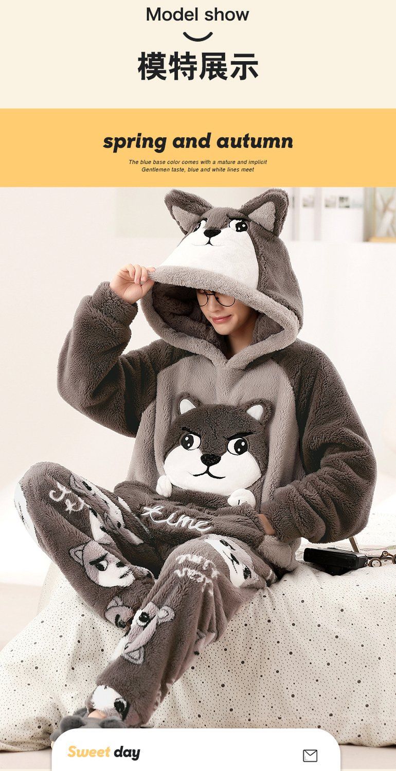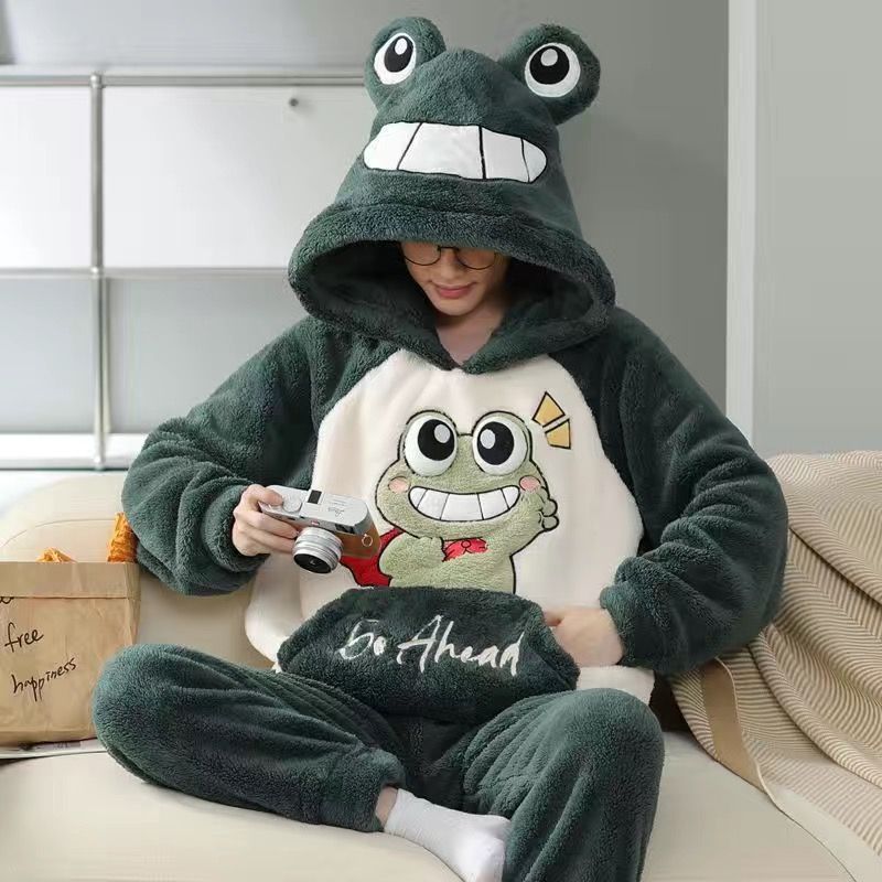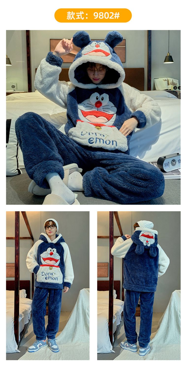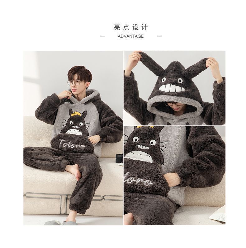 NASA男士睡衣秋冬款加厚加绒珊瑚绒学生卡通大码法兰绒家居服套装
