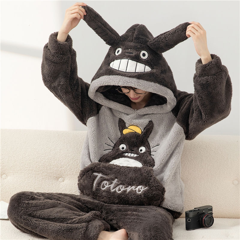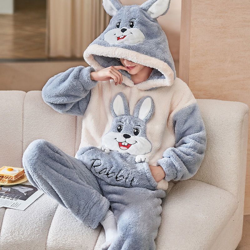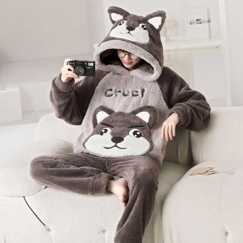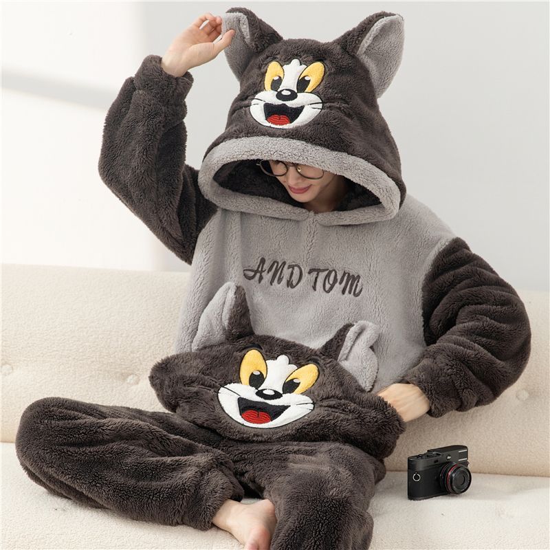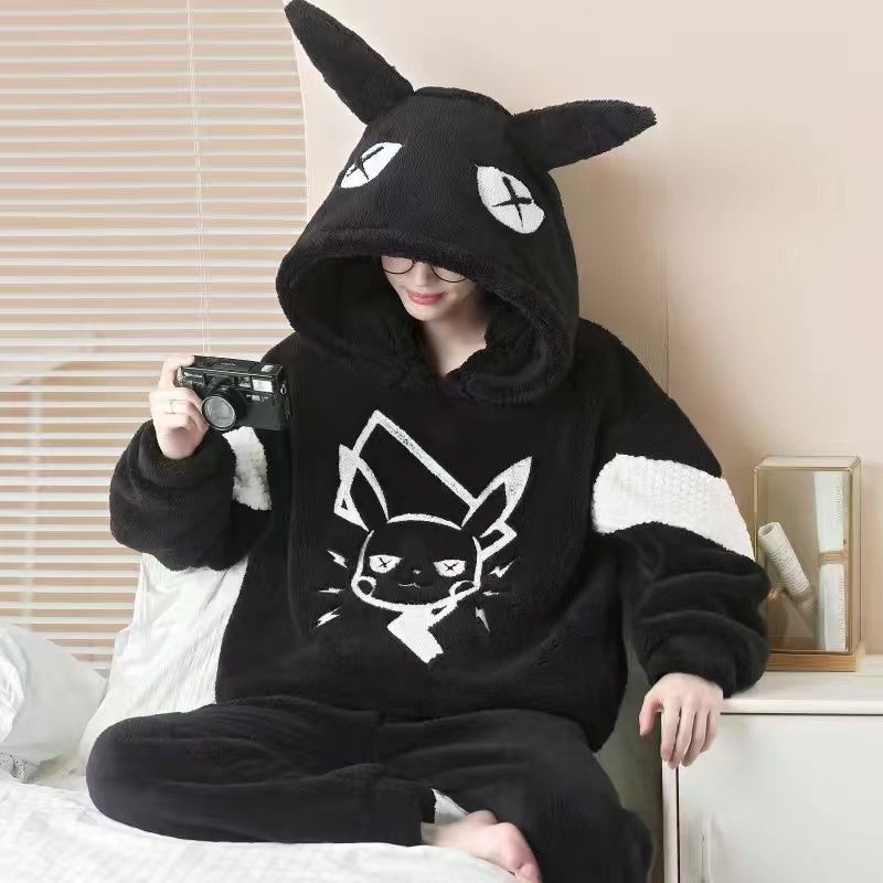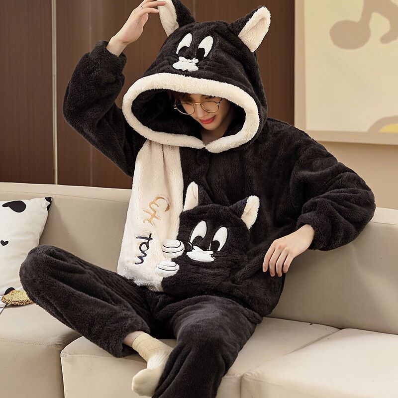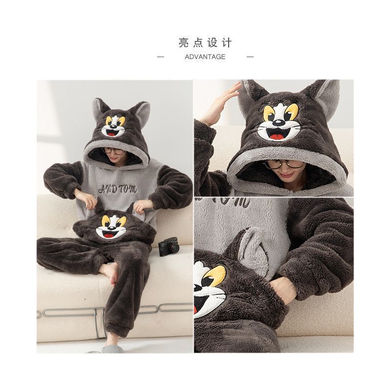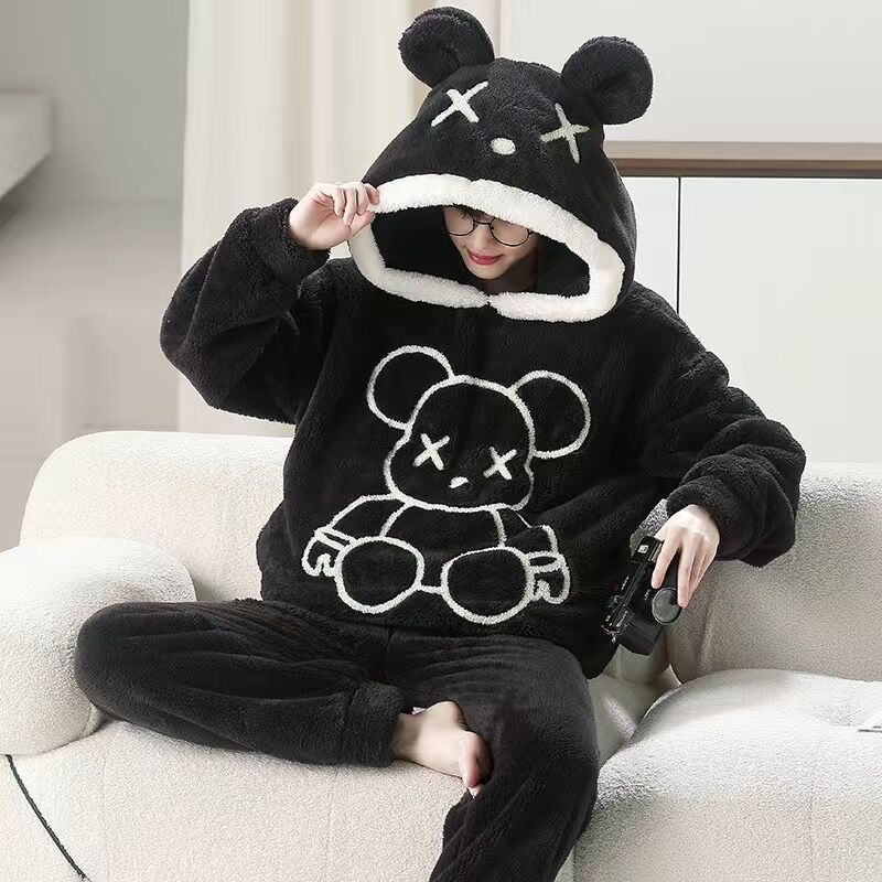NASA男士睡衣秋冬款加厚加绒珊瑚绒学生卡通大码法兰绒家居服套装