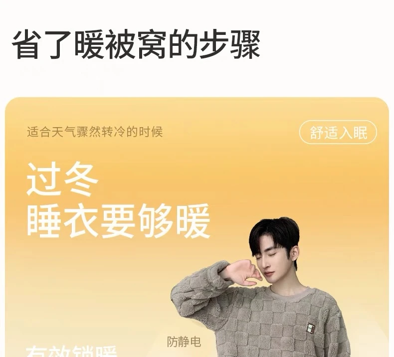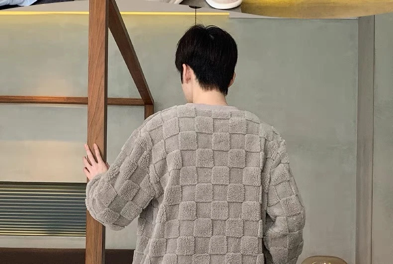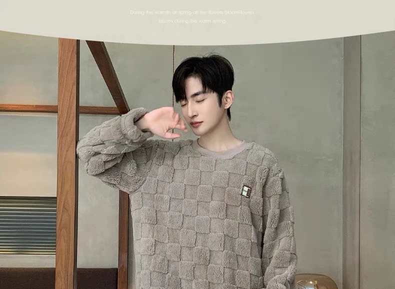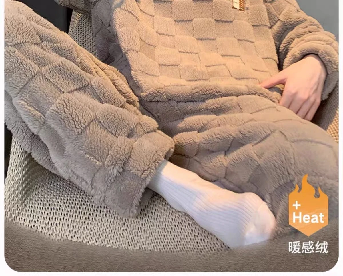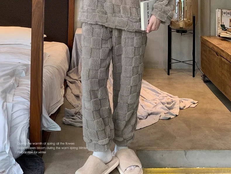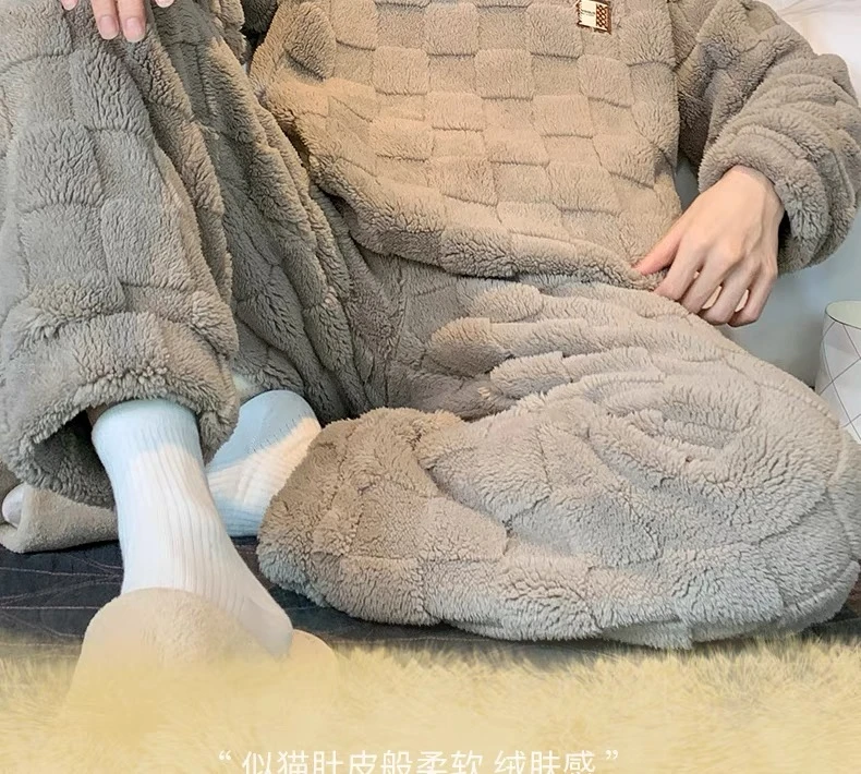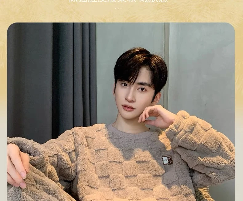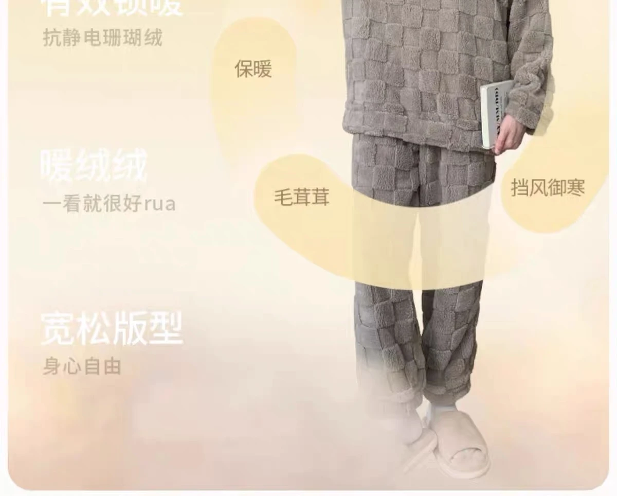新款男士睡衣秋冬季珊瑚绒加厚加绒保暖家居服青少年睡衣外穿套装