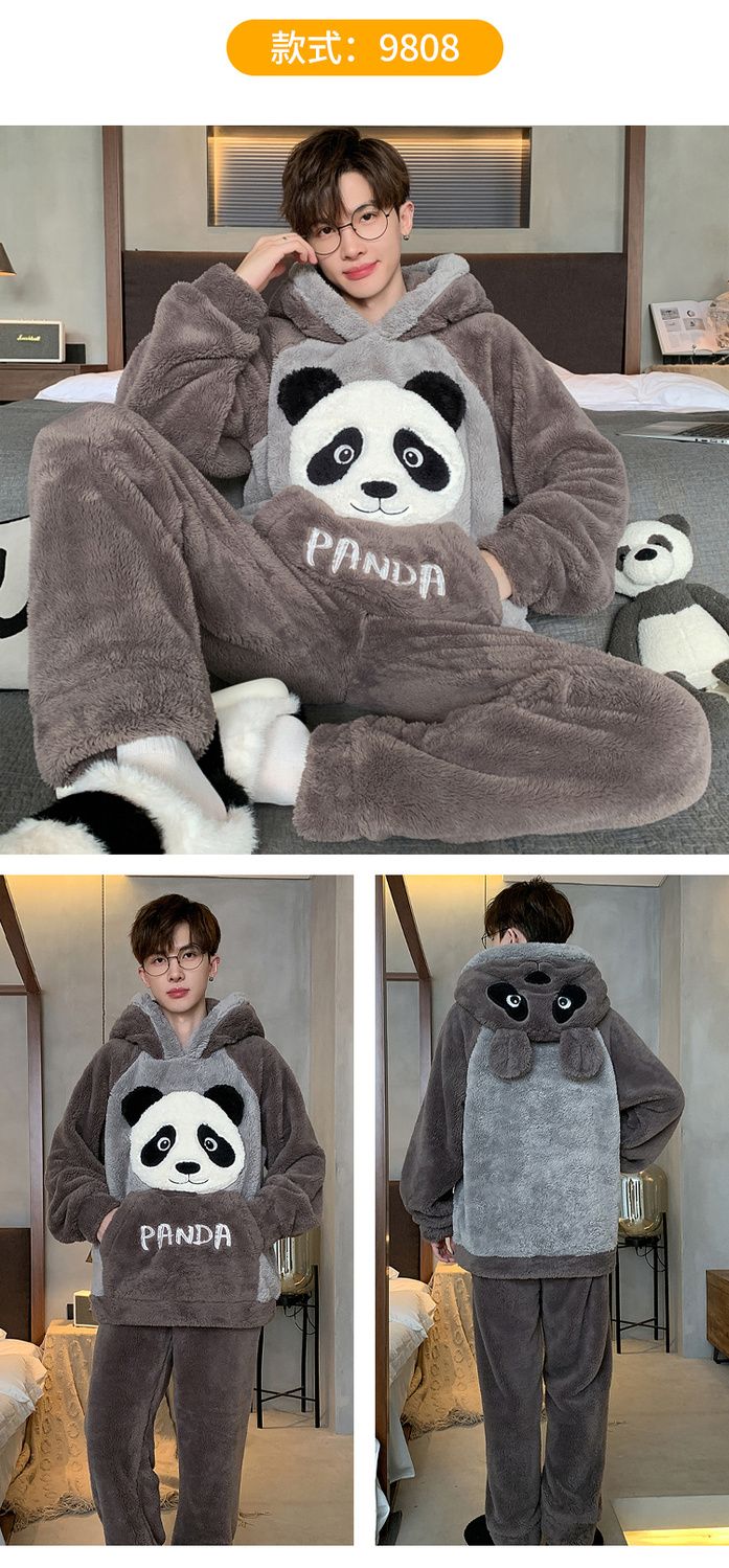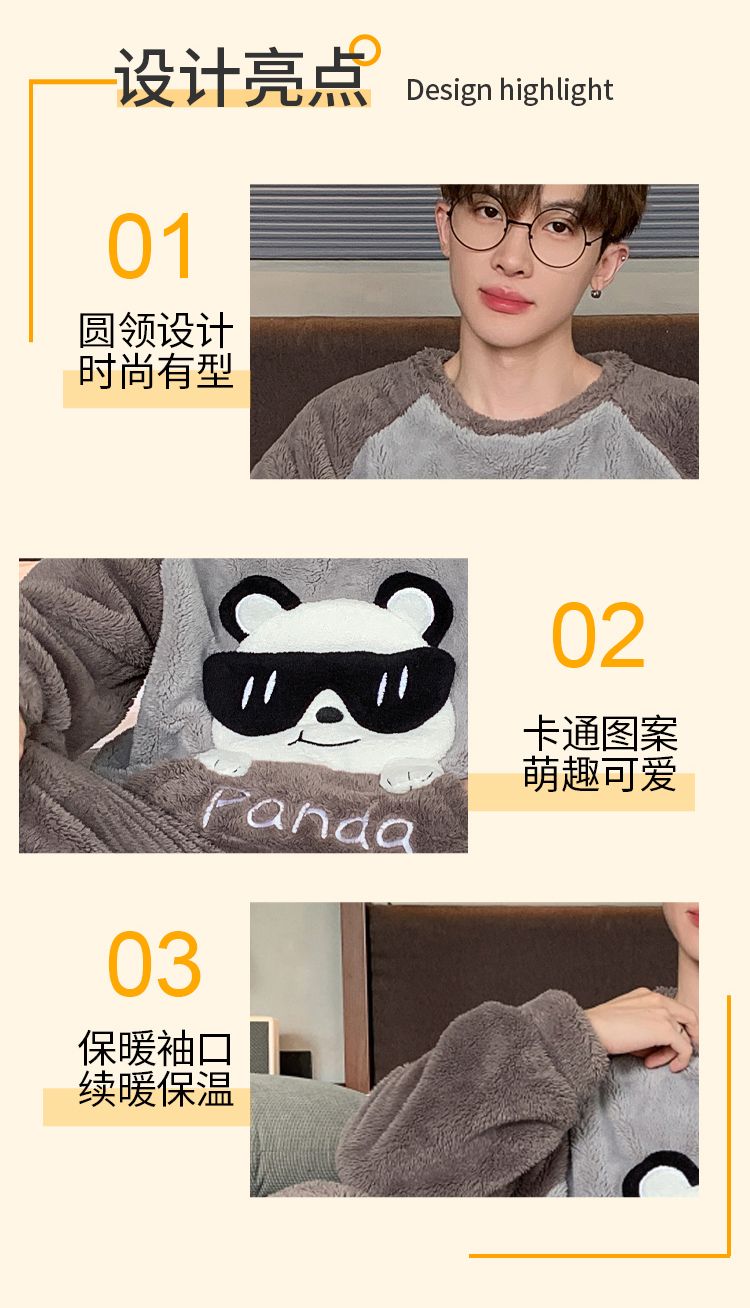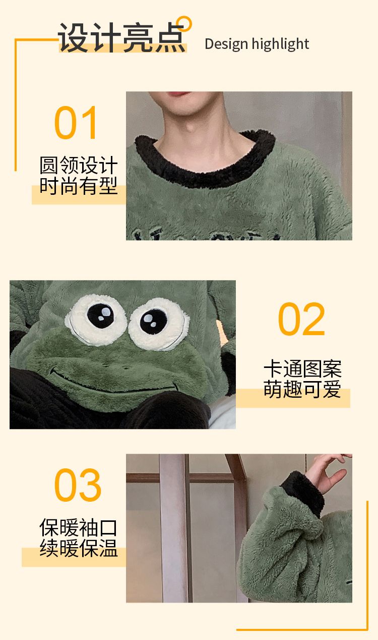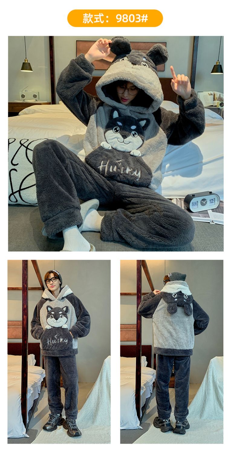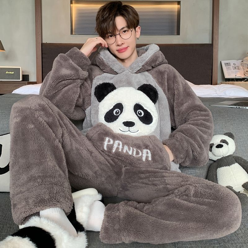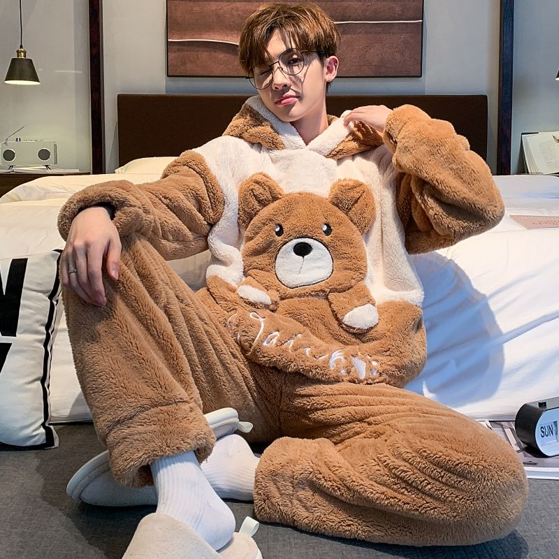 男士睡衣秋冬季珊瑚绒加绒加厚法兰绒卡通长毛绒加大码家居服套装