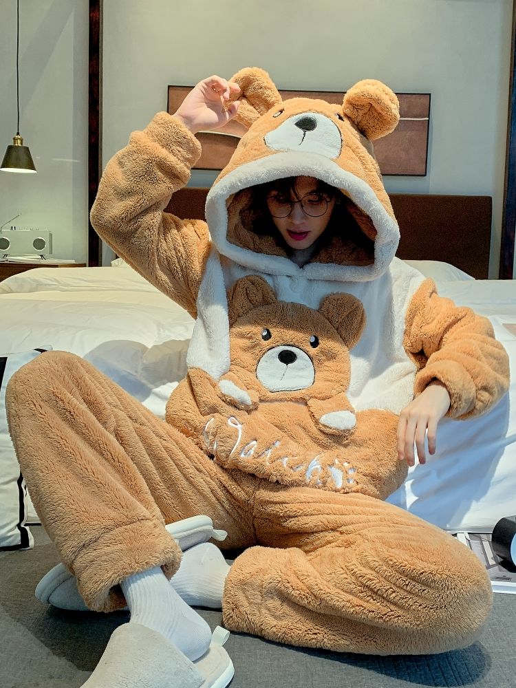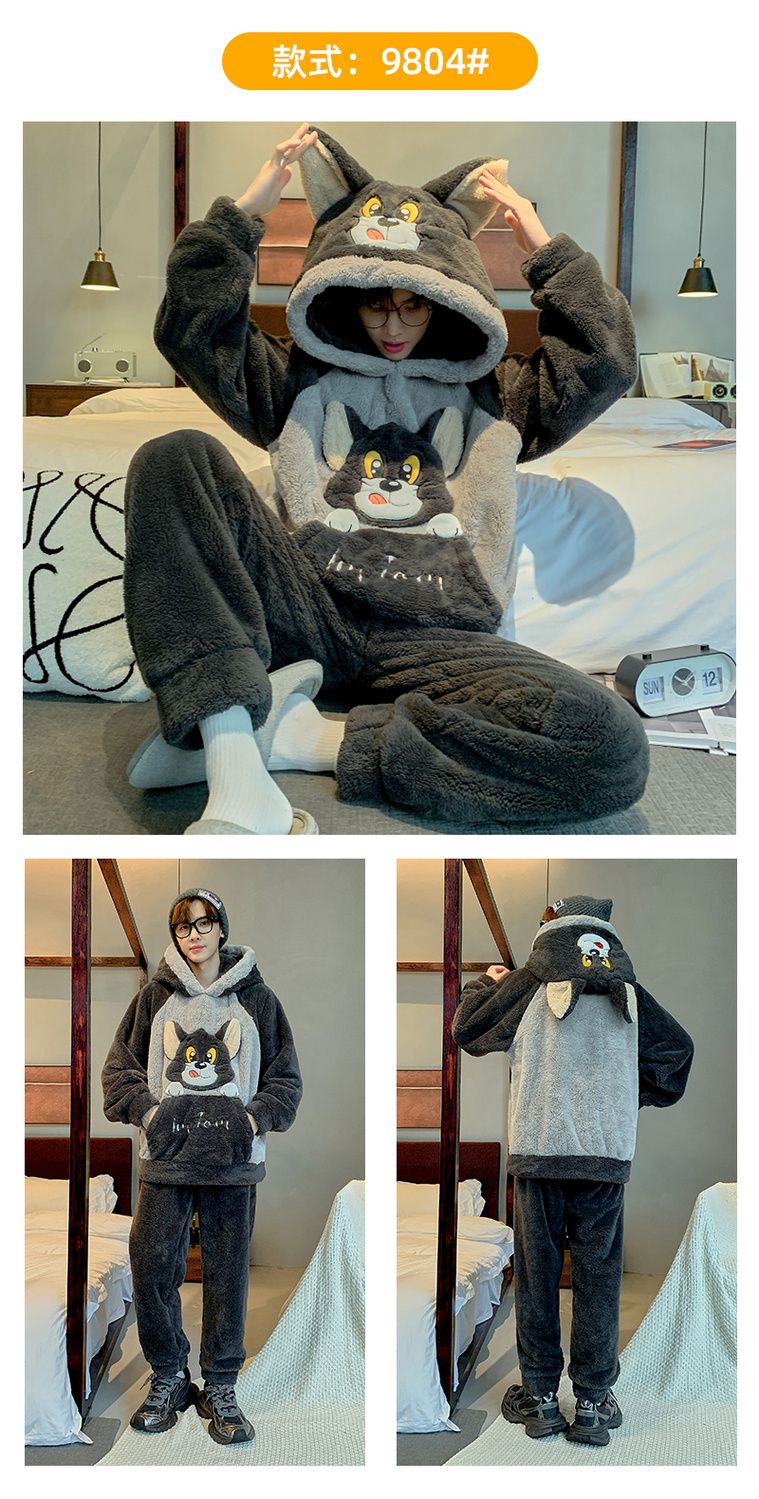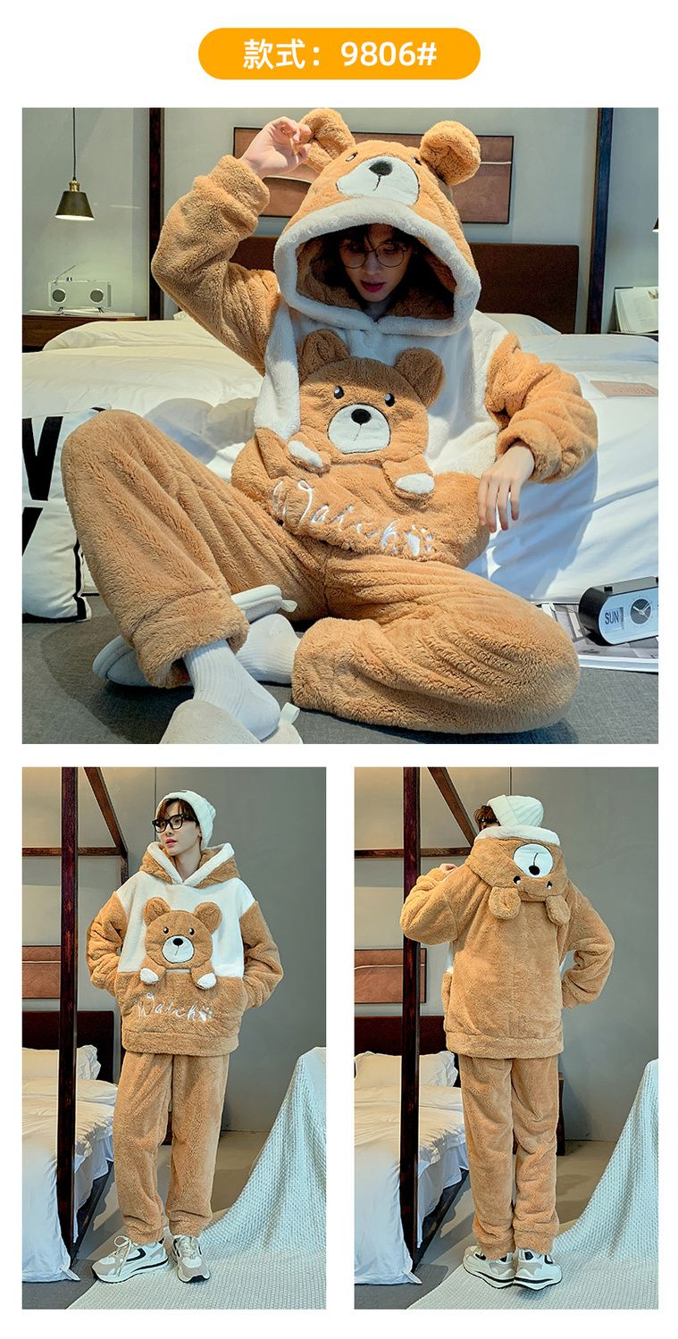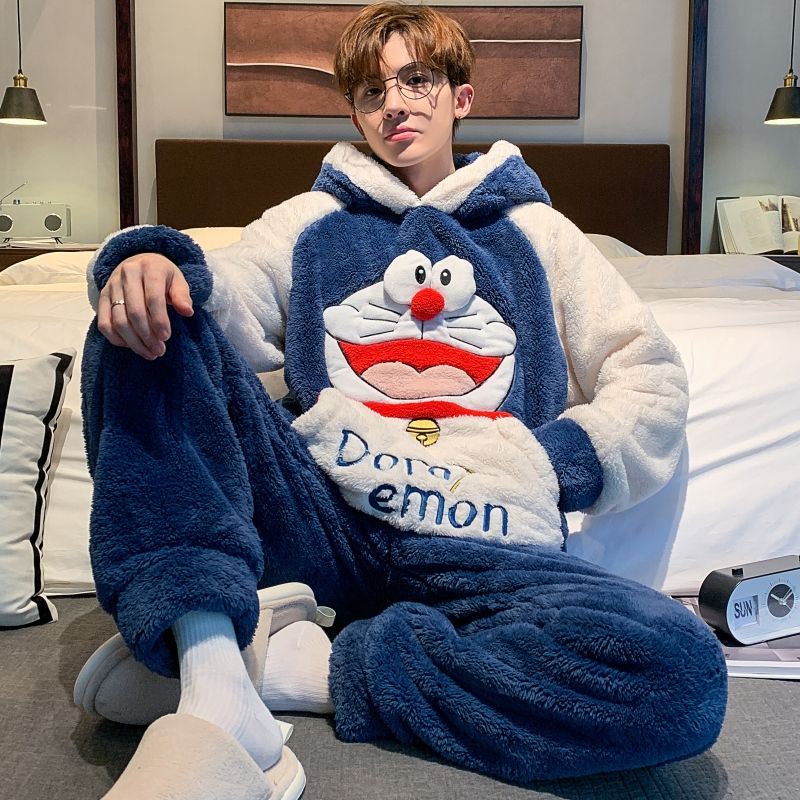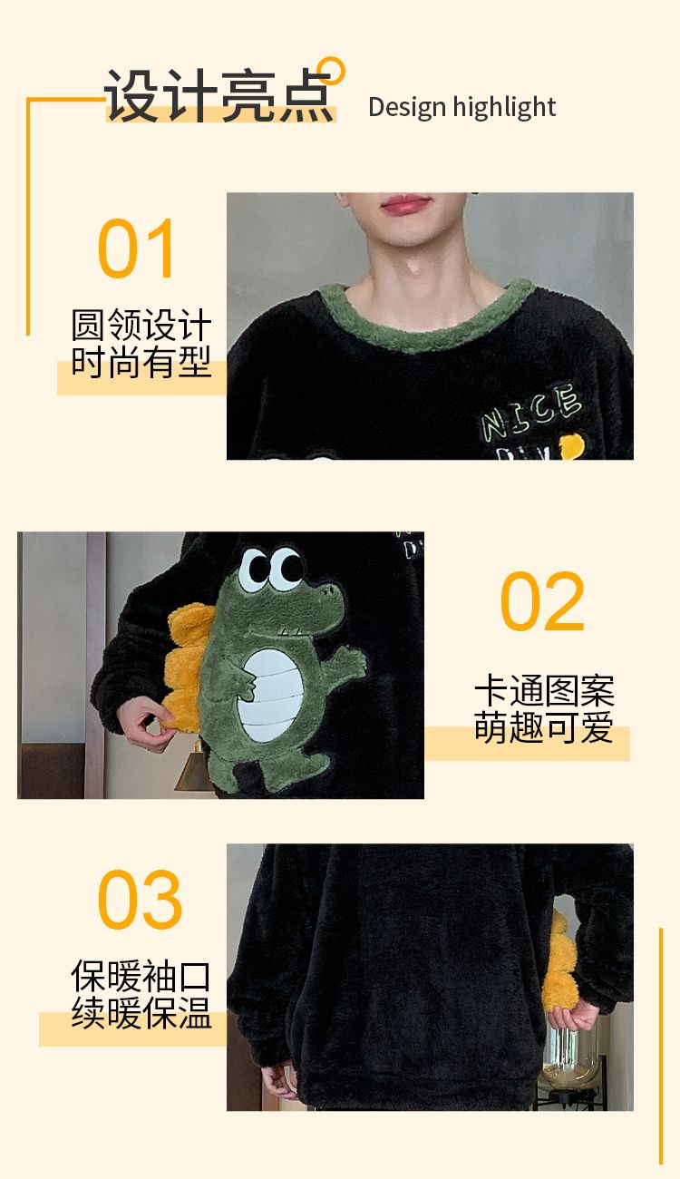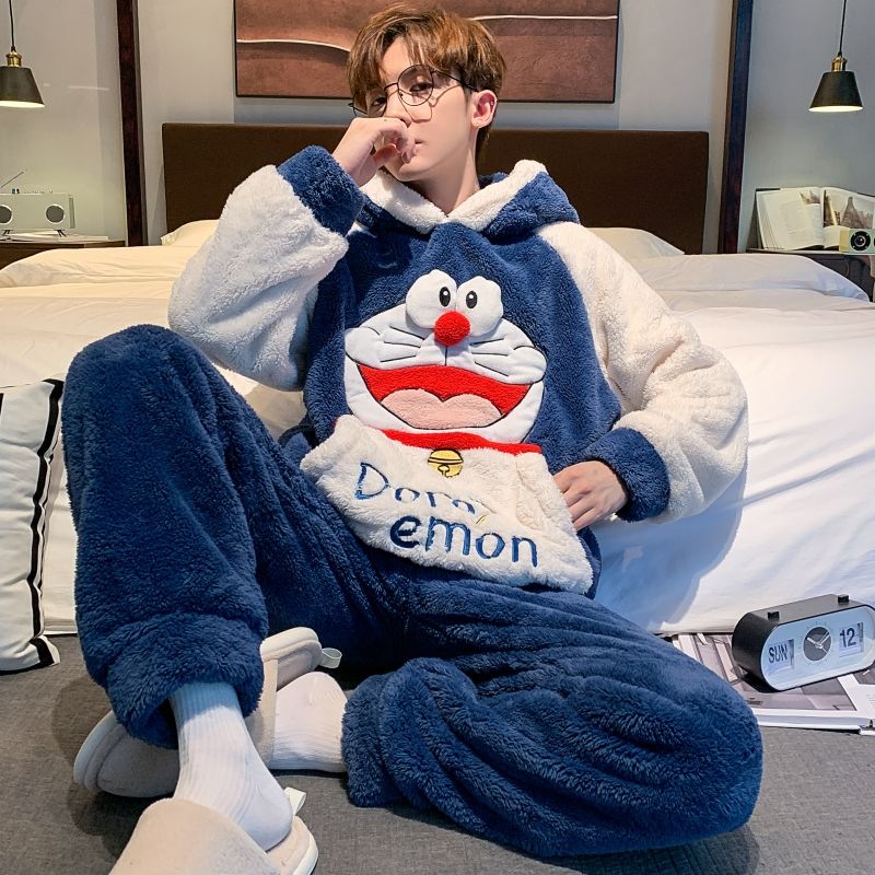 男士睡衣秋冬季珊瑚绒加绒加厚法兰绒卡通长毛绒加大码家居服套装