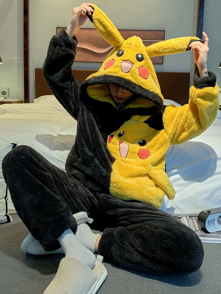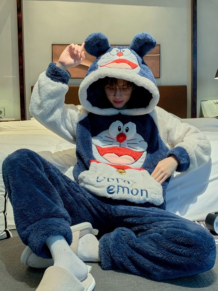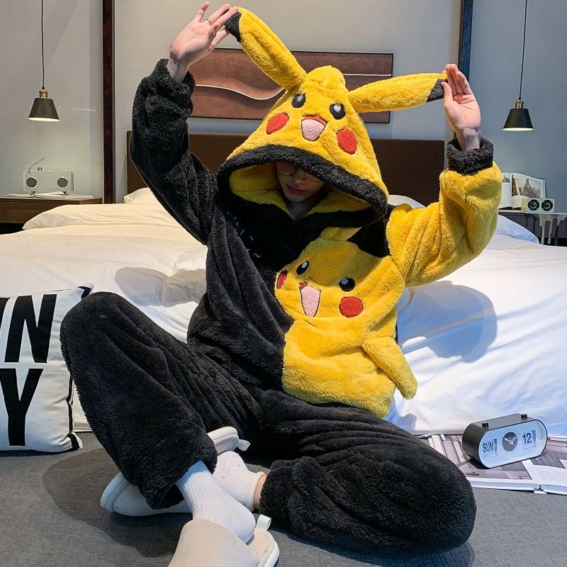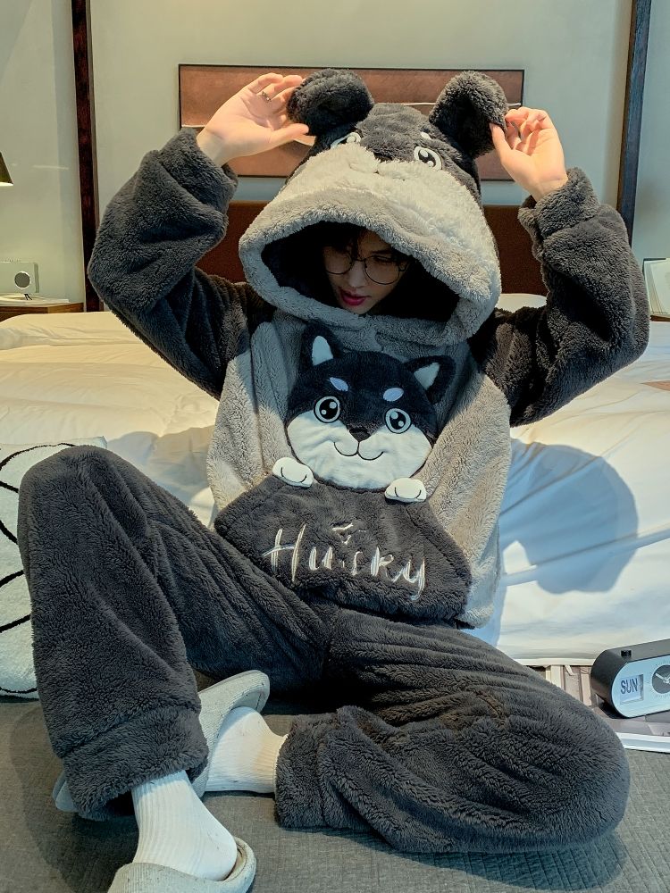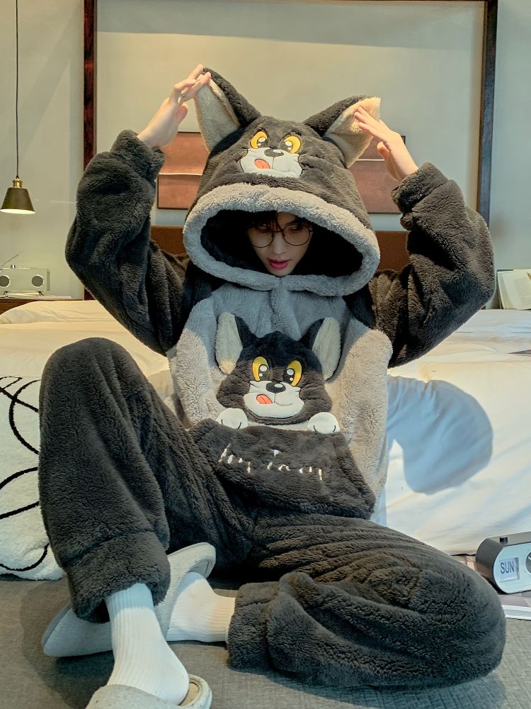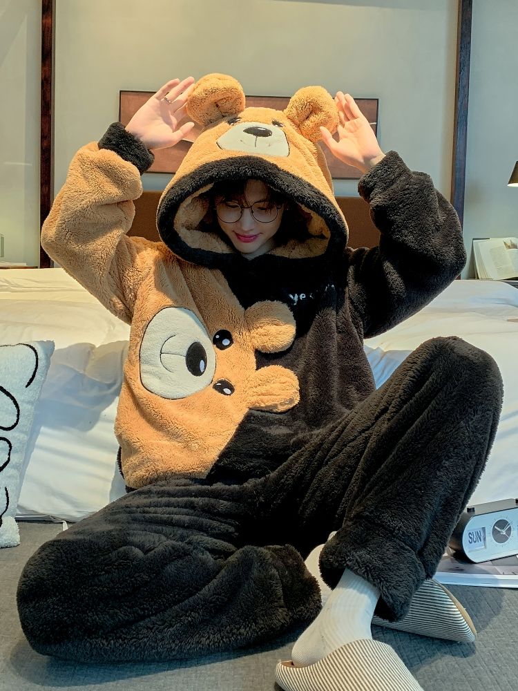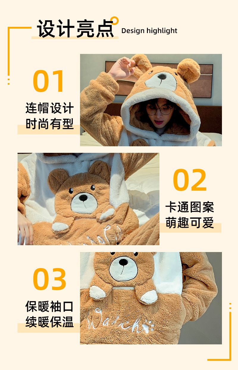 男士睡衣秋冬季珊瑚绒加绒加厚法兰绒卡通长毛绒加大码家居服套装