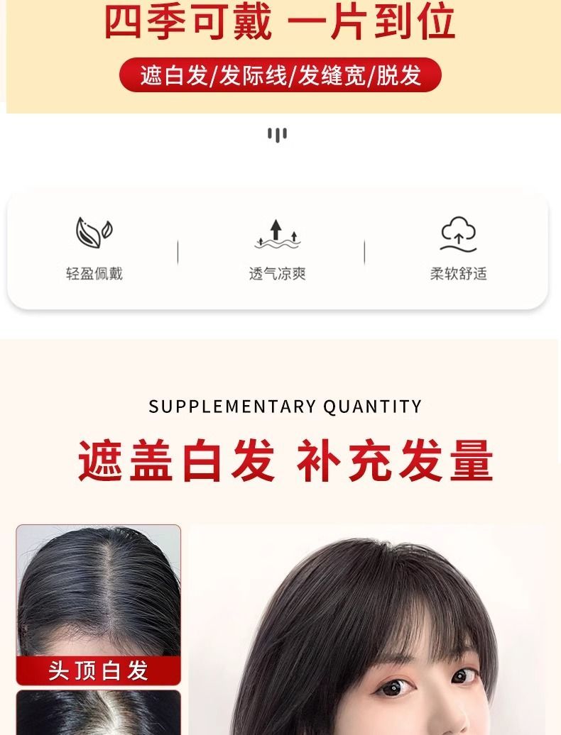 假刘海发片头顶补发蓬松增发量隐形无痕补发仿真发自然前额遮白发